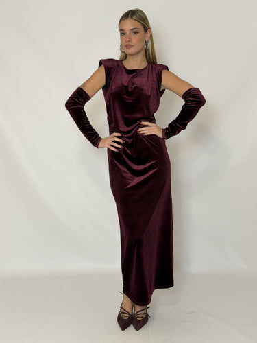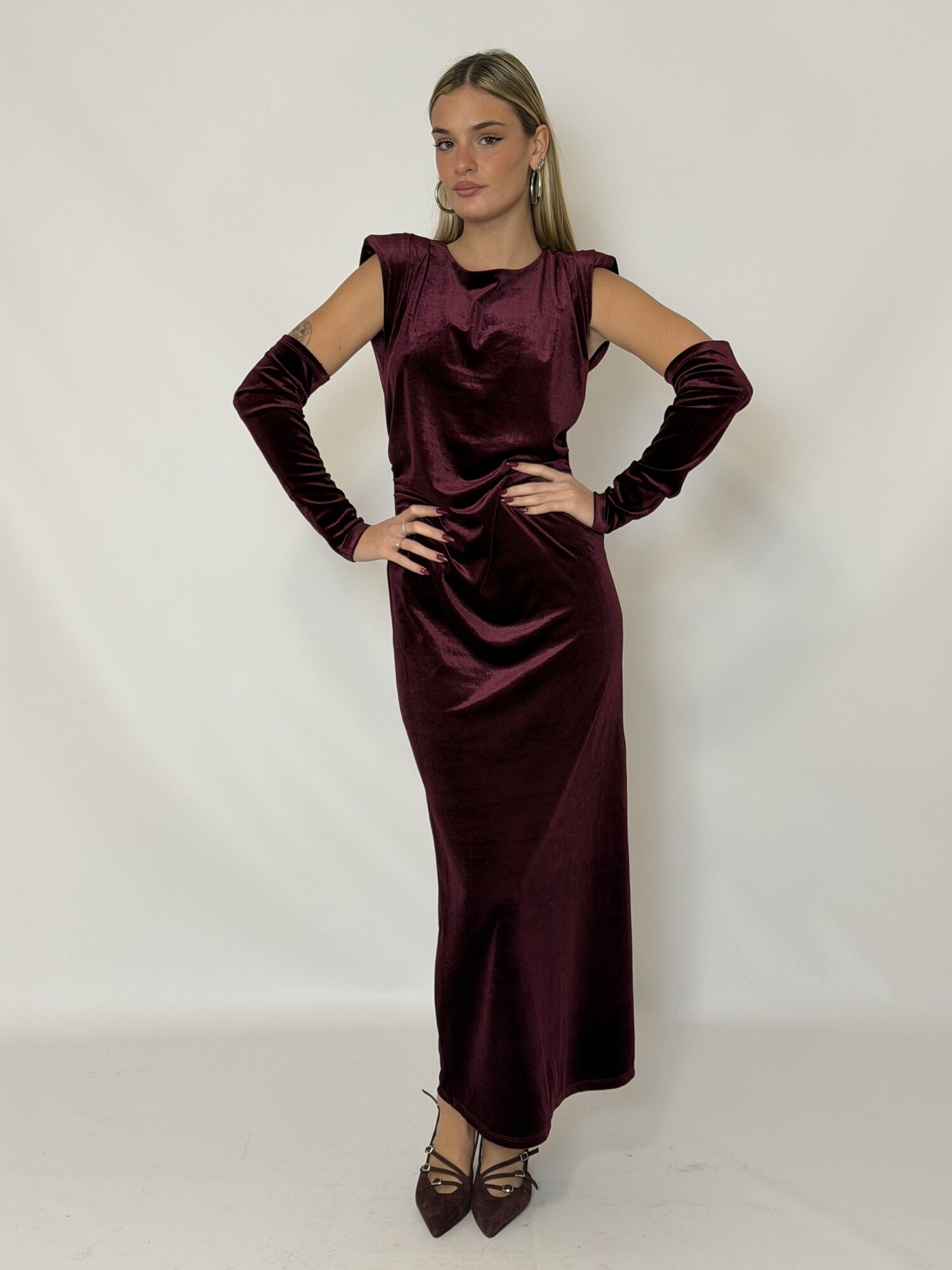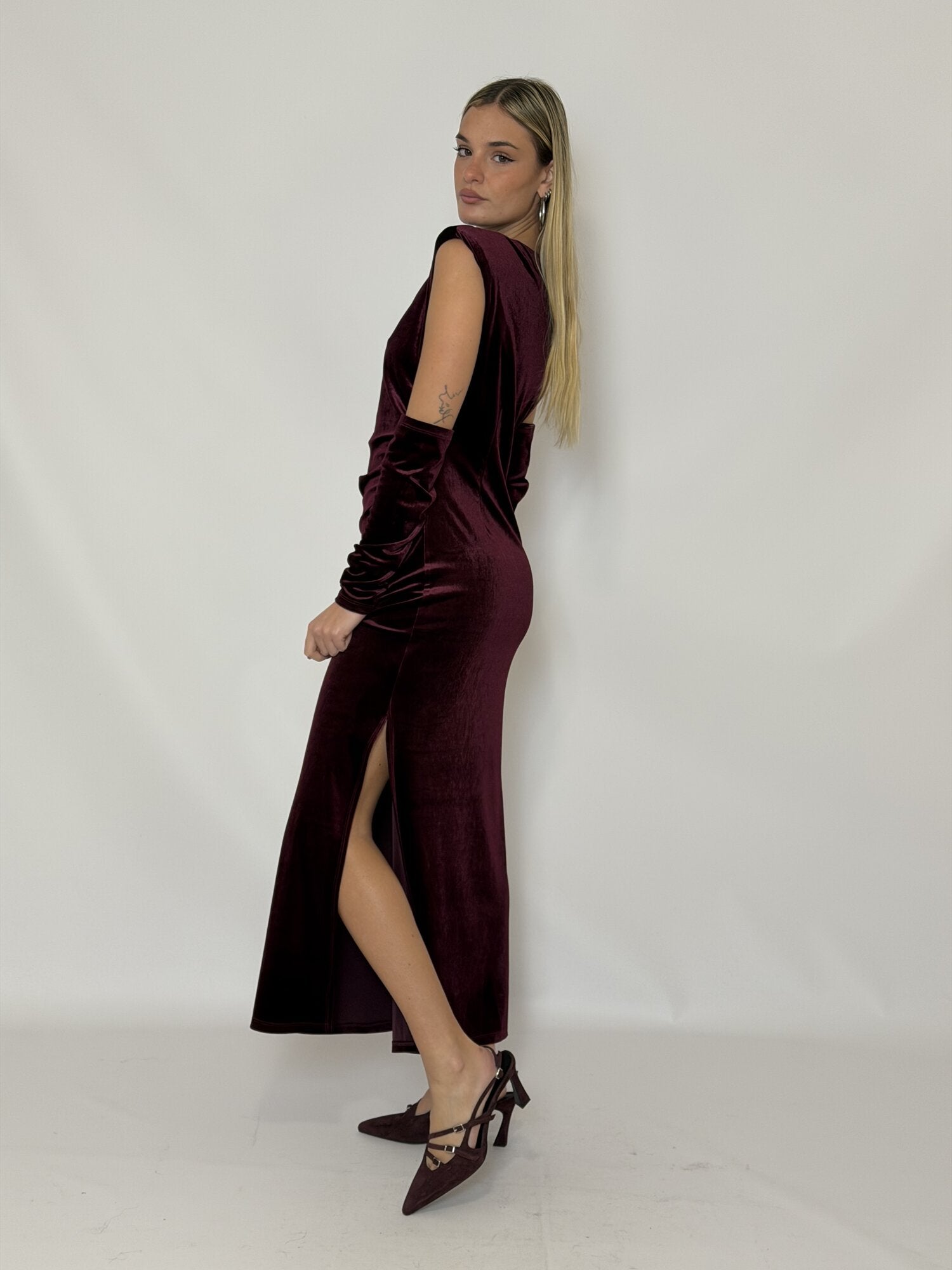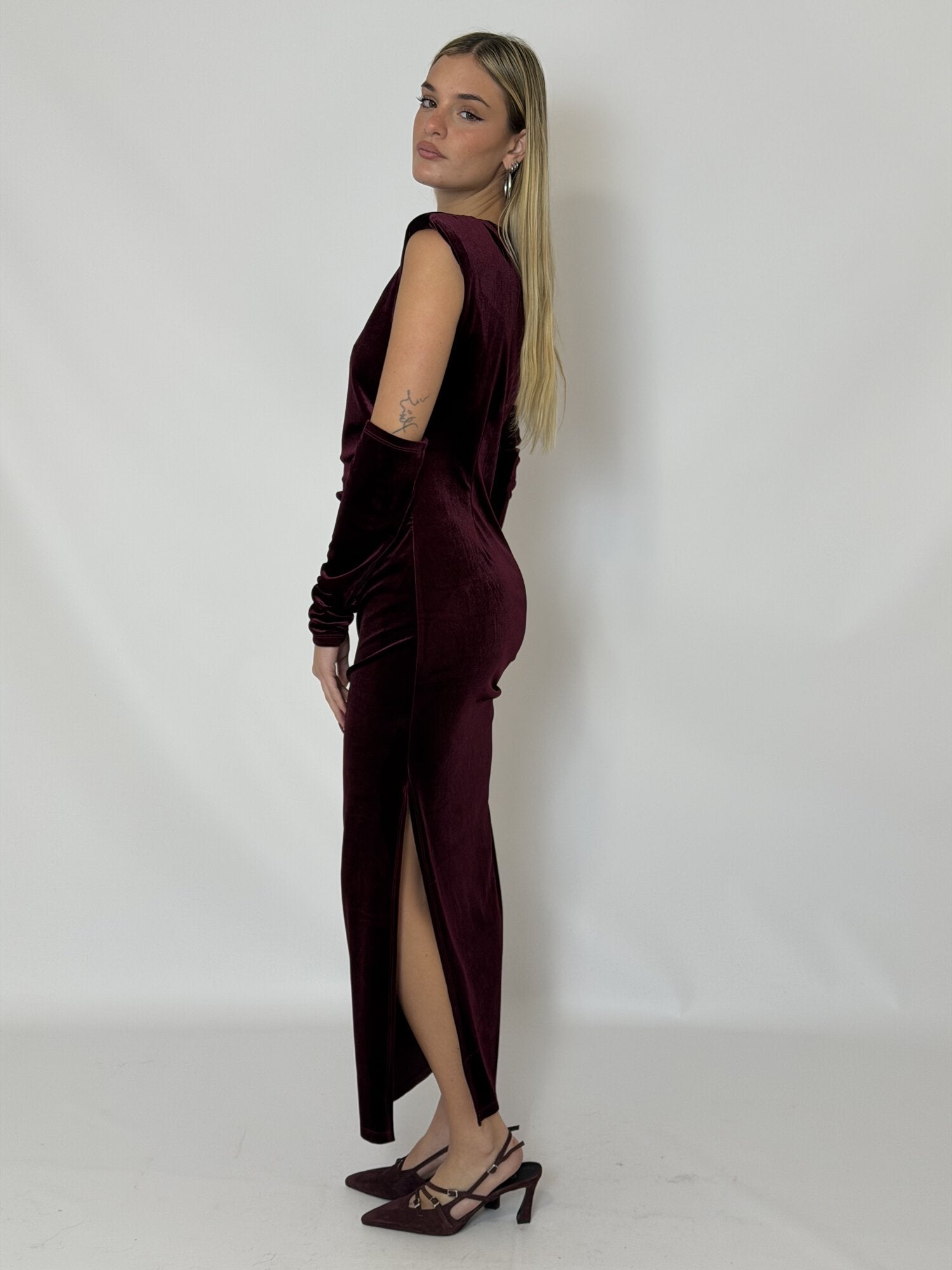 Abito Velluto Manicotti Bordeaux - Souvenir