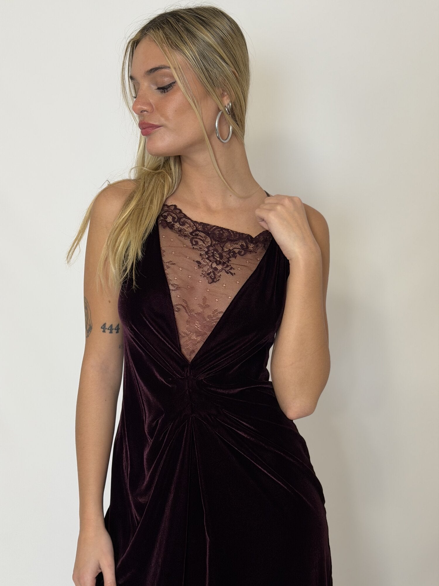 Abito Velluto Pizzo Bordeaux - Vicolo
