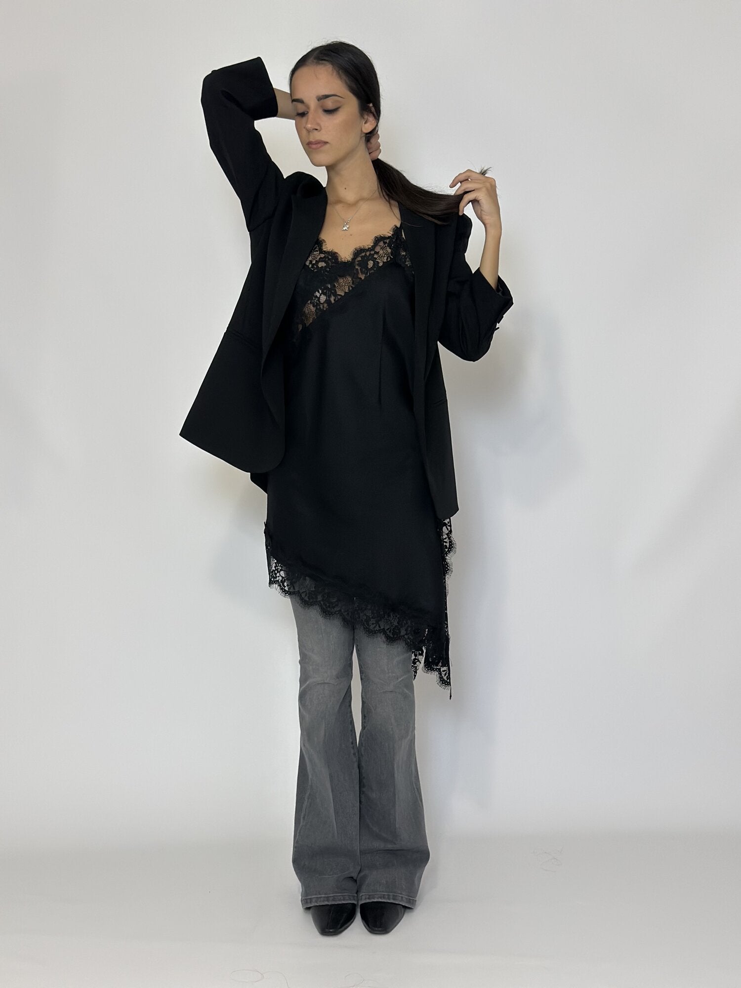 Abito Top Asimmetrico Nero Pizzo - Vicolo