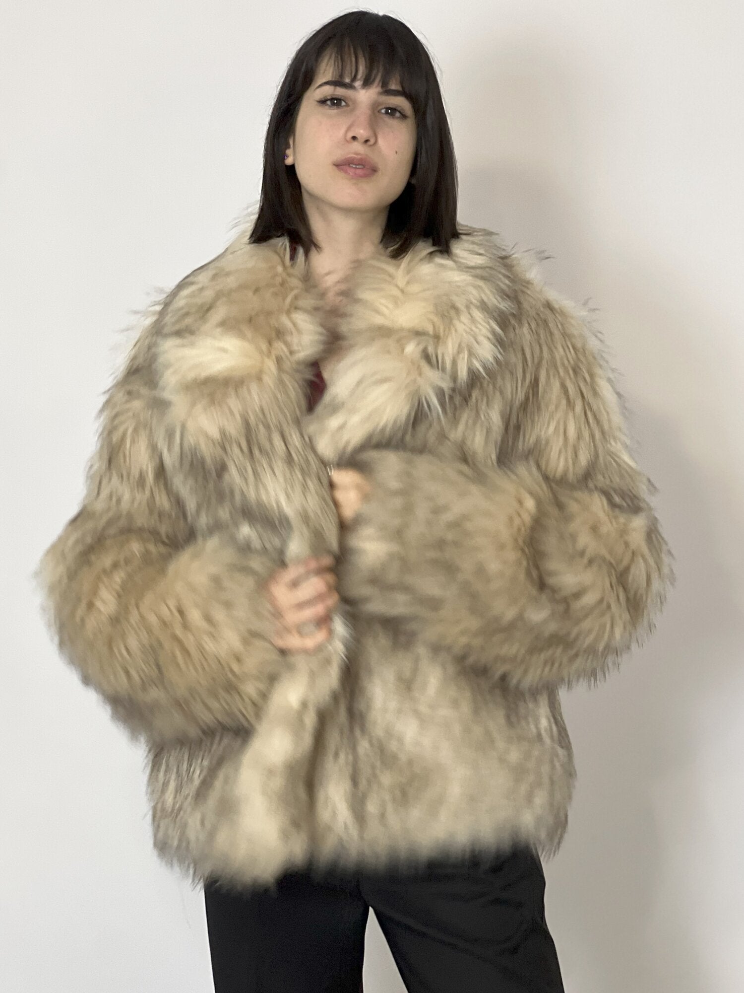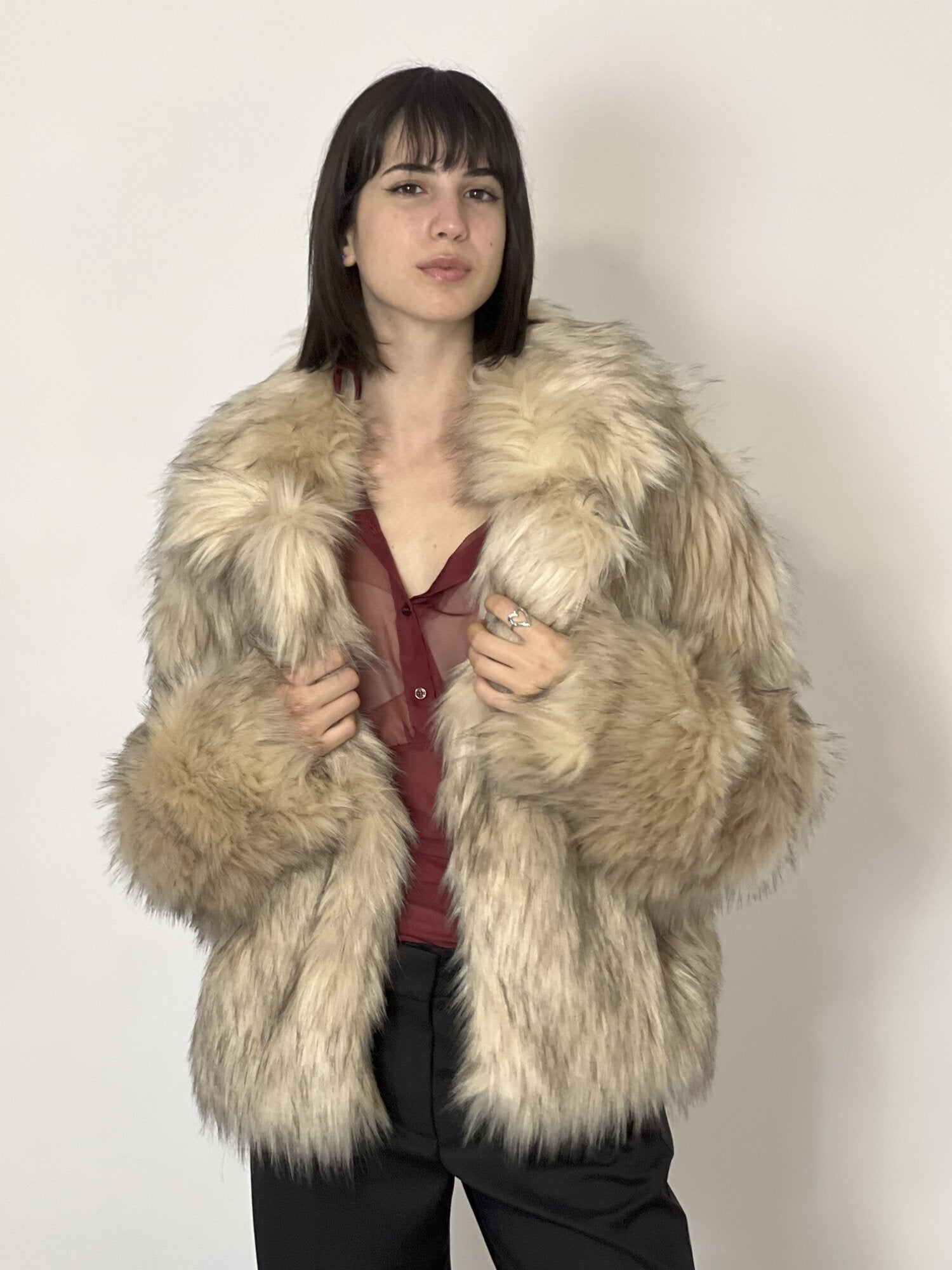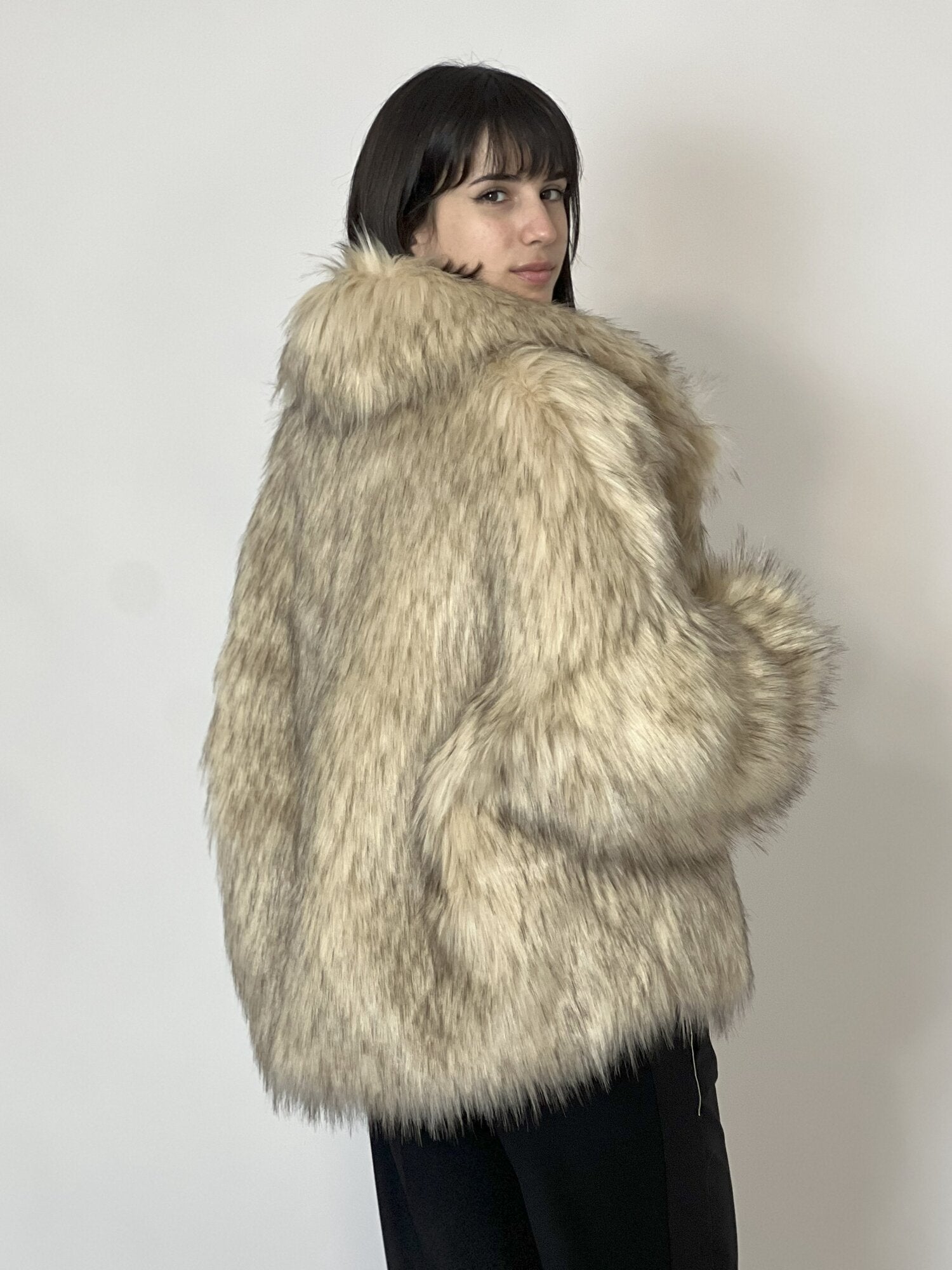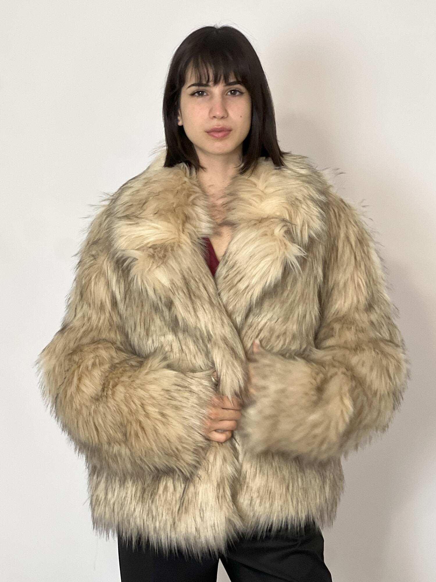 Ecopelliccia Seraphine beige di Aniye By. Giacca Seraphine in pelliccia sintetica in ecofur effetto pelo lungo. Fit cropped con collo reverse e chiusura nascosta monopetto. Disponibile in beige.