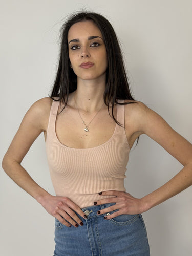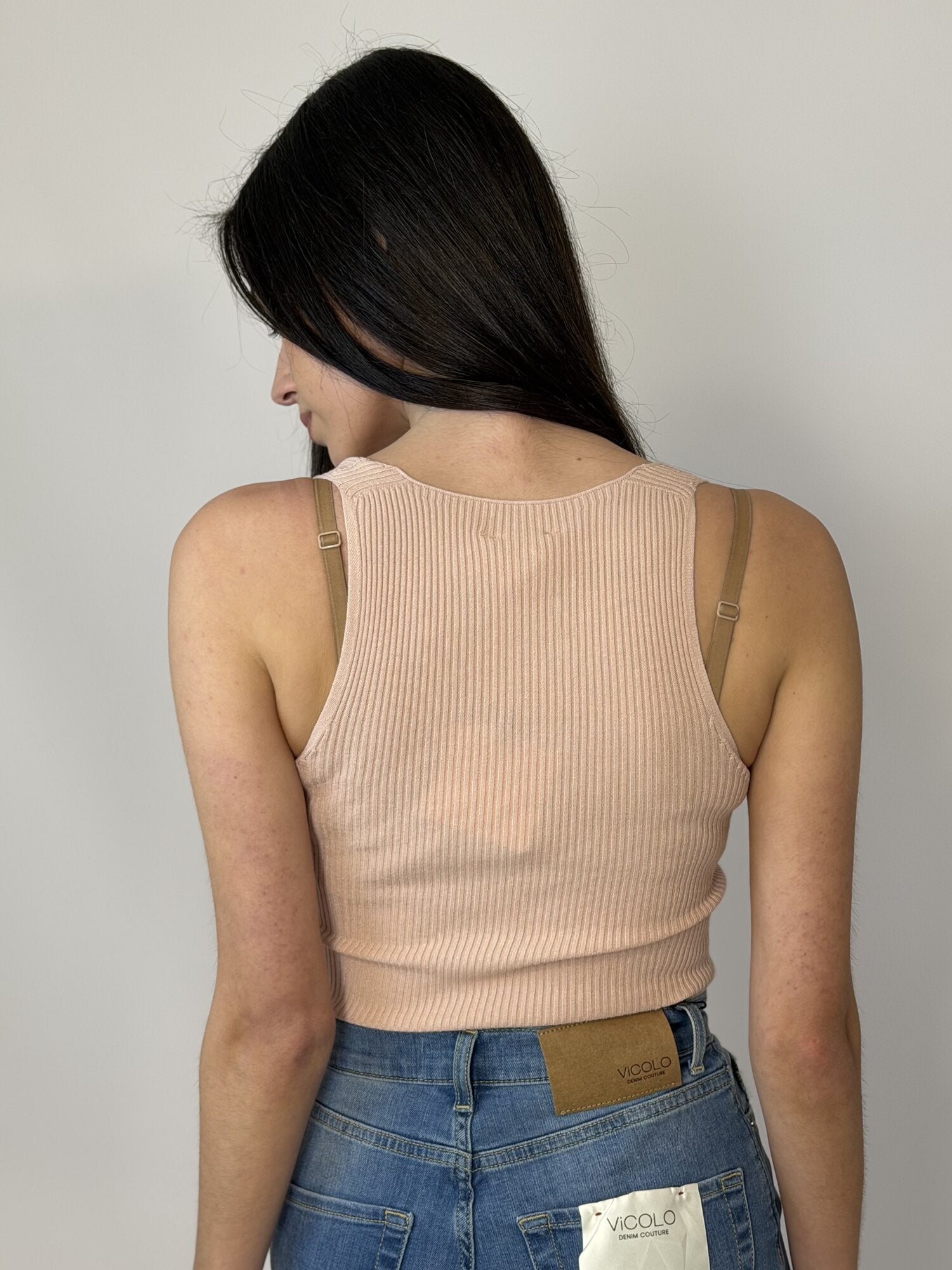 Canotta Body Costine Rosa di Vicolo. Canotta body dal design essenziale e femminile realizzata in tessuto a costine che valorizza la silhouette e garantisce una vestibilità aderente ma confortevole. Il modello presenta scollo arrotondato e spalline larghe che donano equilibrio e semplicità al capo, rendendolo perfetto per essere indossato sia da solo sia come base sotto giacche o cardigan.