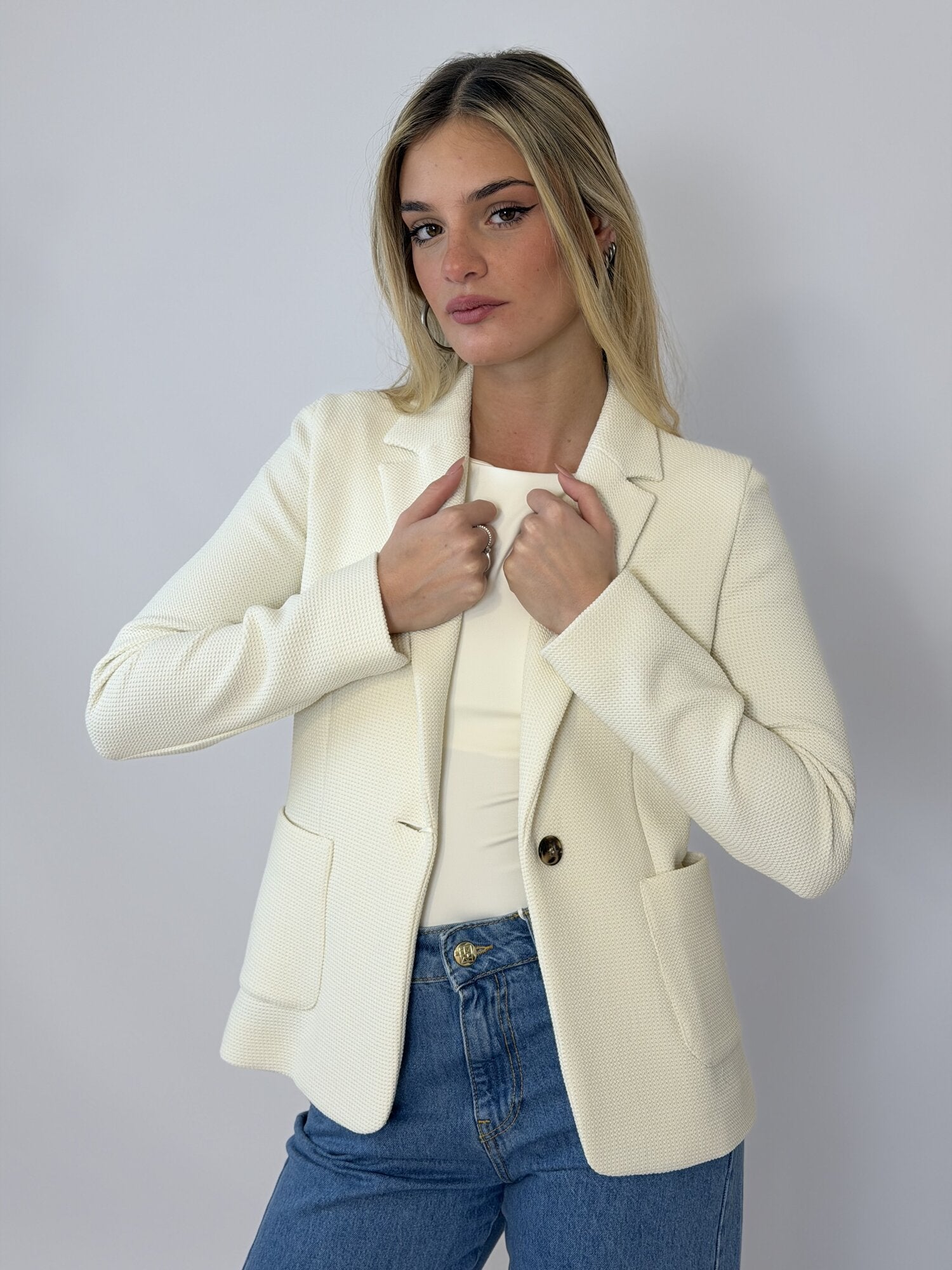 La modella è alta 1,70 e indossa la taglia S.