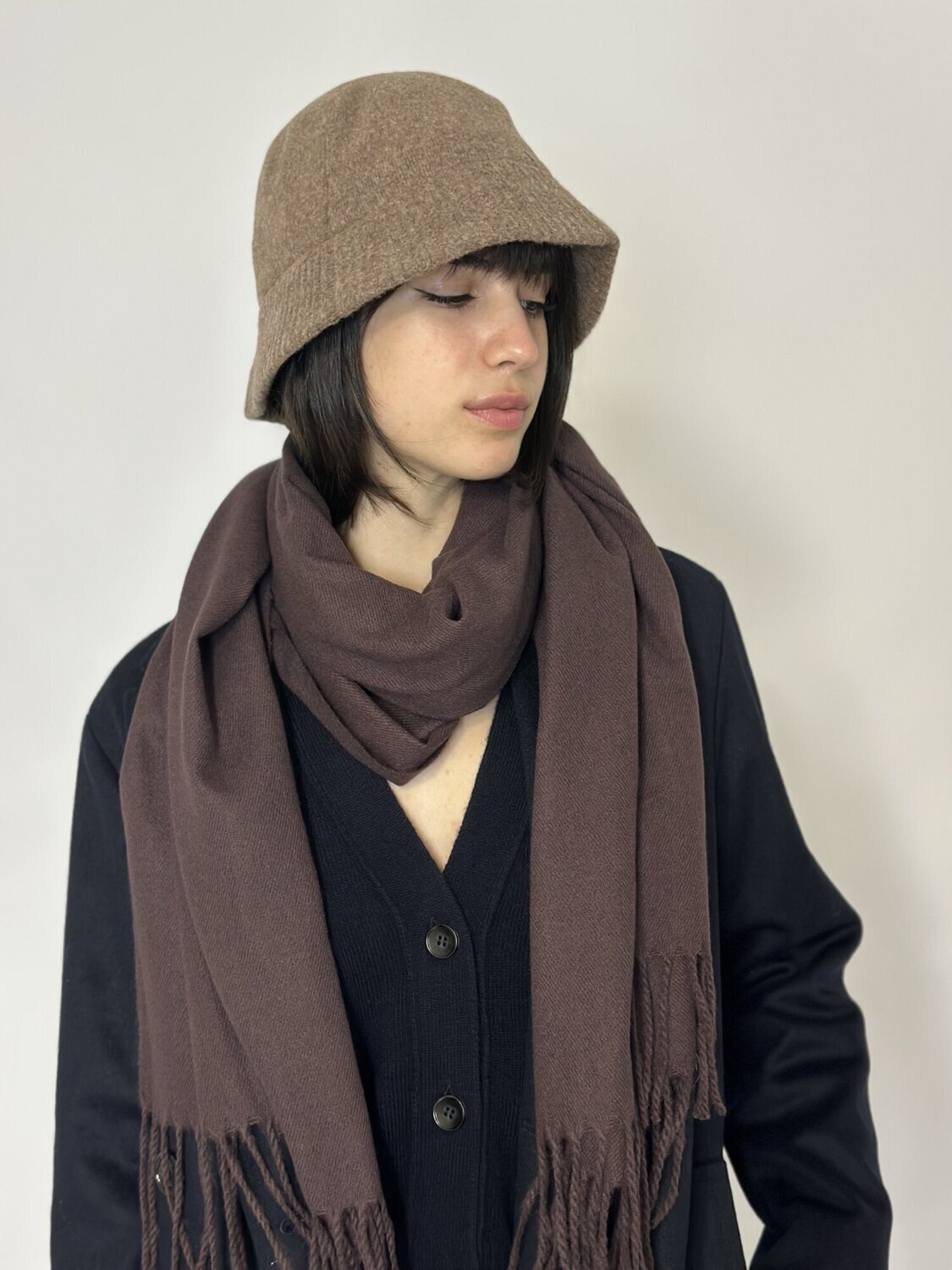 Cappello Ronald tabacco di Emme Marella. Cappello modello cloche in misto lana. Disponibile in tabacco e nero.