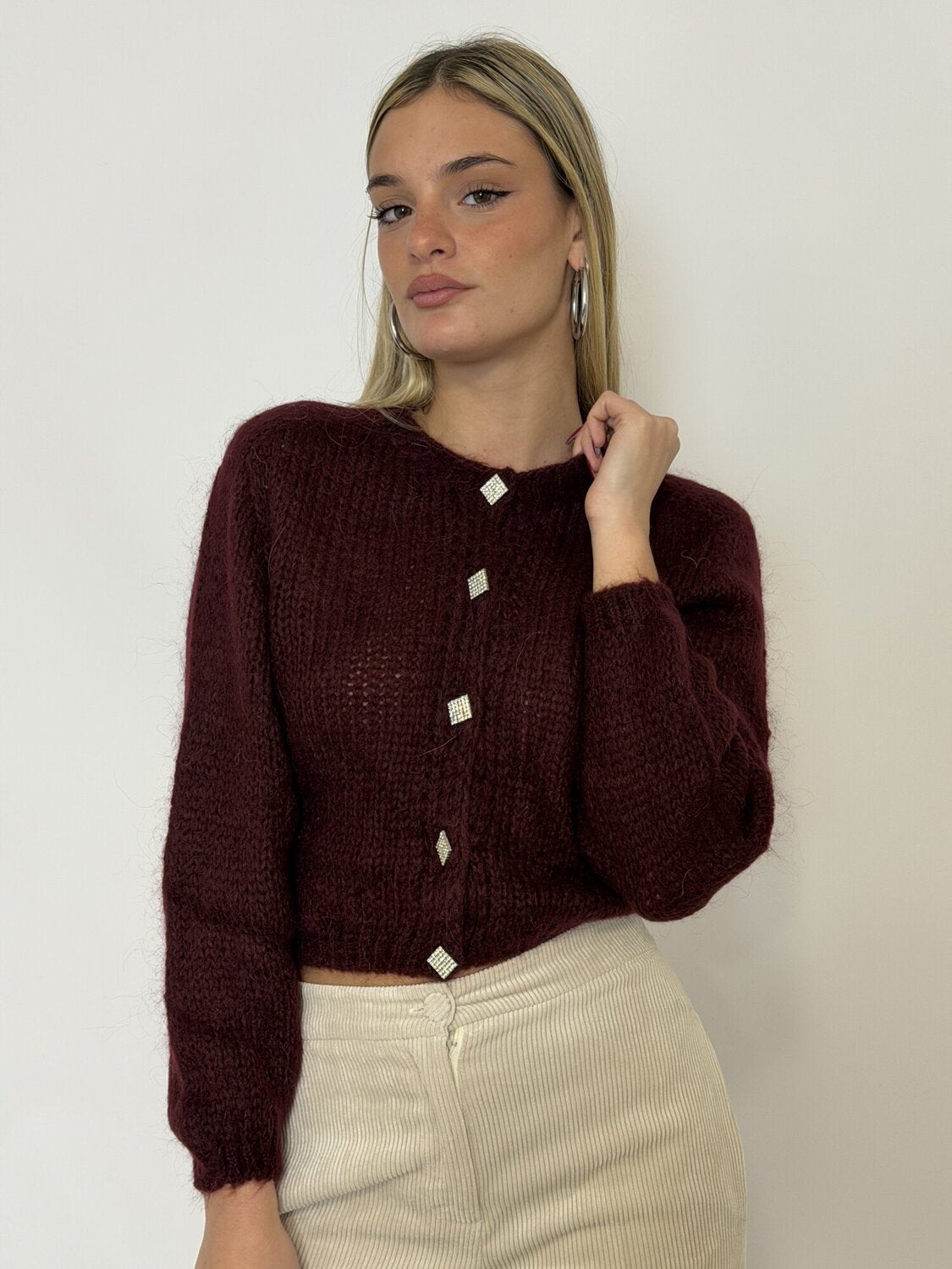 Cardigan Crop Gioiello Bordeaux - Vicolo