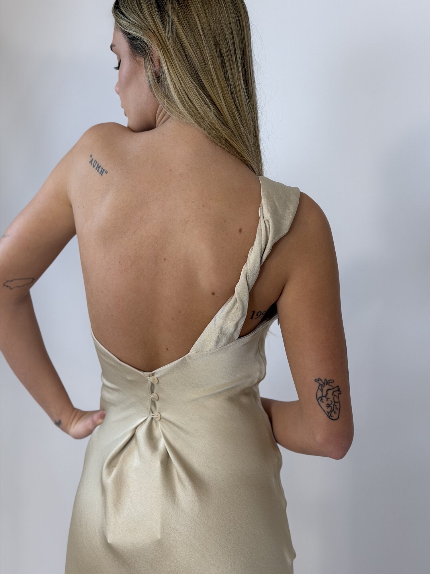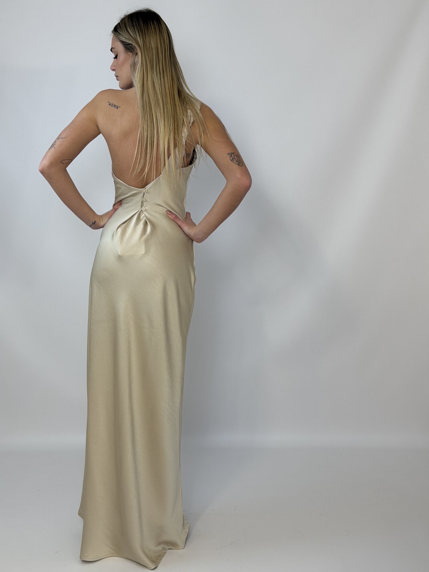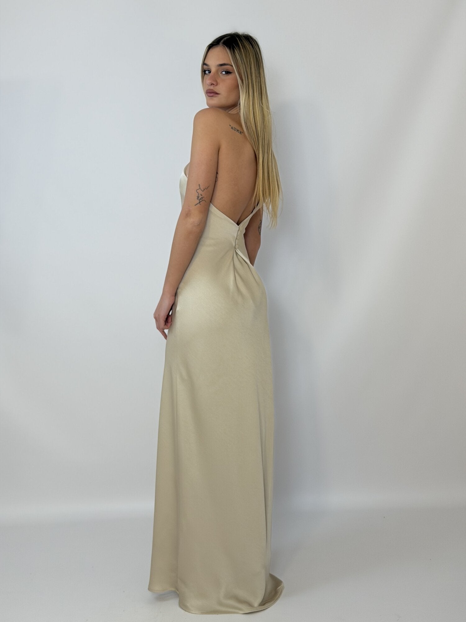 Abito Lungo Satin Monospalla Beige - Eleh
