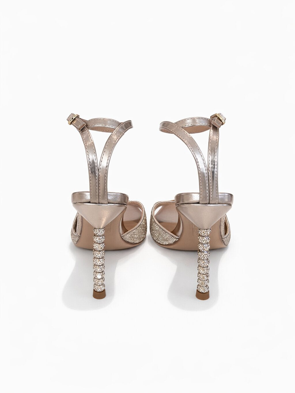 Sandalo Tacco Strass Oro di Ovyé. Sandalo con tacco dal design elegante e luminoso, perfetto per occasioni speciali. La fascia anteriore è impreziosita da micro strass che donano brillantezza al modello, mentre il cinturino alla caviglia con fibbia regolabile garantisce una calzata stabile e confortevole. Il tacco alto, decorato con strass, slancia la figura aggiungendo un tocco glamour e sofisticato.