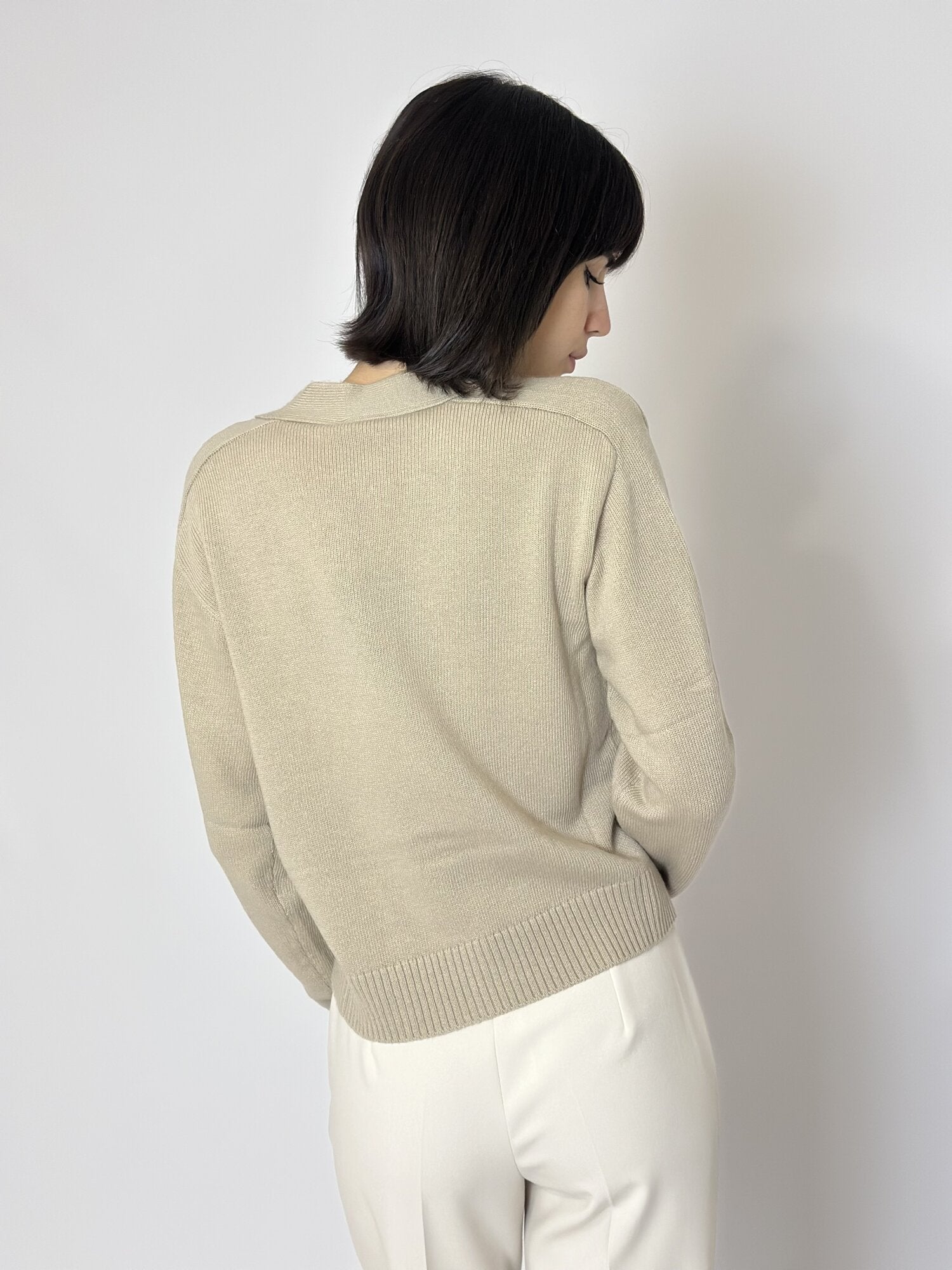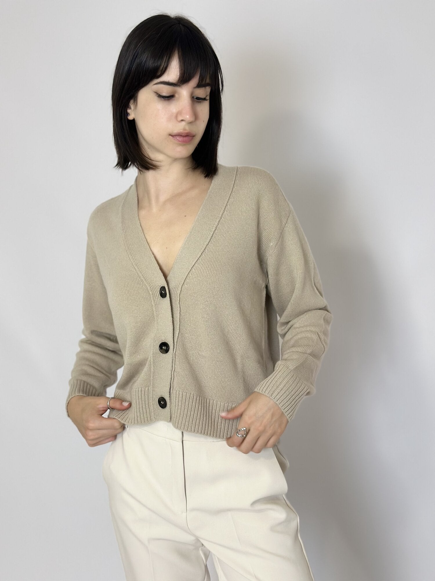 Cardigan Blazer beige di Emme Marella. Cardigan in filato misto lana dal fit dritto. Scollo a V con spalla scesa. Chiusura con bottoni in simil corno. Fondo e polsi lavorati a costine. Disponibile in blu notte.