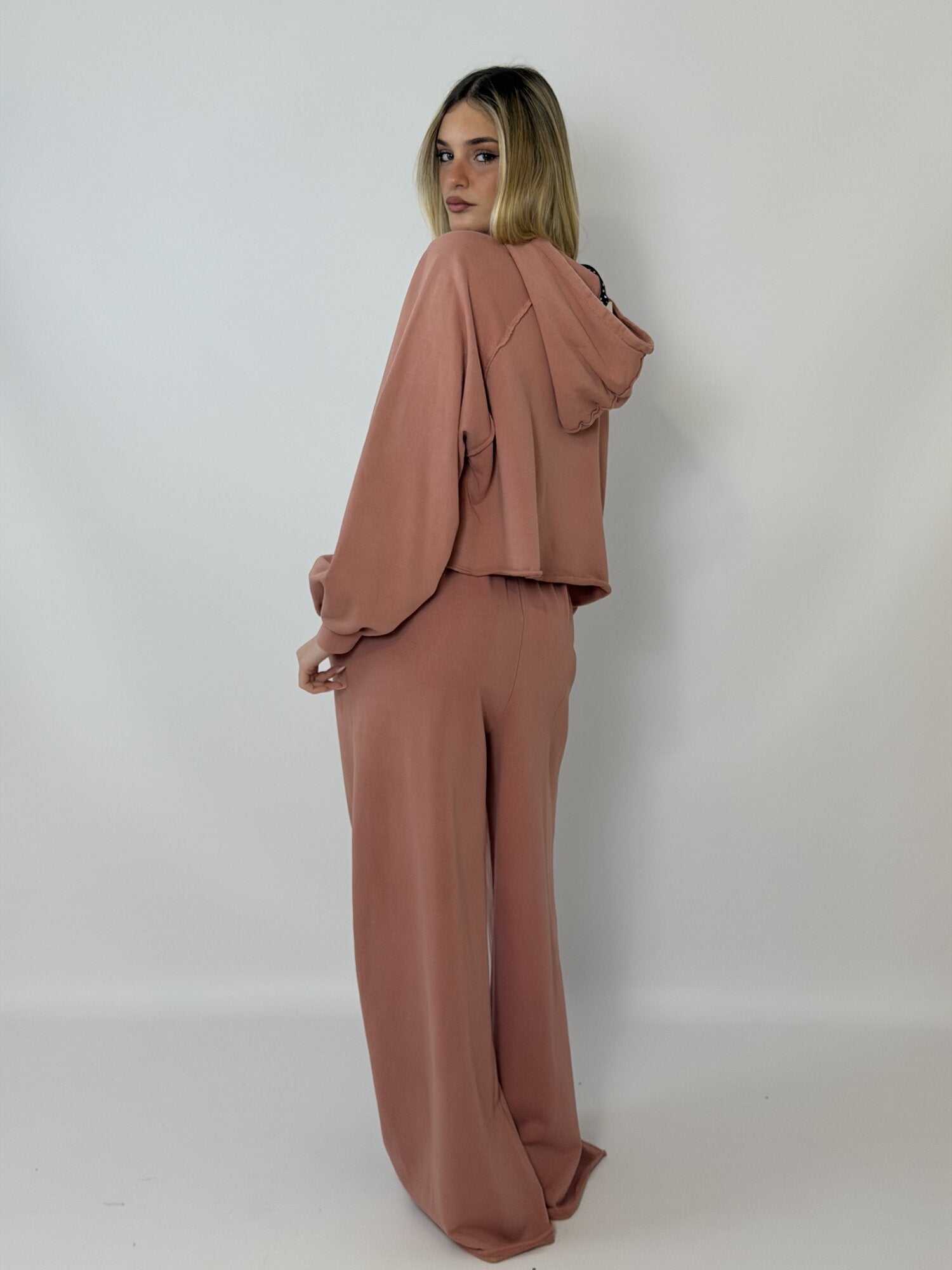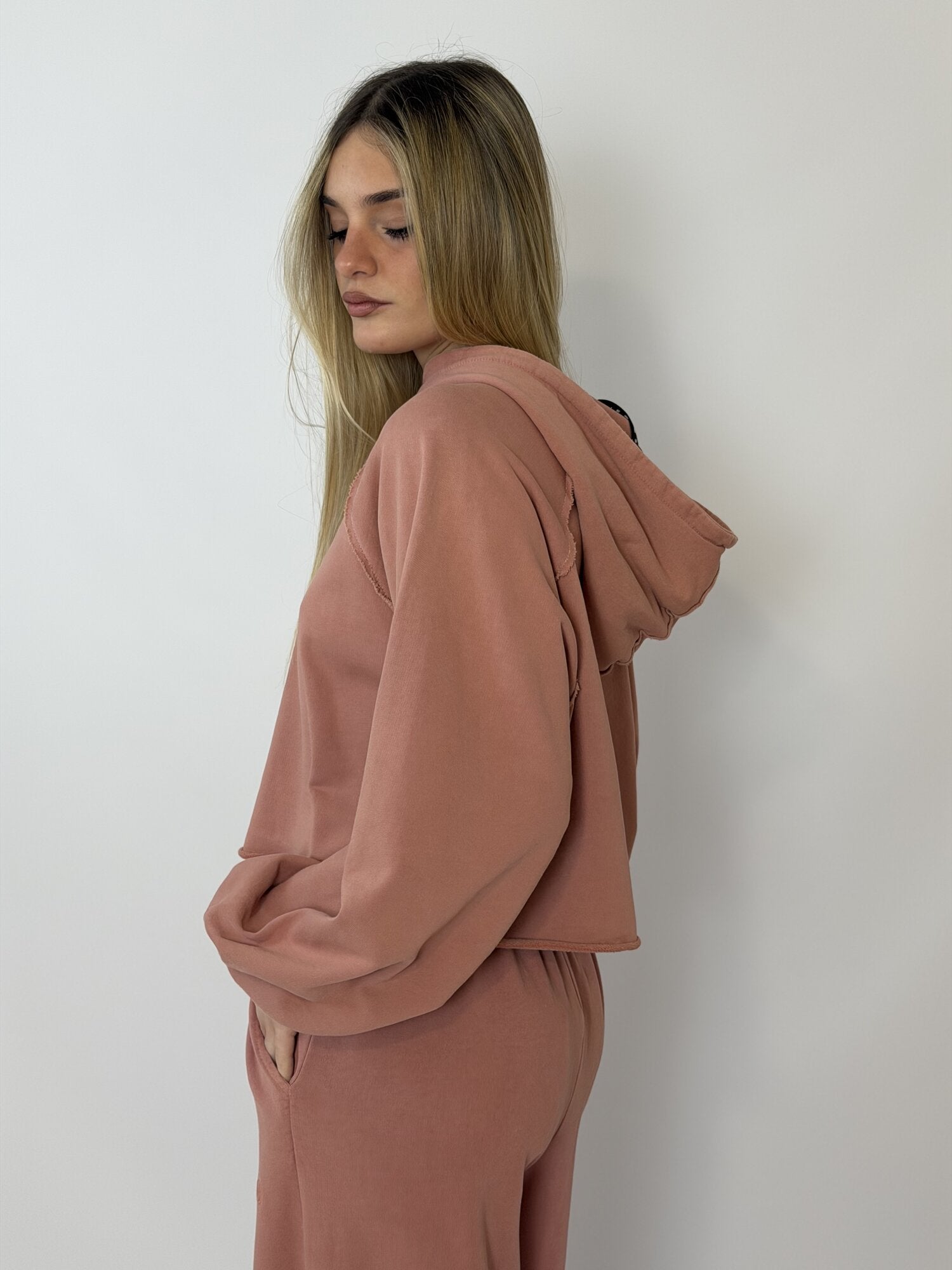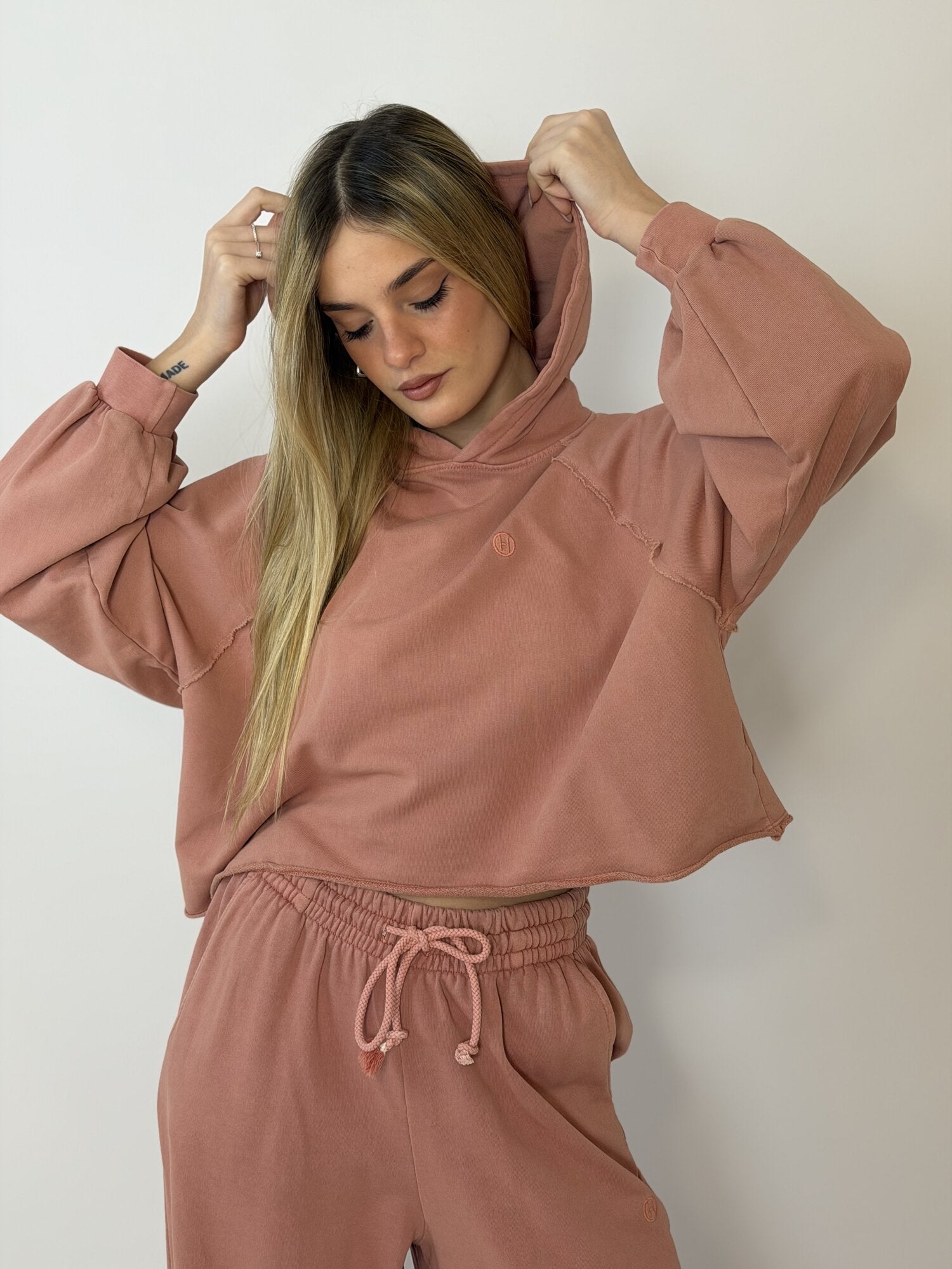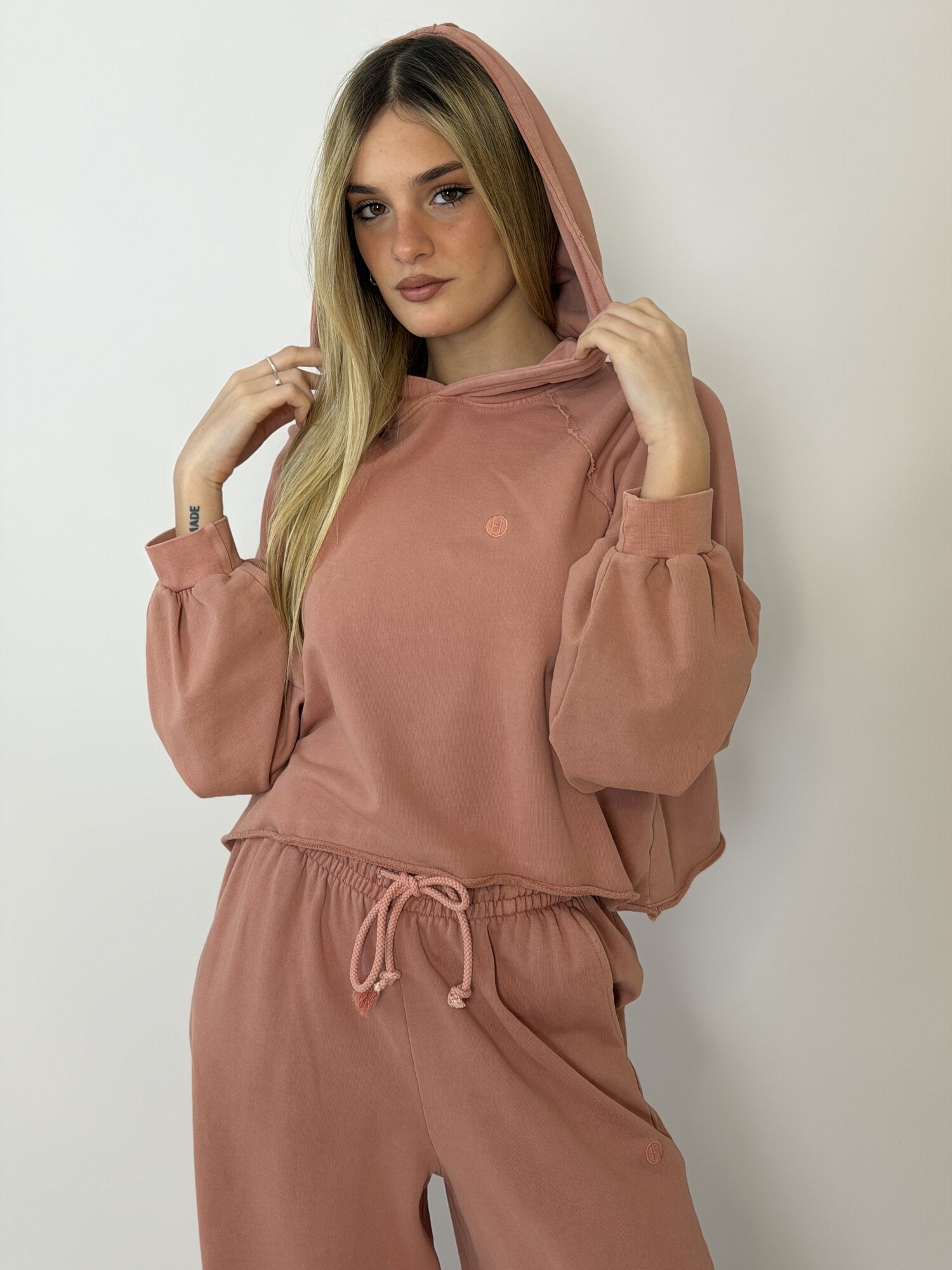 Felpa Cappuccio Ricamo Rosa - Haveone