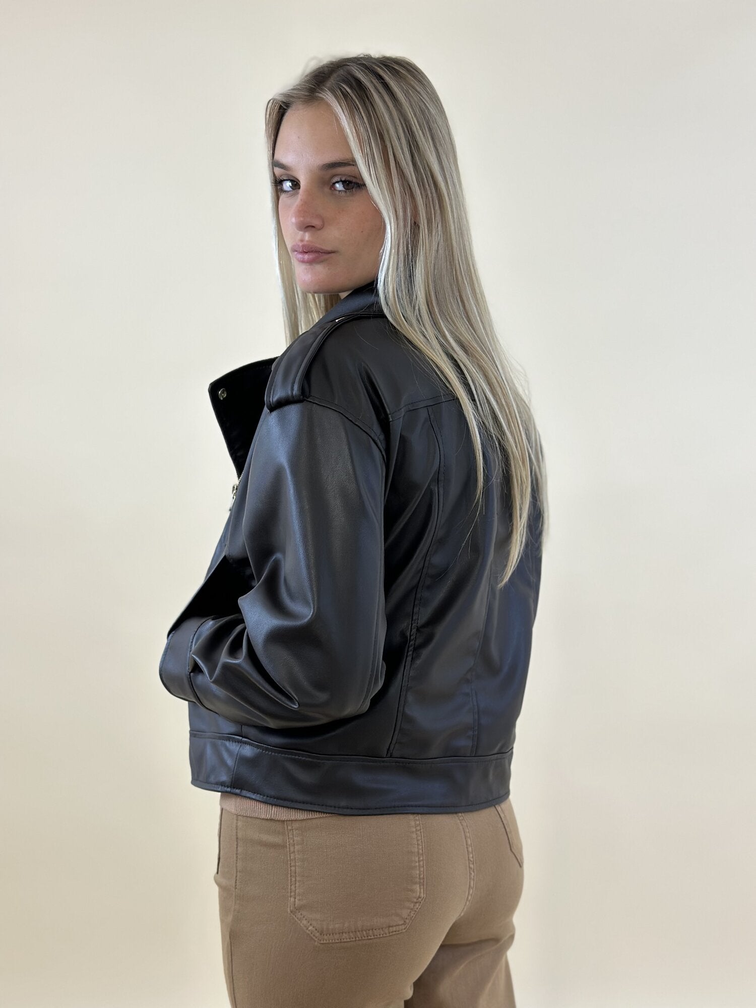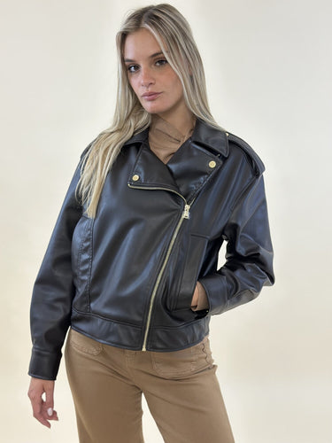 Biker Nurse moro. Giubbotto corto in pelle con cerniera asimmetrica e tasche laterali con zip. Colletto a revers. Vestibilità regolare. Materiale morbido effetto pelle. Disponibile nel colore moro.