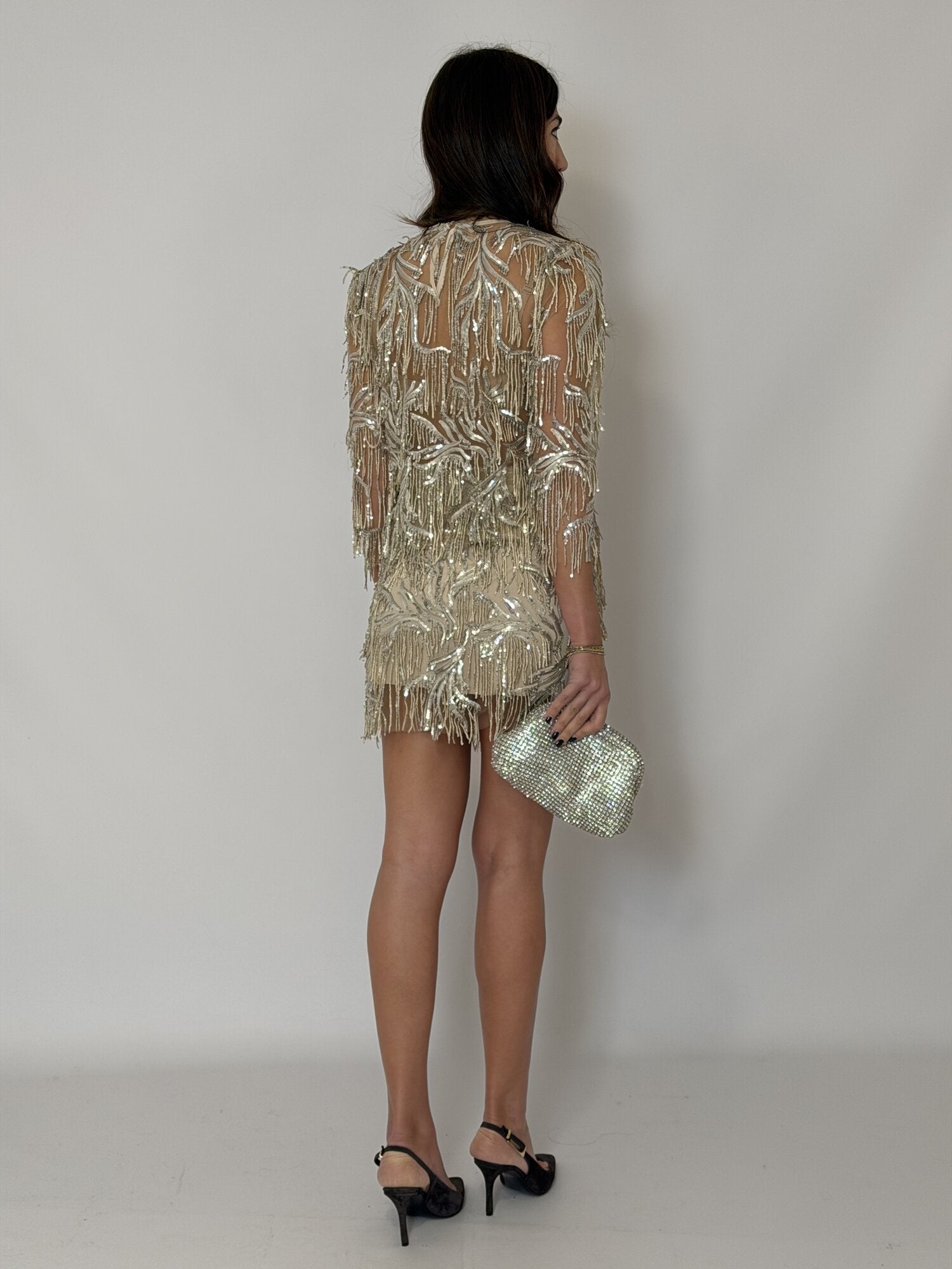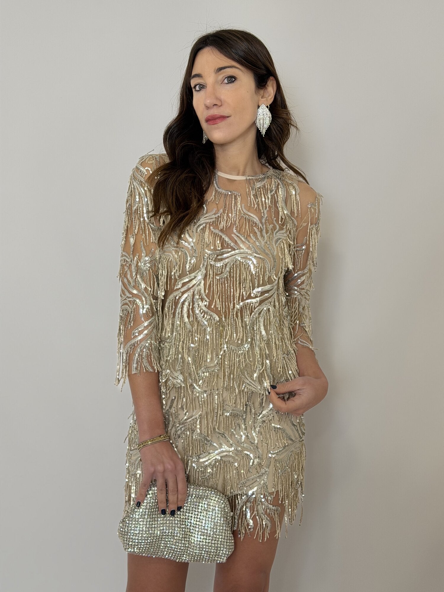 Minigonna Frange Paillettes Panna - Tensione In