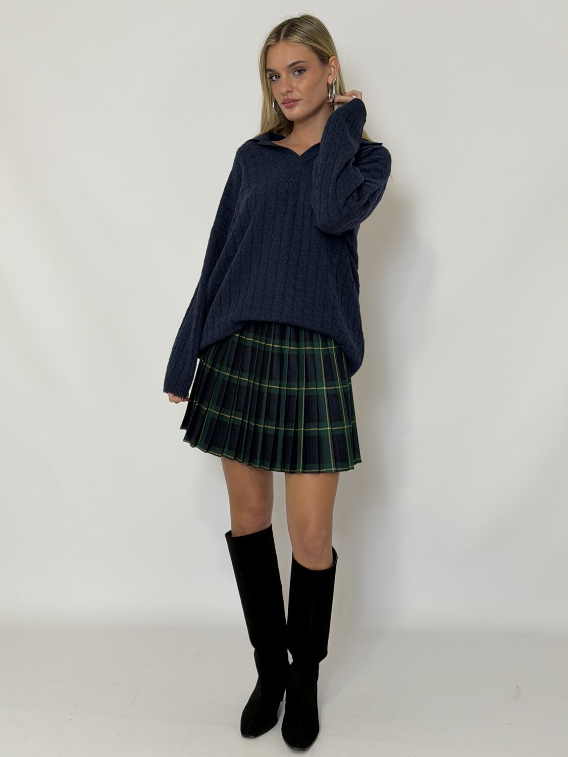 Minigonna Pieghe Check Blu Notte - Vicolo