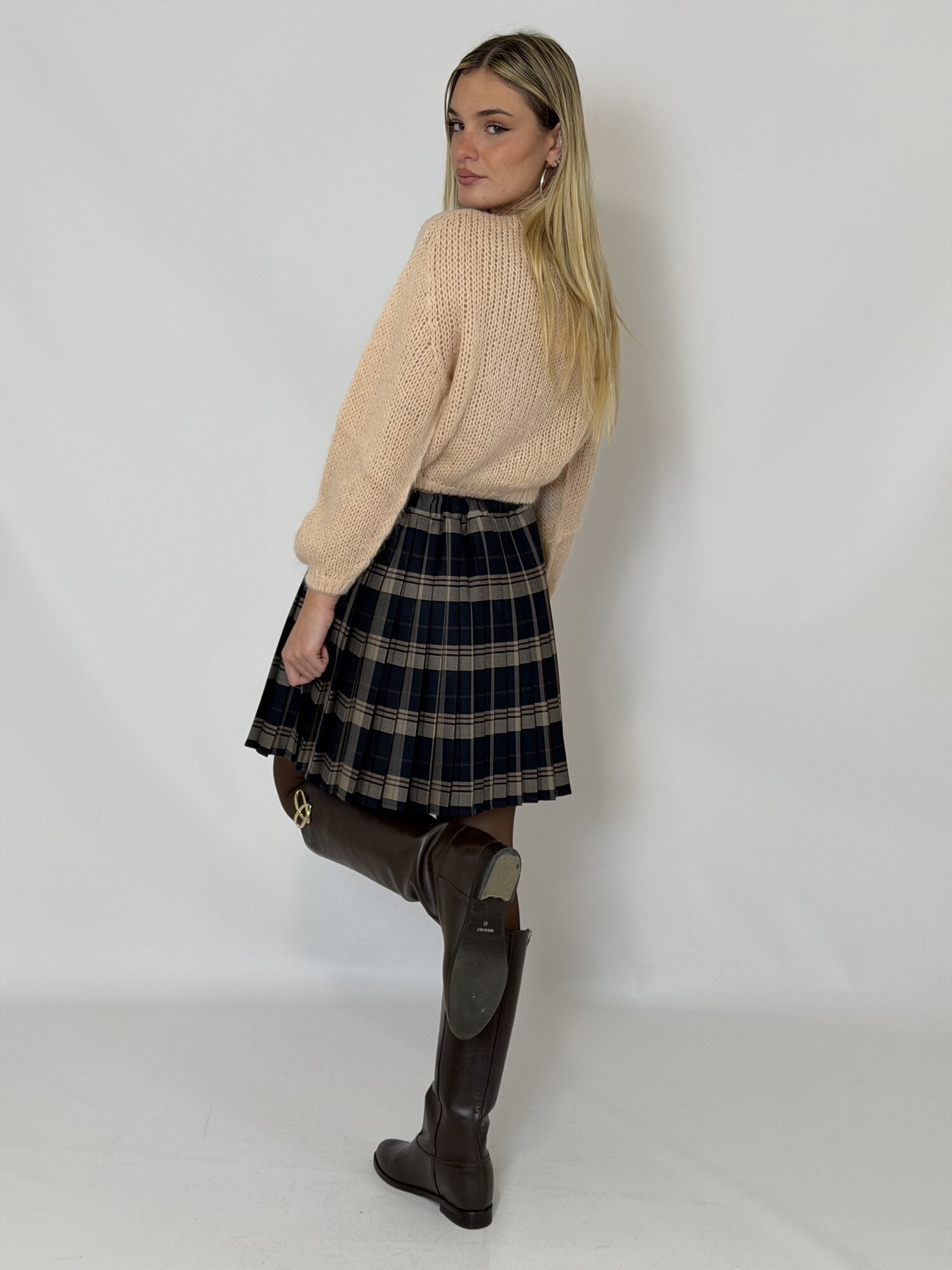 Minigonna Pieghe Quadri Blu Beige - Vicolo