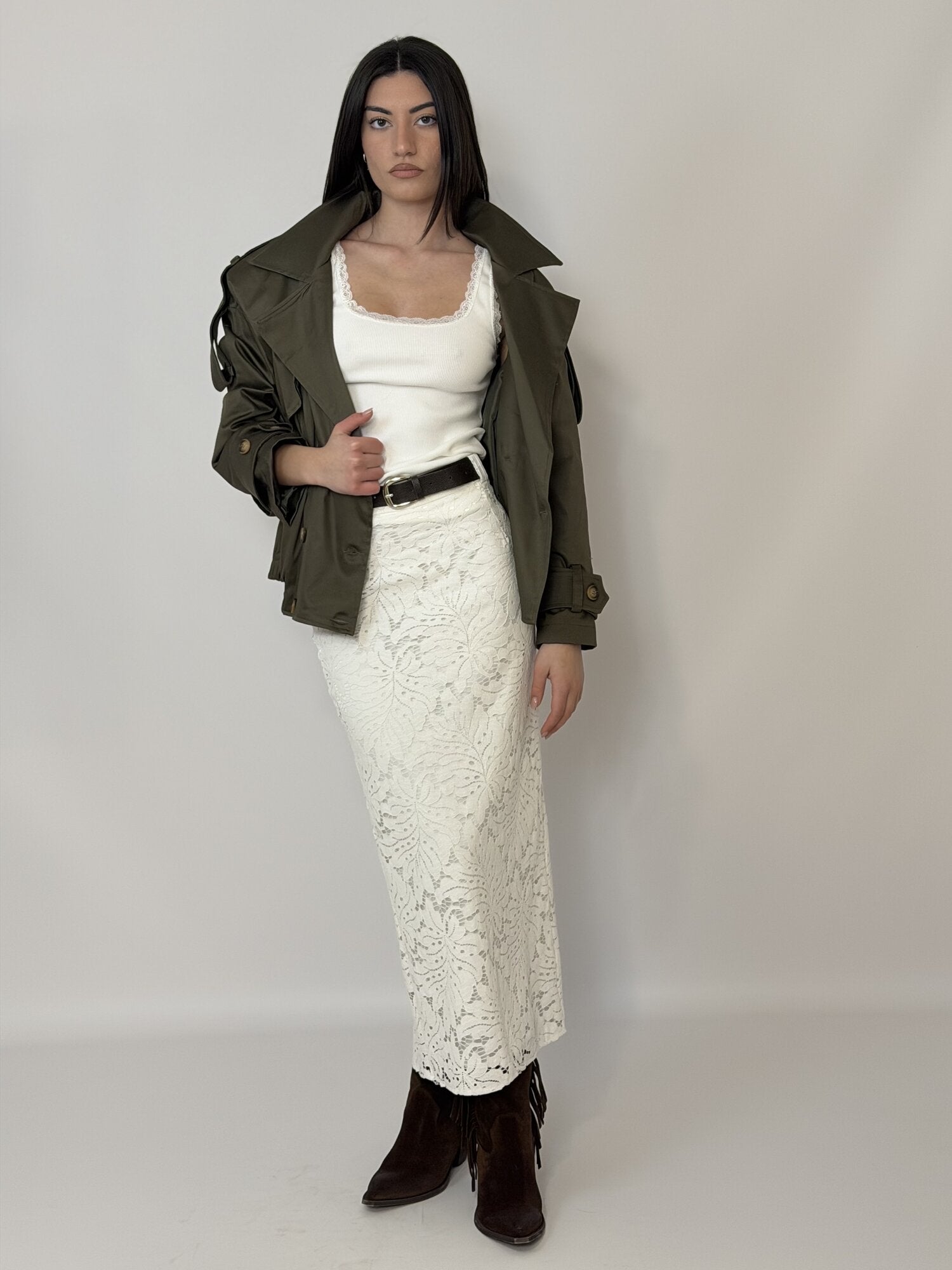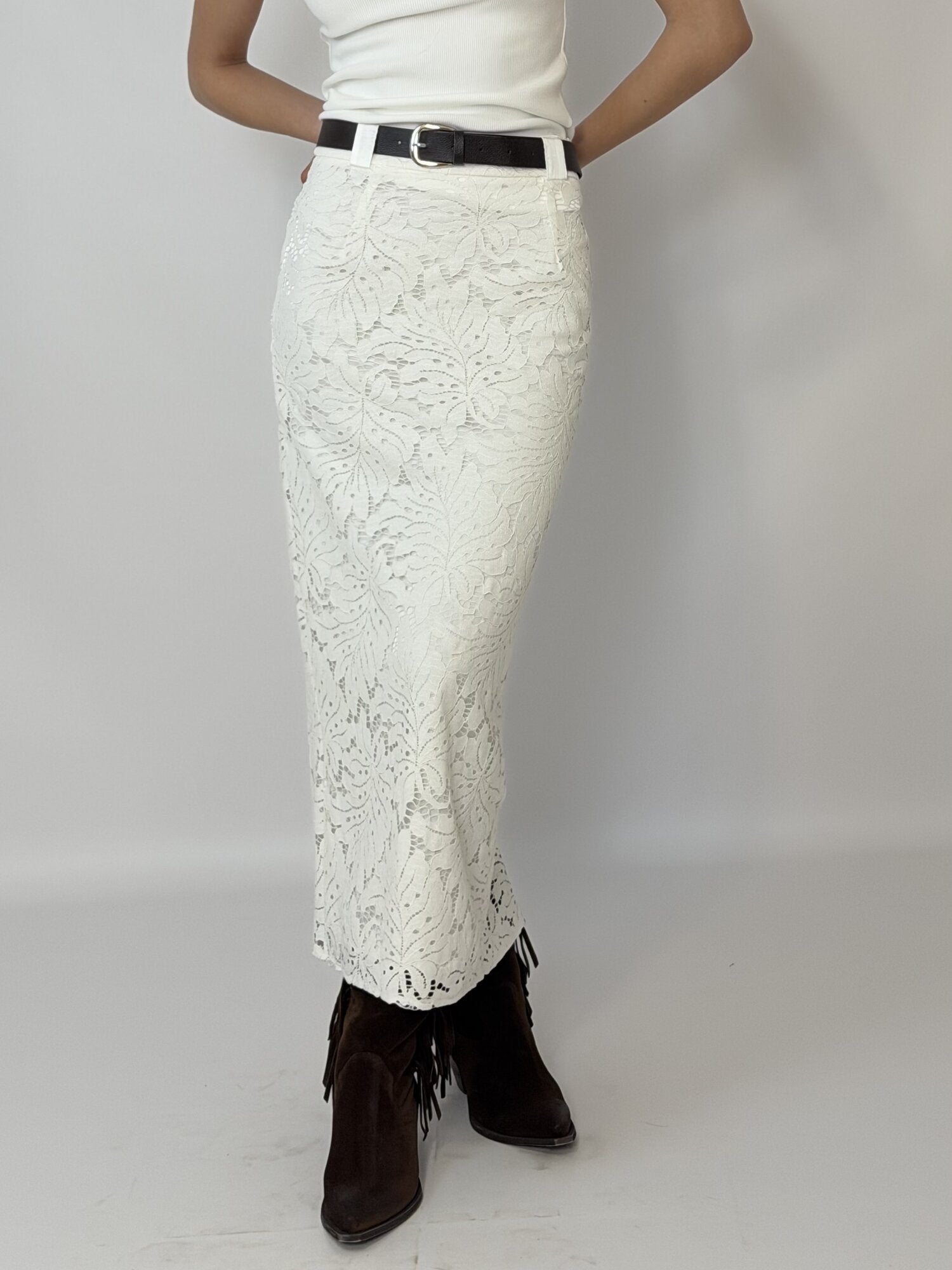 Gonna Longuette Pizzo Cinta Panna - Haveone