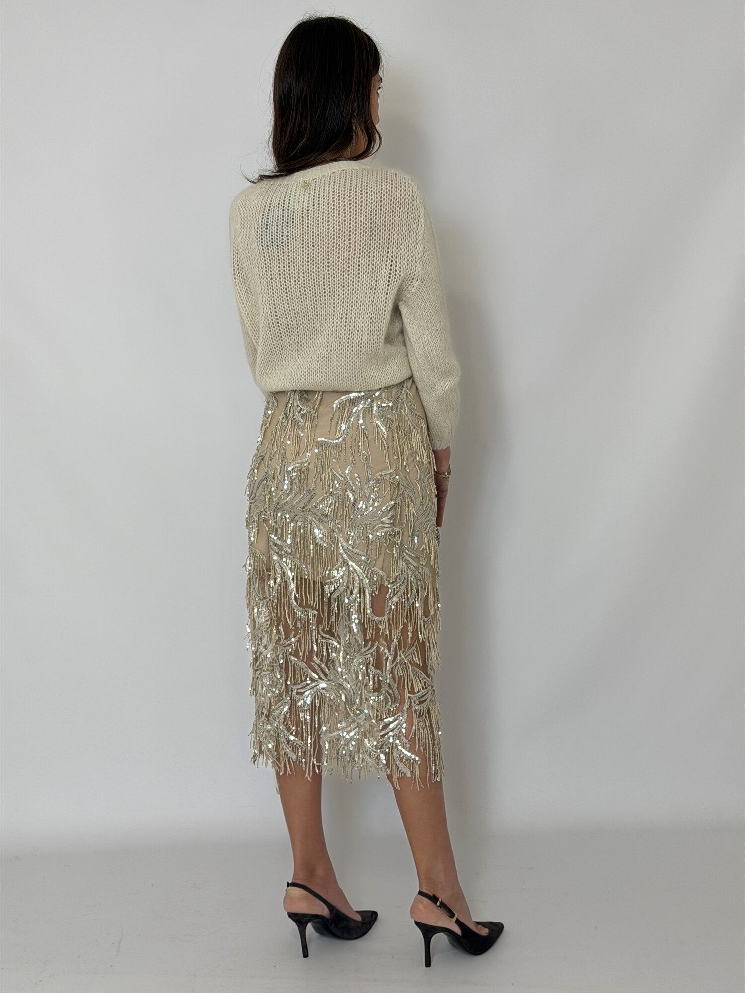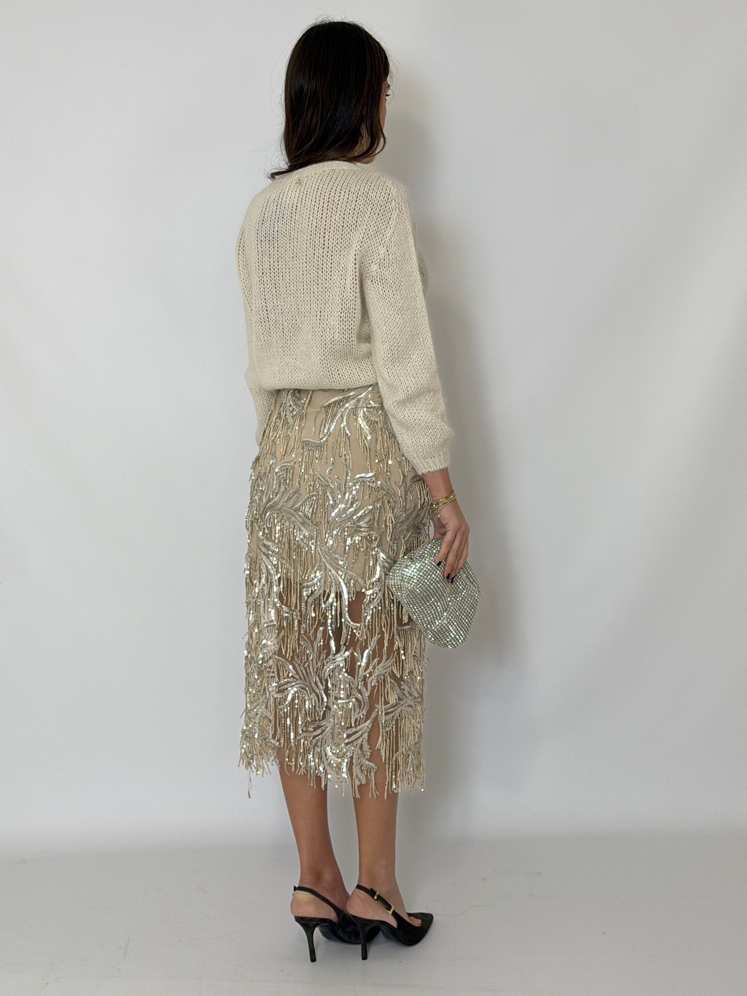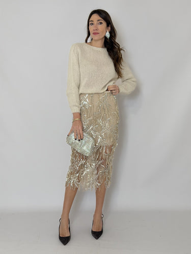 Gonna Midi Frange Paillettes Panna - Tensione In