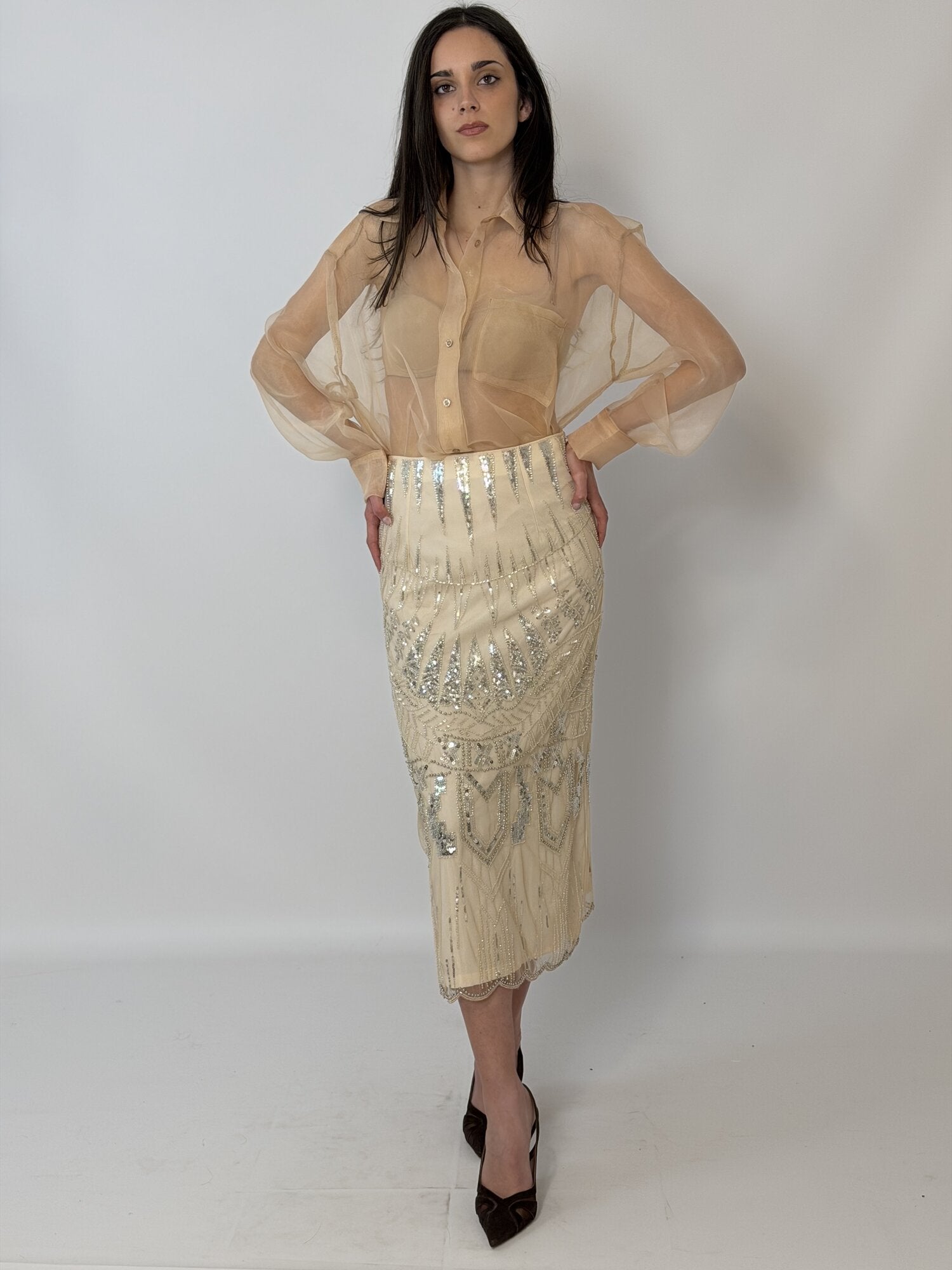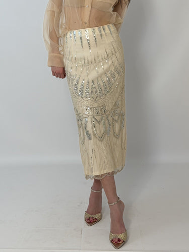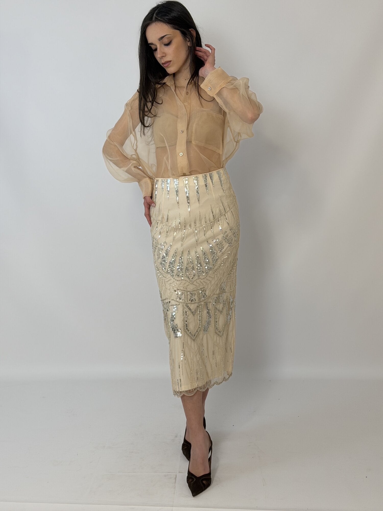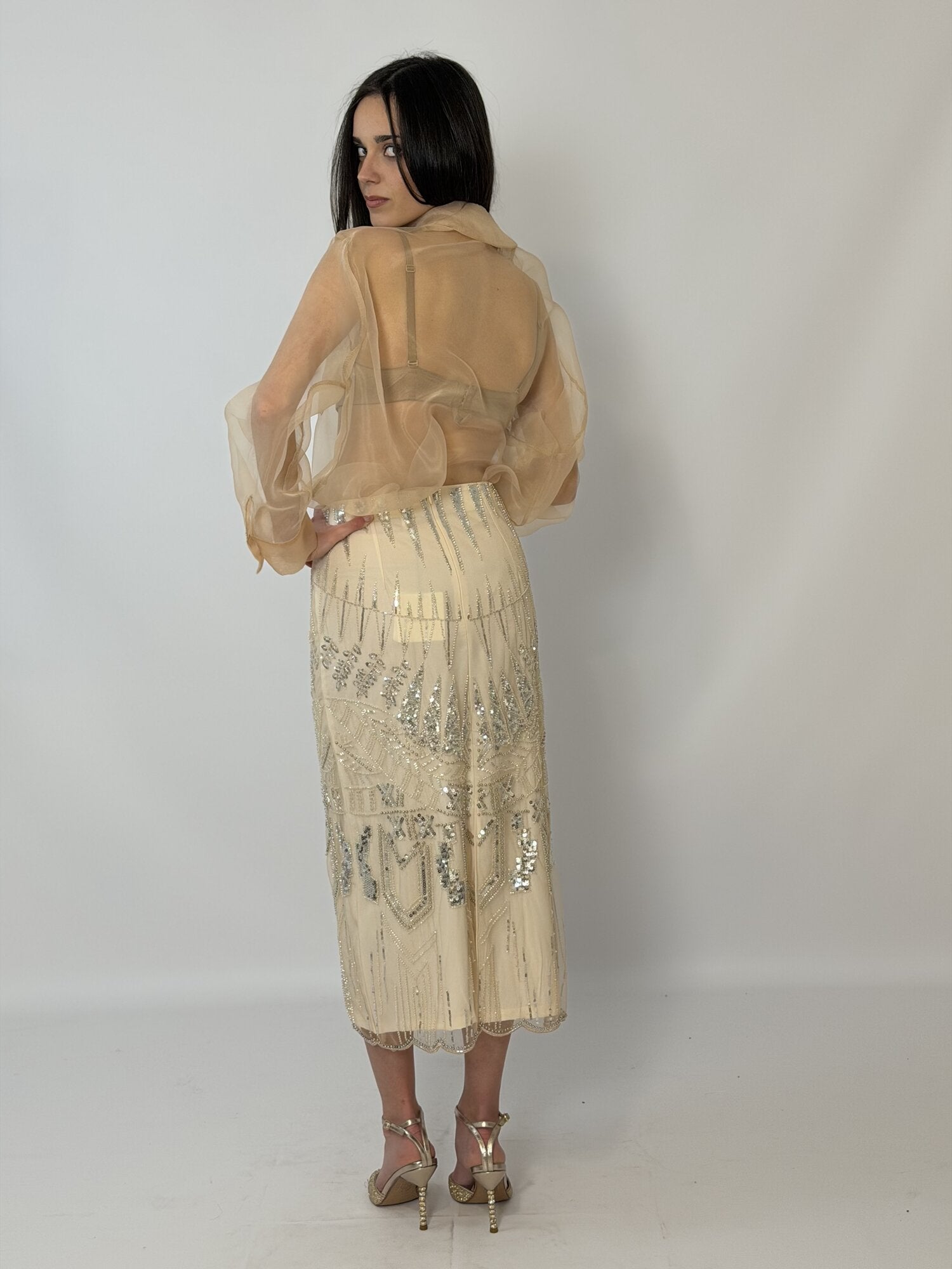 Gonna Midi Tulle Paillettes Nude - Tensione In
