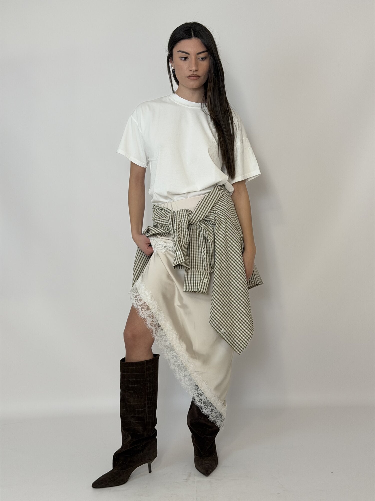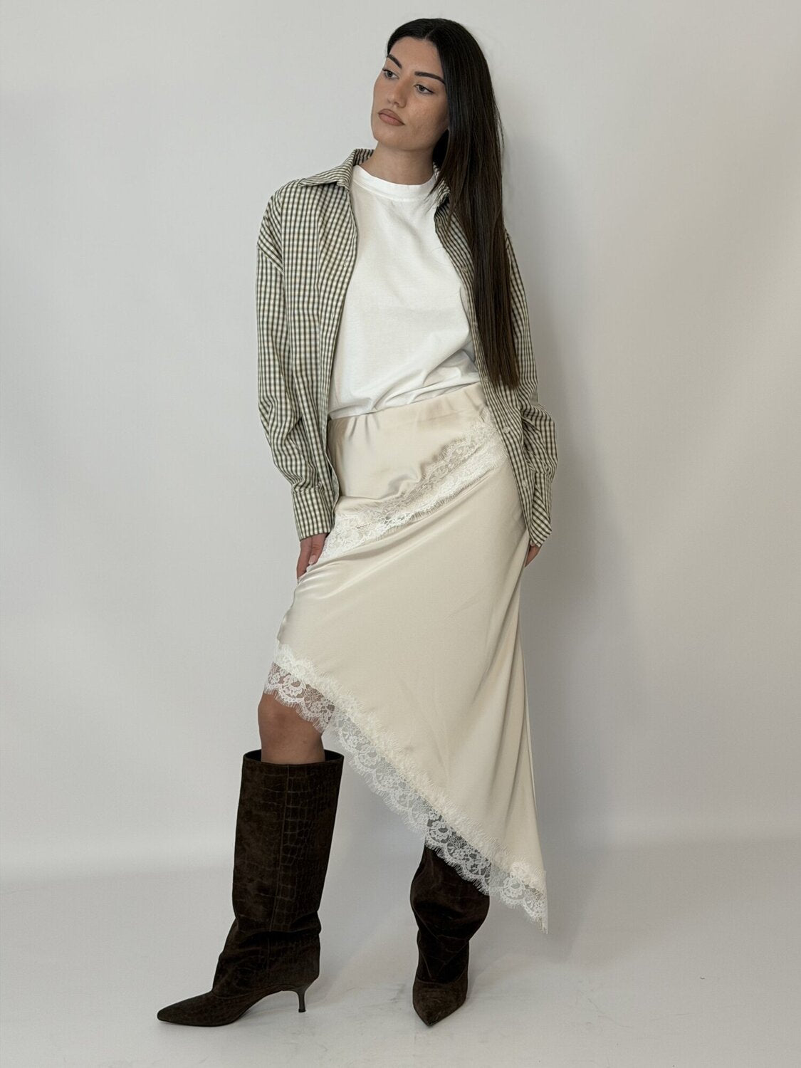 Gonna Satin Pizzo Avorio - Haveone