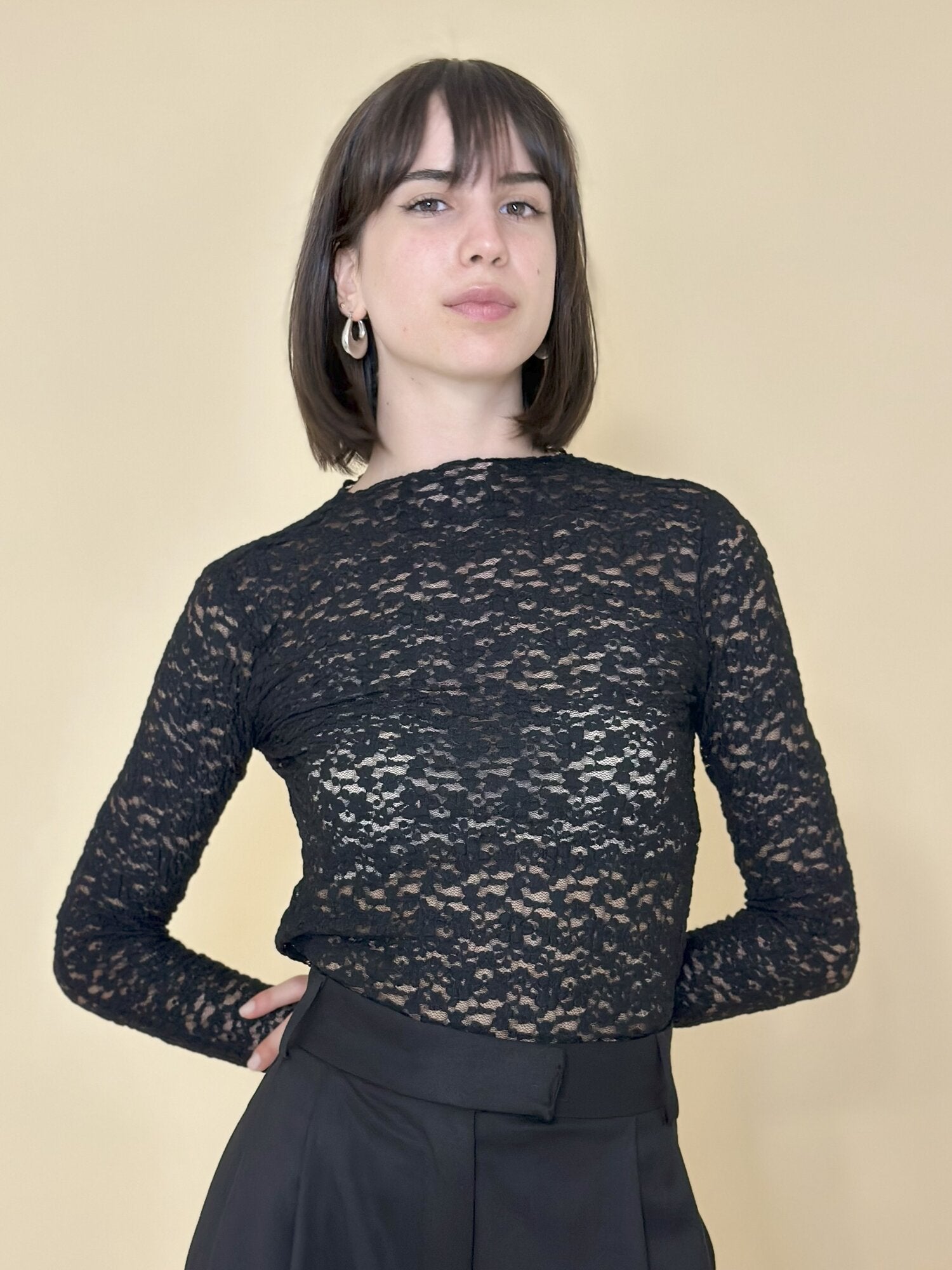 La modella è alta 1,75 e indossa la taglia XS.