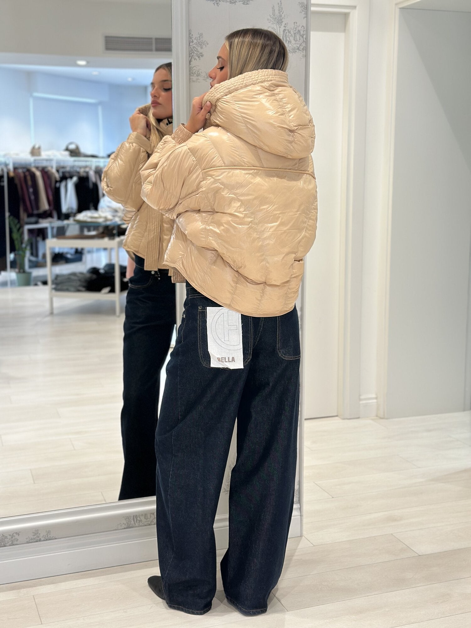 Piumino crop beige lucido - Haveone