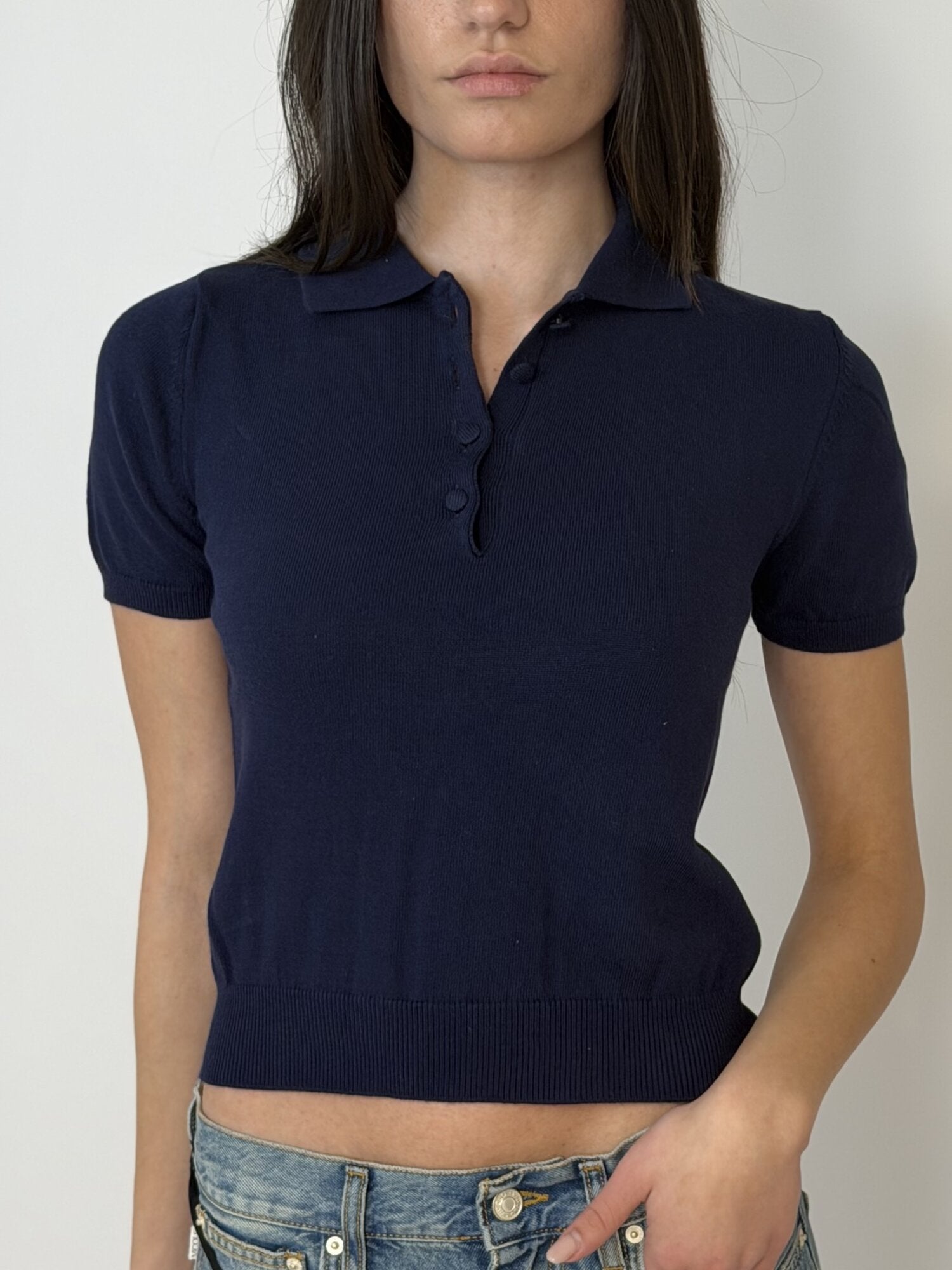 Polo in maglia fine a maniche corte, proposta in una tonalità blu intensa che valorizza la texture compatta del tessuto. Il modello presenta colletto classico, abbottonatura frontale e una linea aderente ma confortevole, ideale per look quotidiani curati. Perfetta con denim o pantaloni sartoriali per unestetica essenziale e moderna.