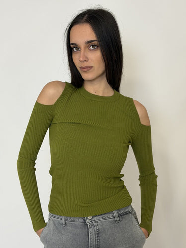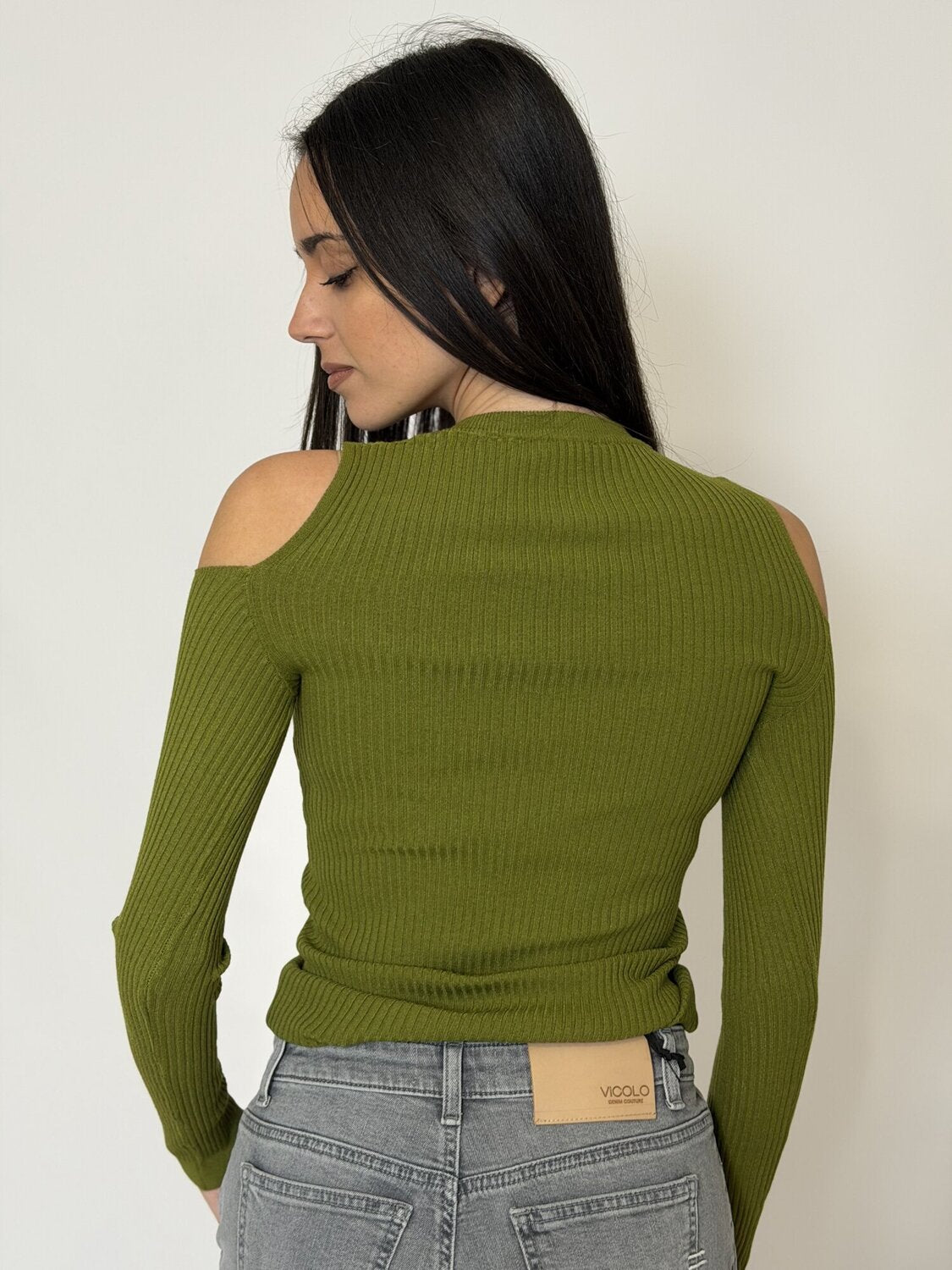Maglia costine Cut Out Spalla Verde militare - Vicolo