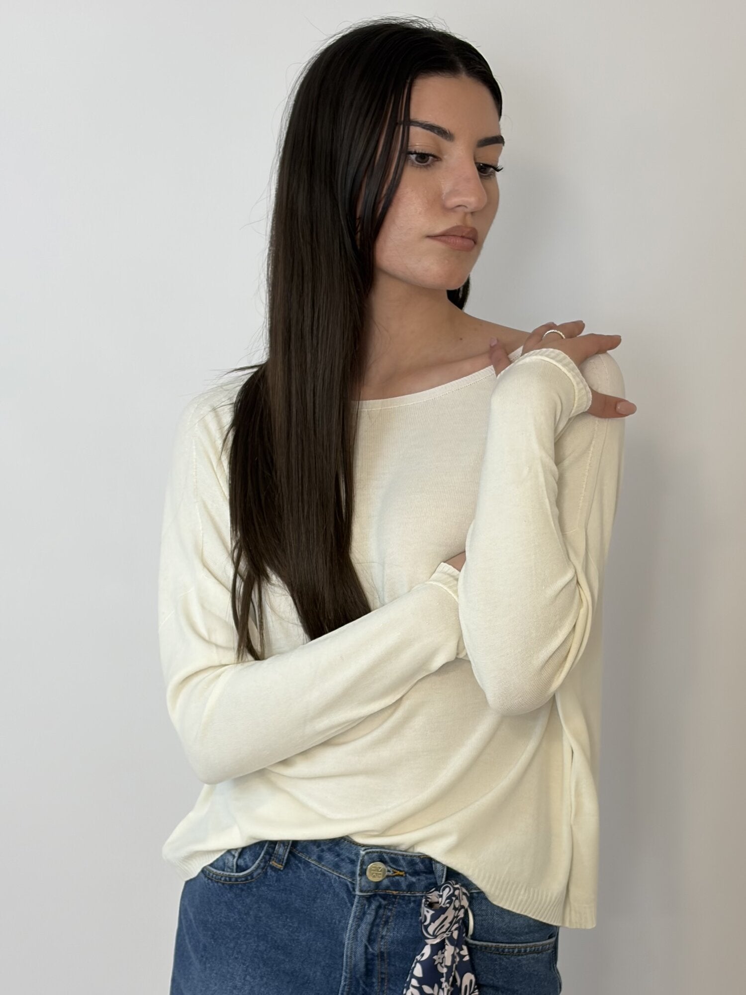 Maglia Scollo Schiena Lacci Panna - Vicolo