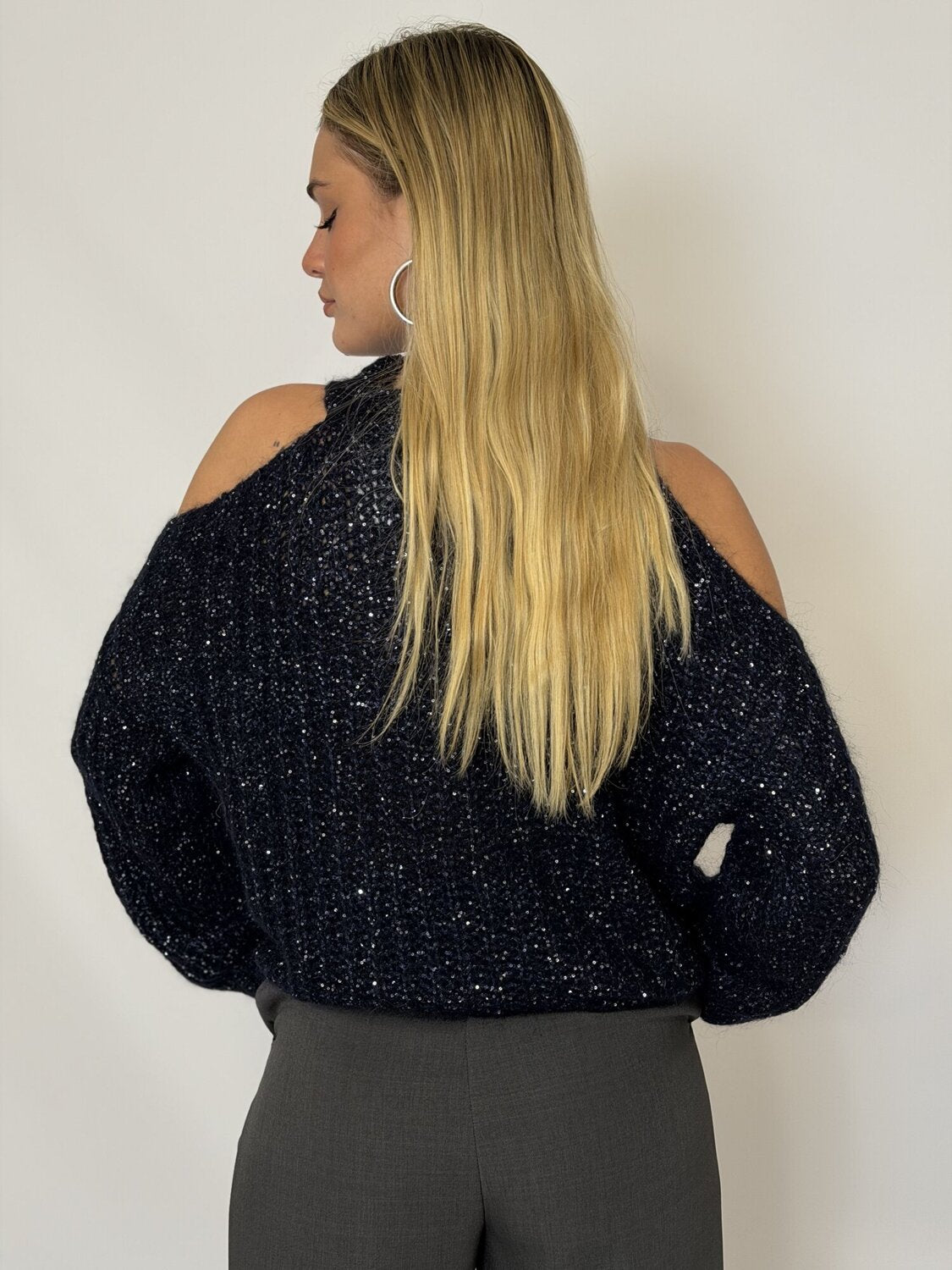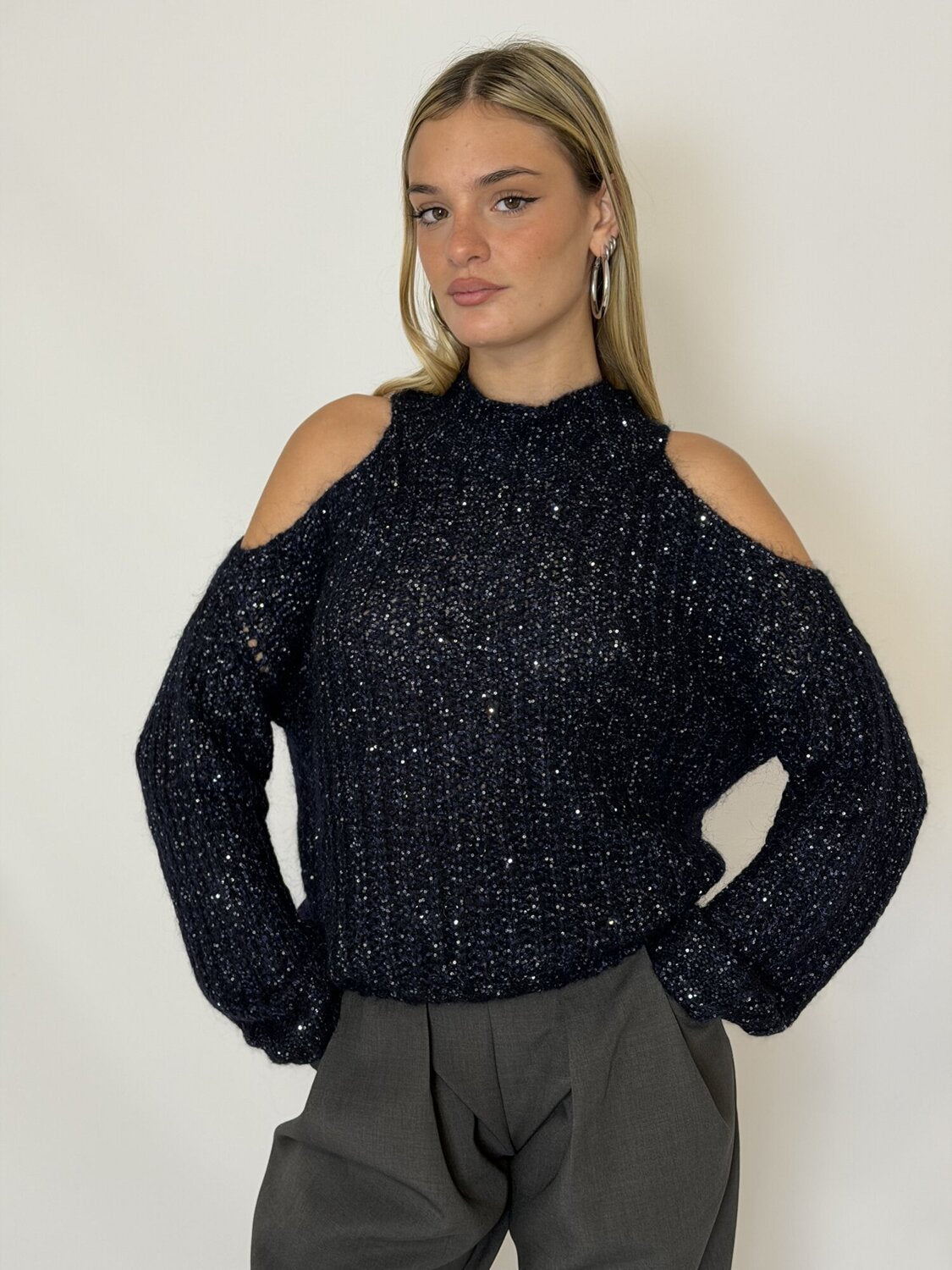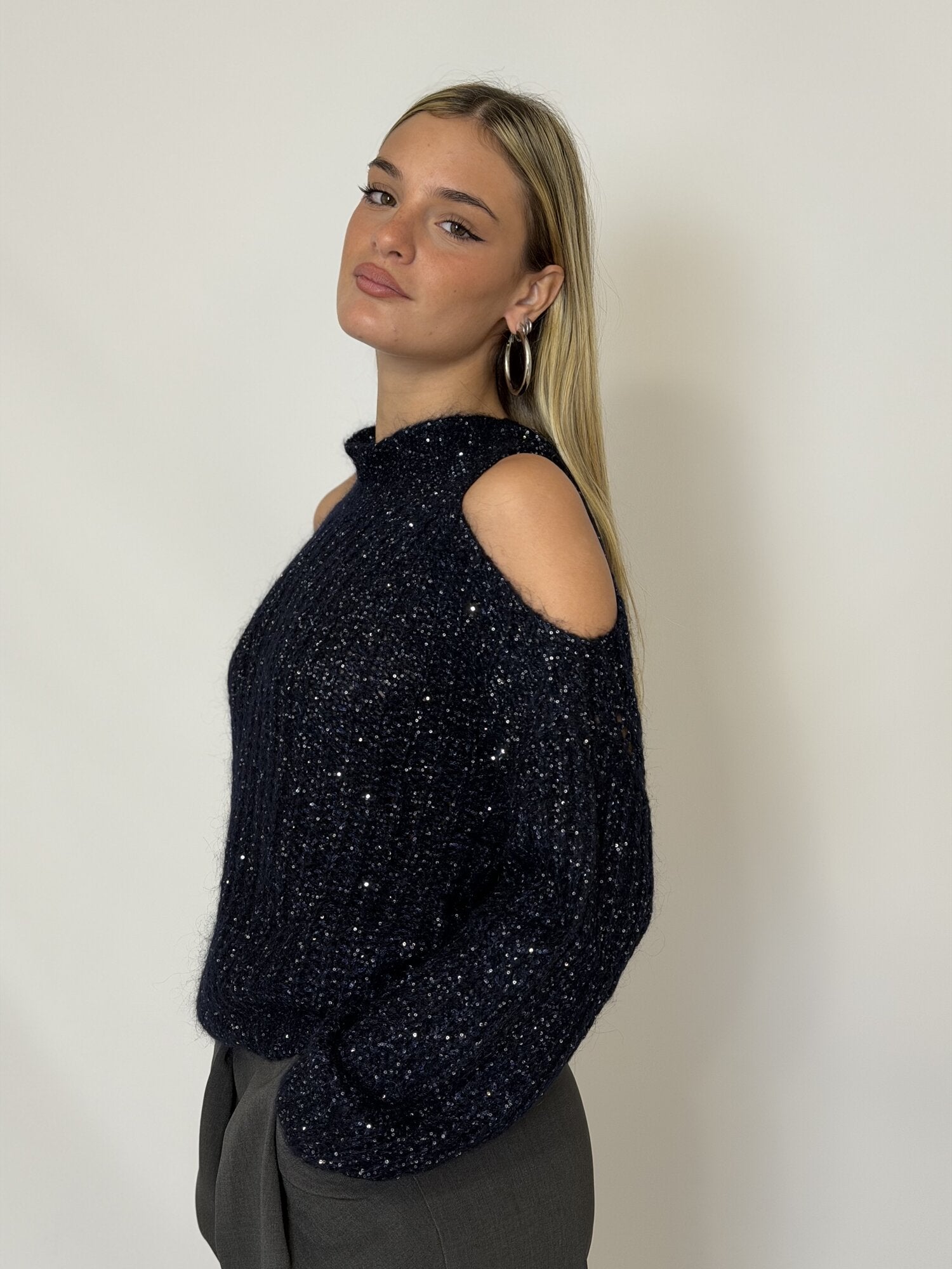 Pullover Lupetto Cut Out Paillettes blu notte - Vicolo