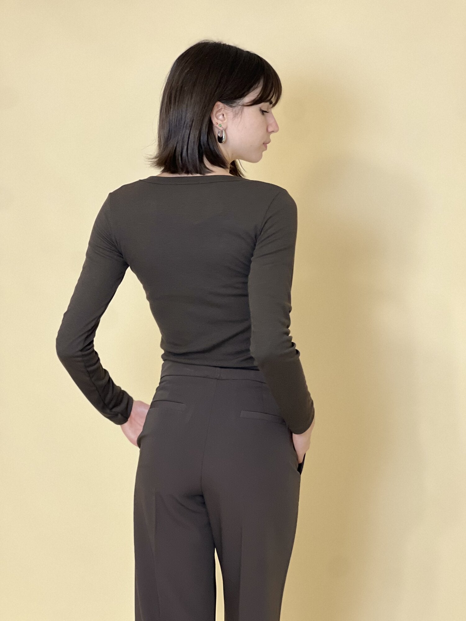 Tshirt maniche lunghe a costine scollo a V moro - Vicolo