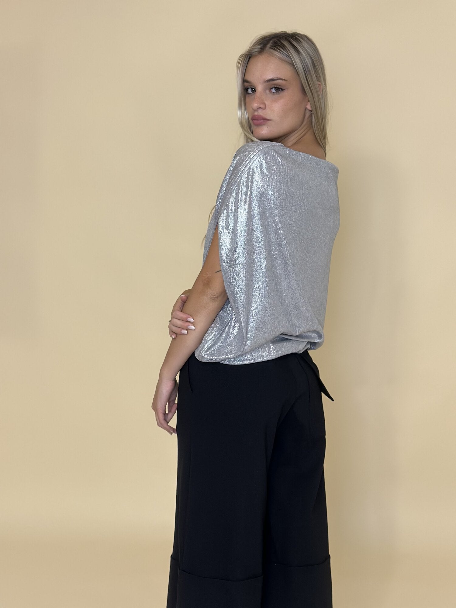 Bermuda neri con risvolto di Meimei J. Pantaloni a vita alta con risvolto ampio e passanti per cintura. Vestibilità ampia e dritta. Materiale strutturato e confortevole. Disponibile nel colore nero.
