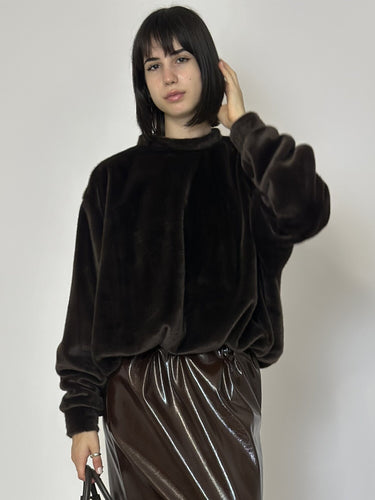 Felpa ecopelliccia moro di Meimei J. Felpa girocollo a maniche lunghe. Vestibilità over. Disponibile in moro.