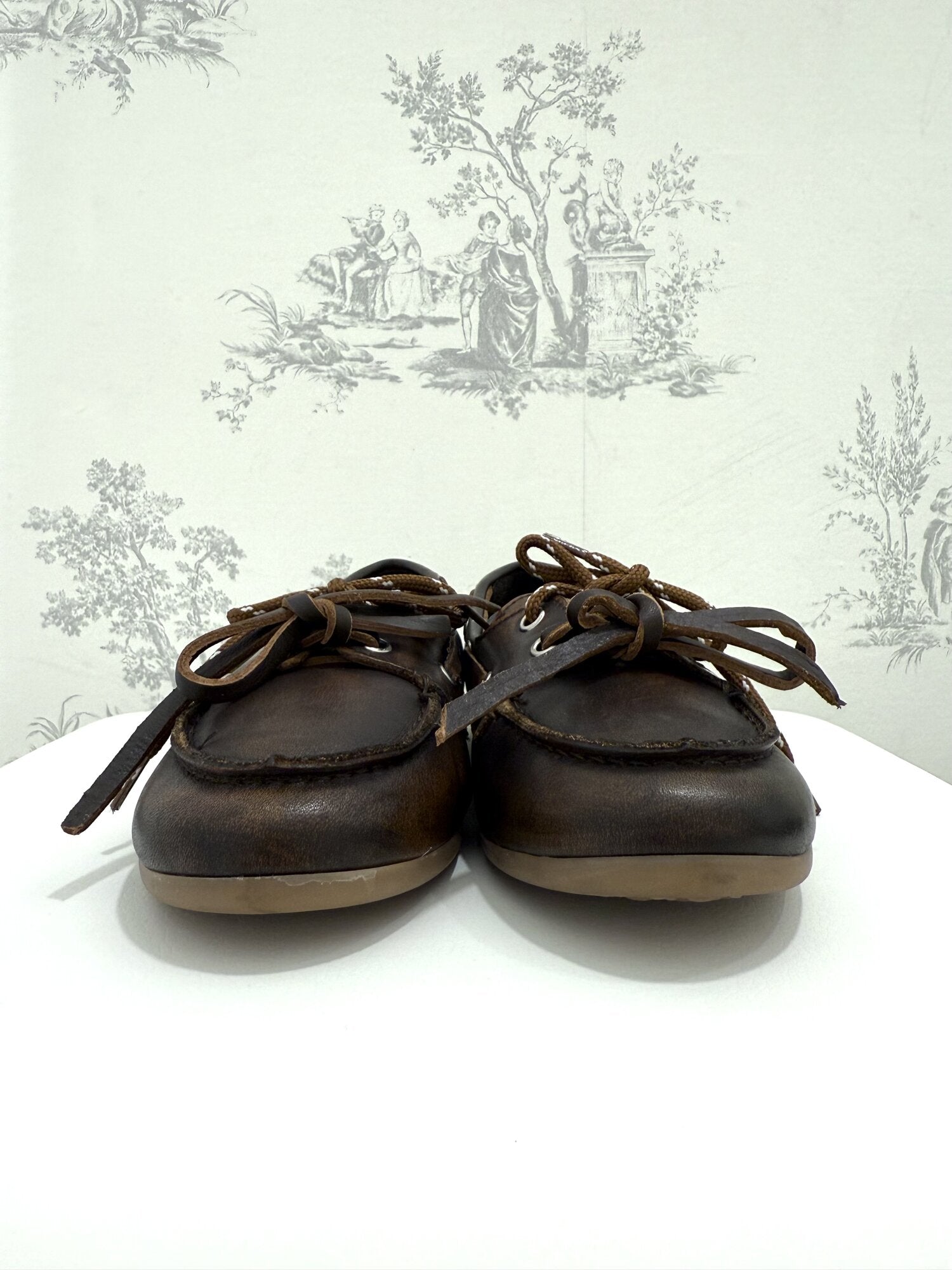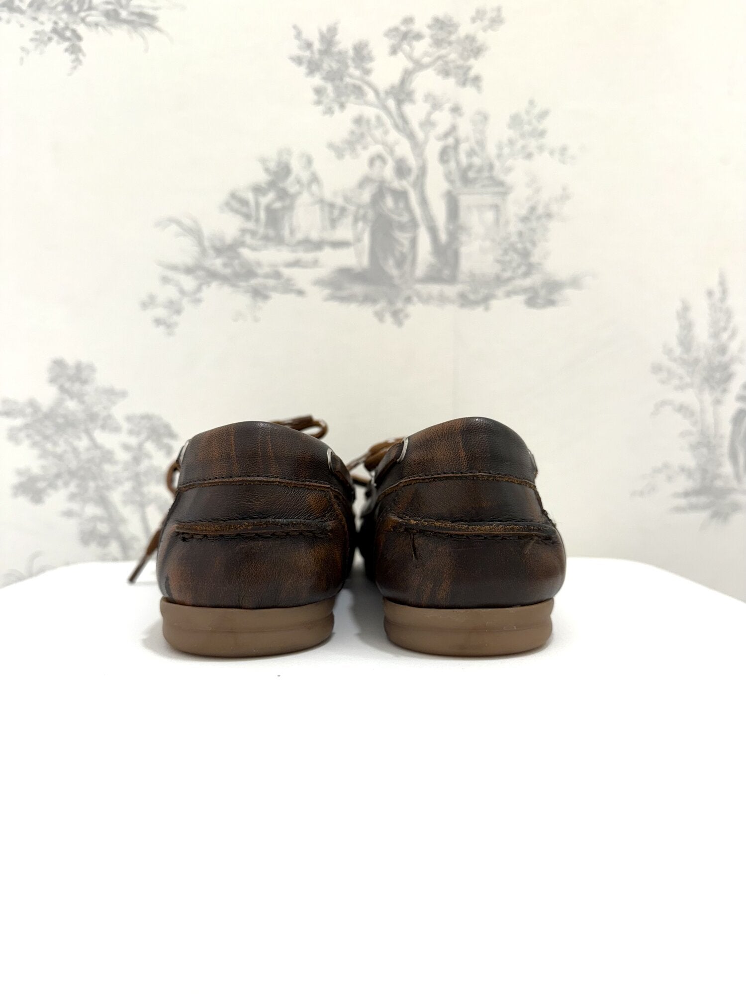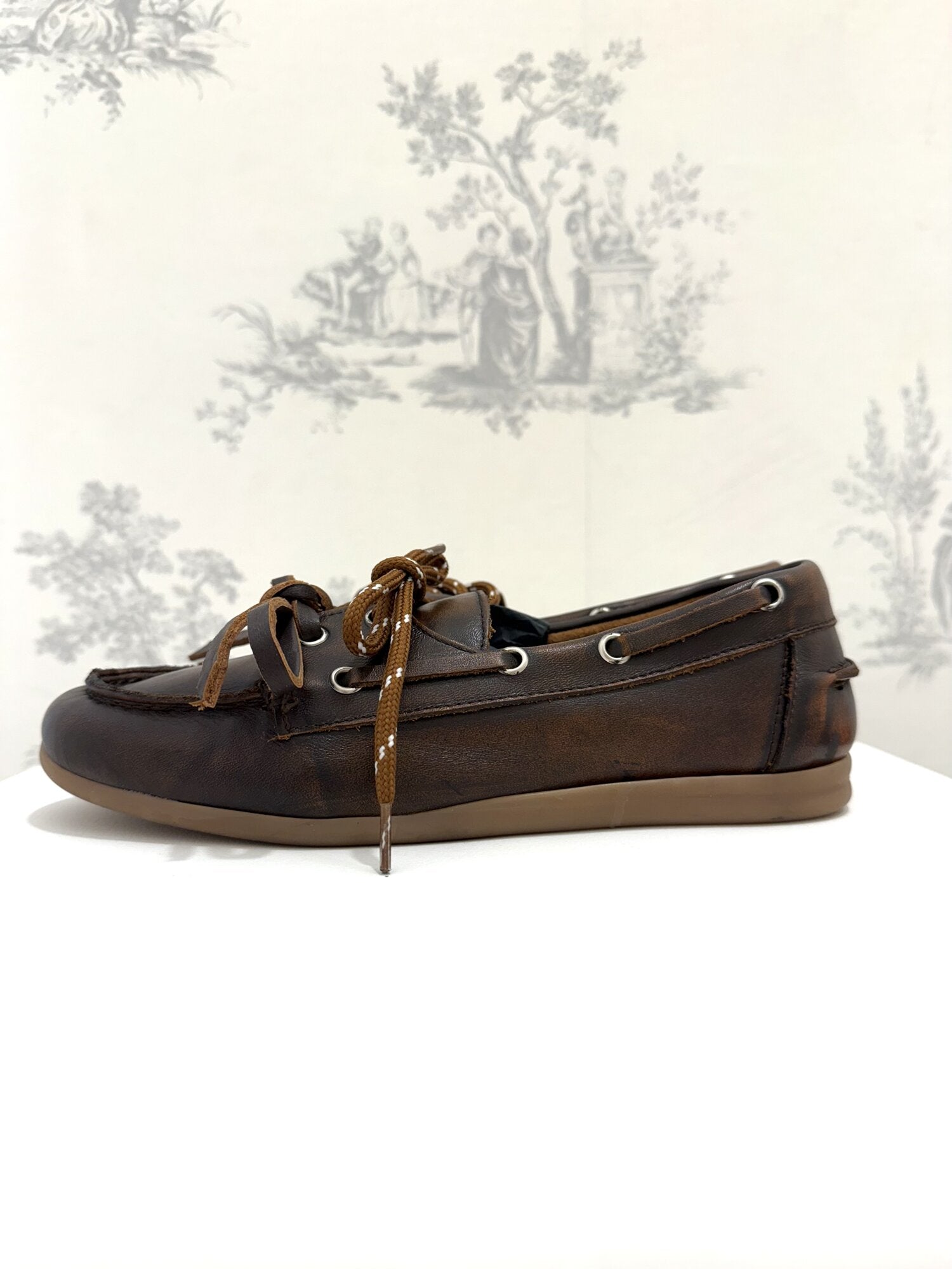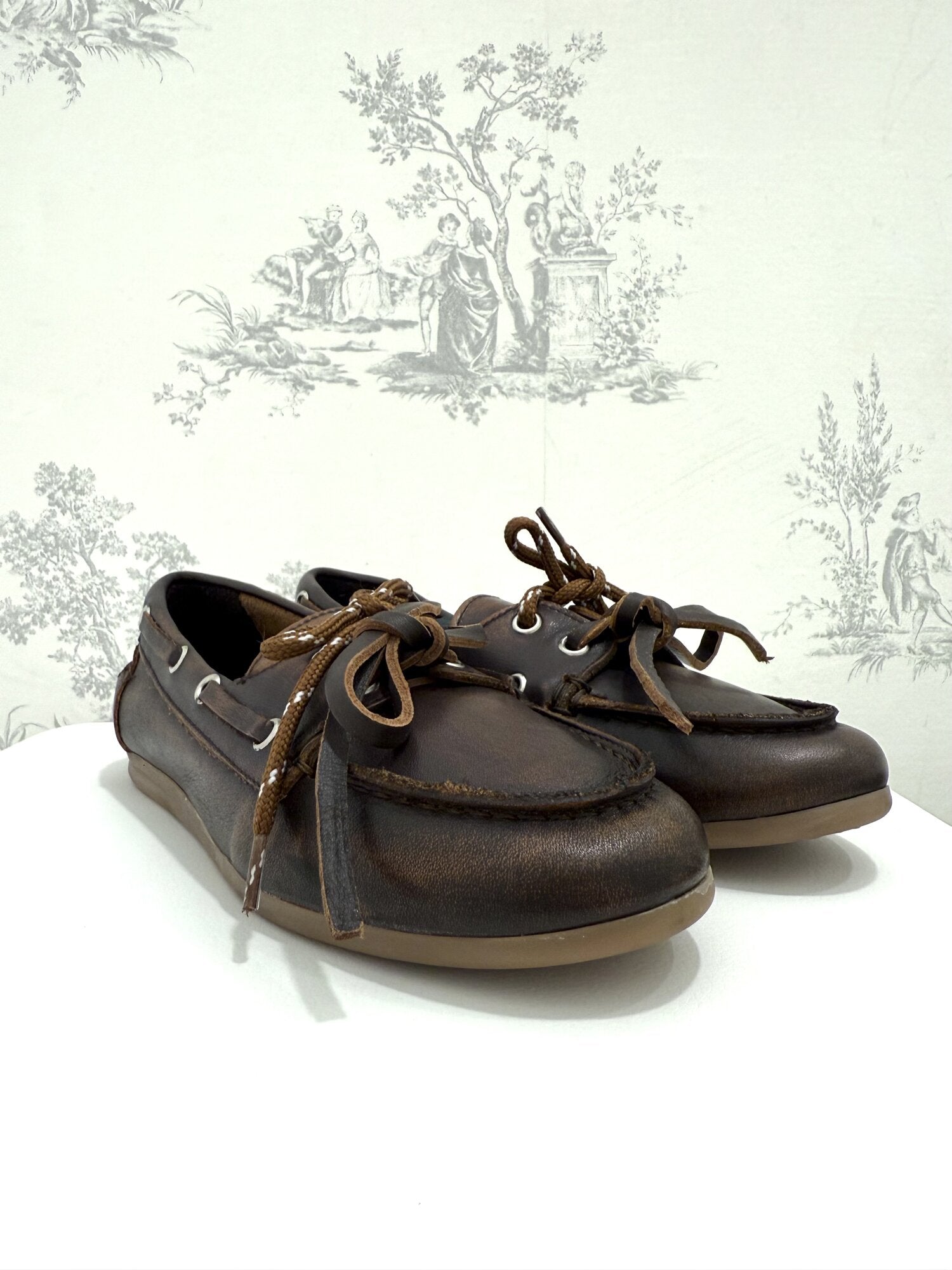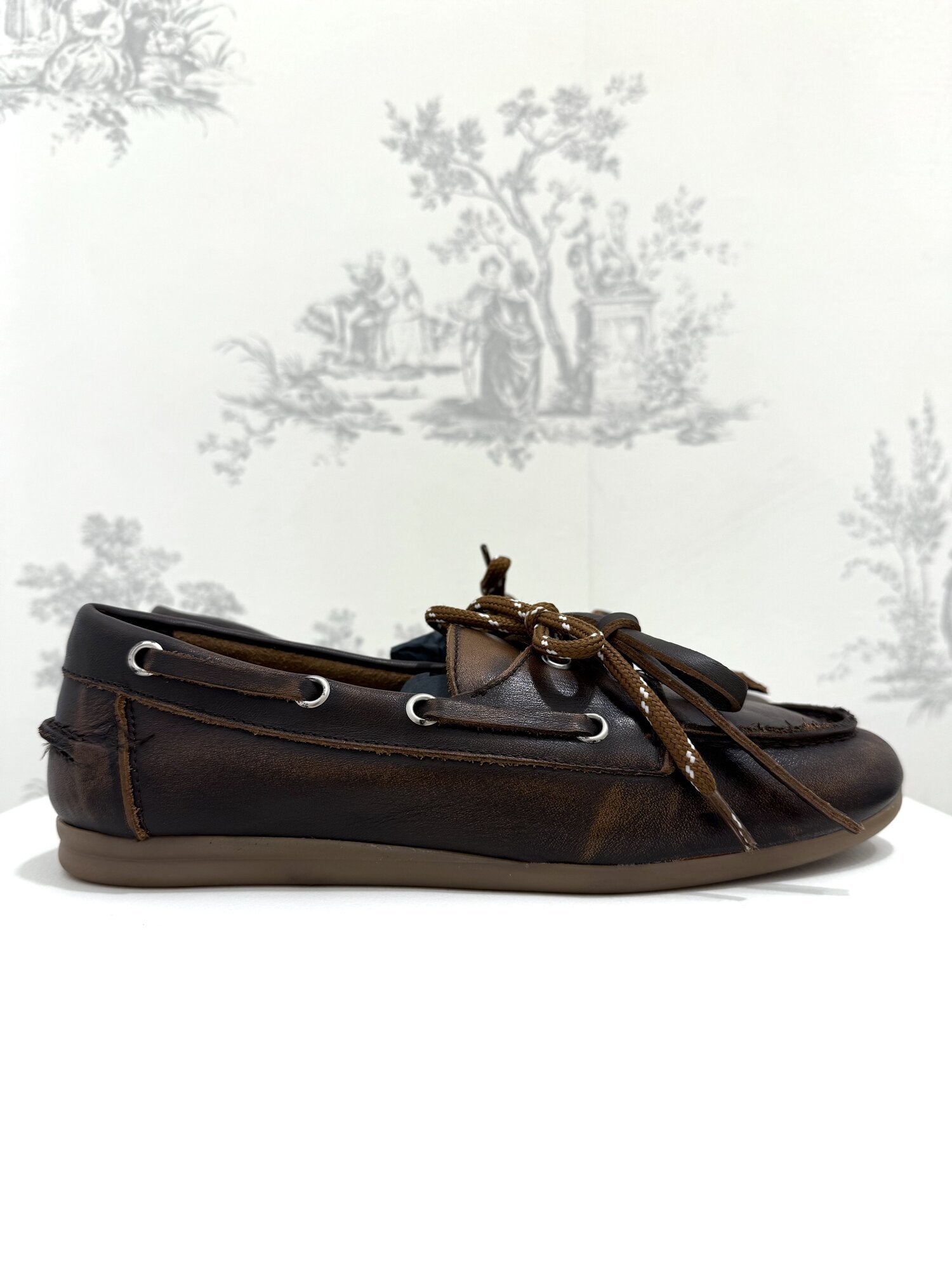 Mocassino barca pelle invecchiata lacci bicolor moro - Ovyé