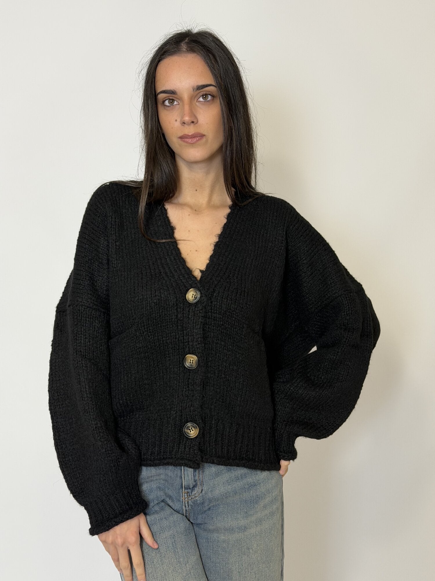 Cardigan over a V Bottoni Nero - Vicolo