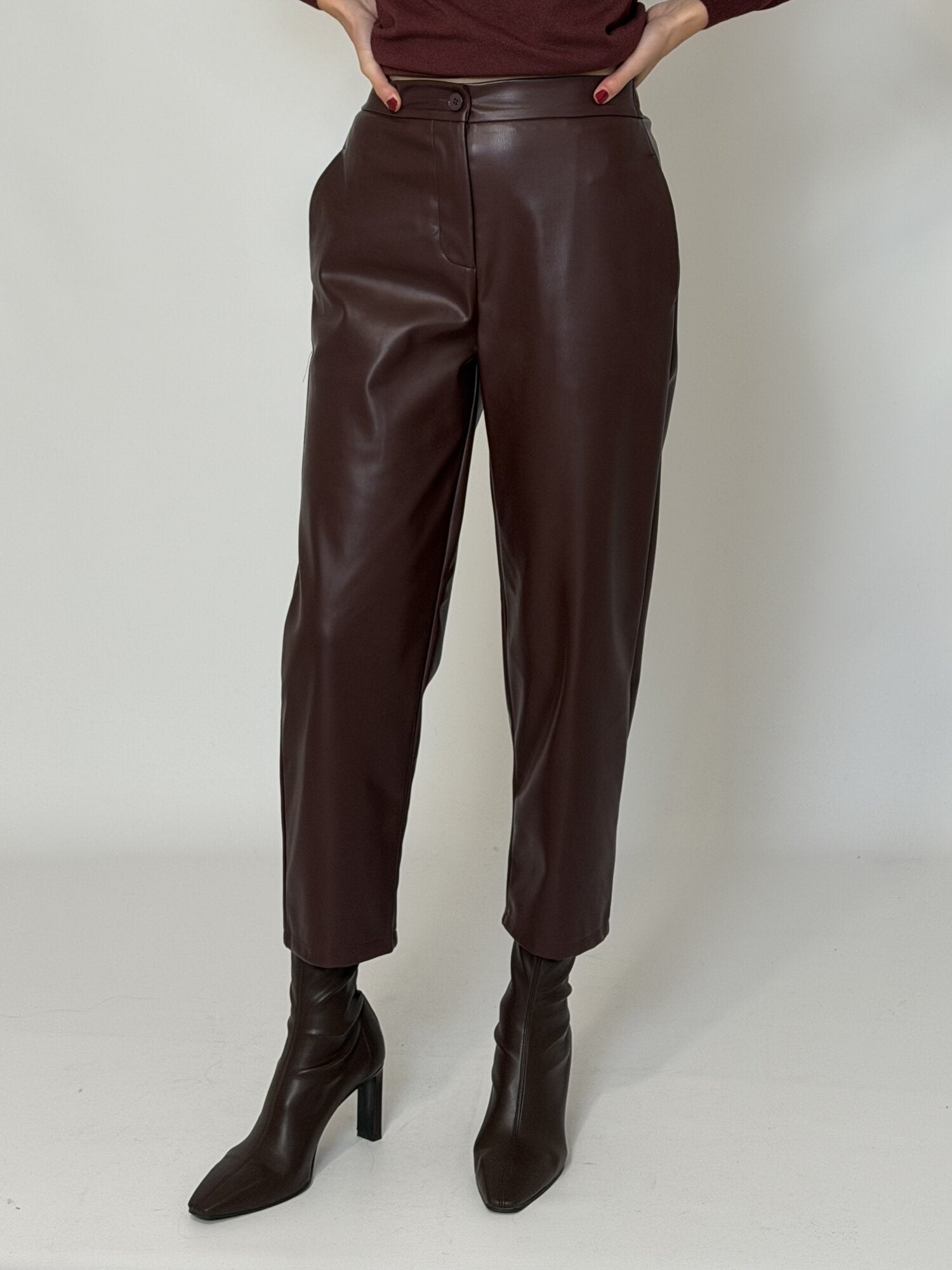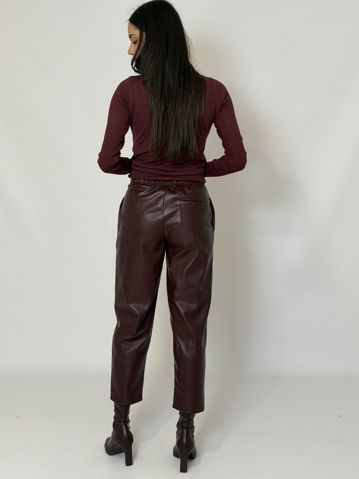 Pantalone Carrot Ecopelle Bordeaux - Vicolo