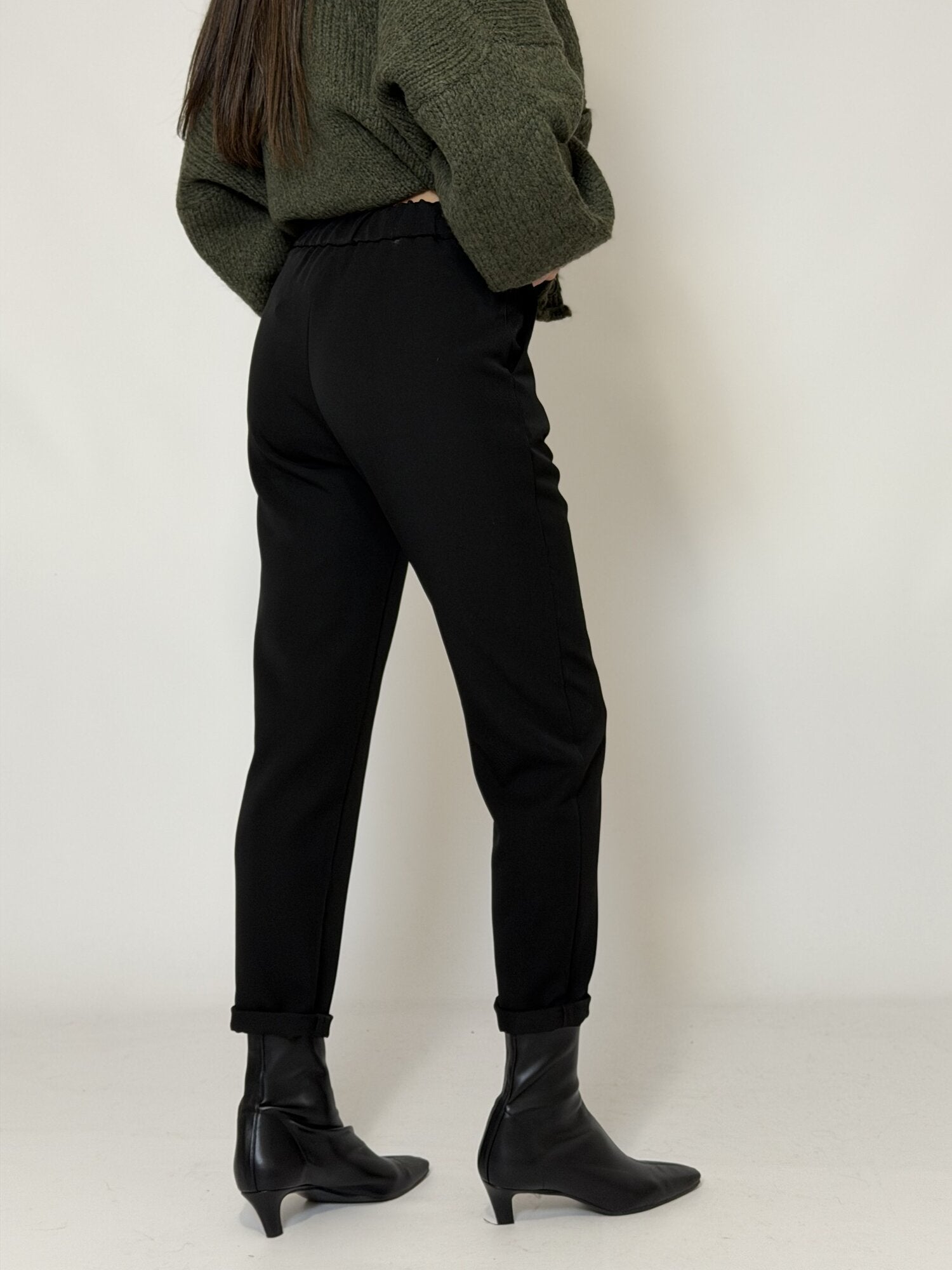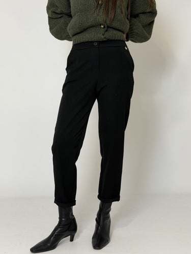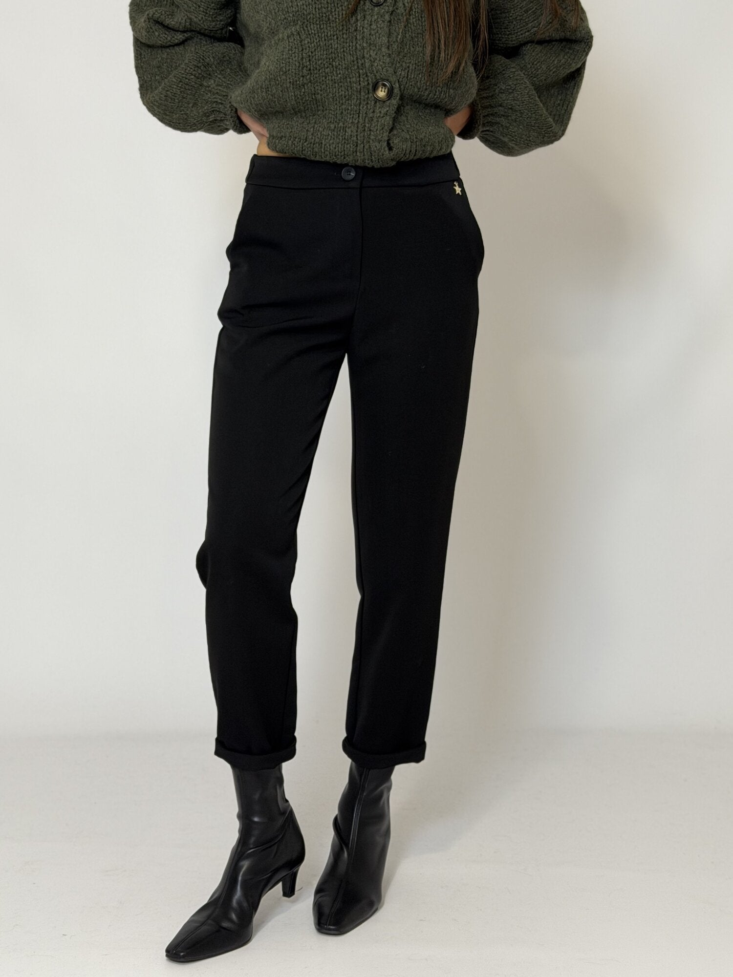 Pantalone carrot moro di Souvenir. Pantaloni con vestibilità carrot e lunghezza alla caviglia con risvolto. Chiusura con bottone e zip. Elastico in vita sul retro. Disponibili nel colore marrone, moro e nero.