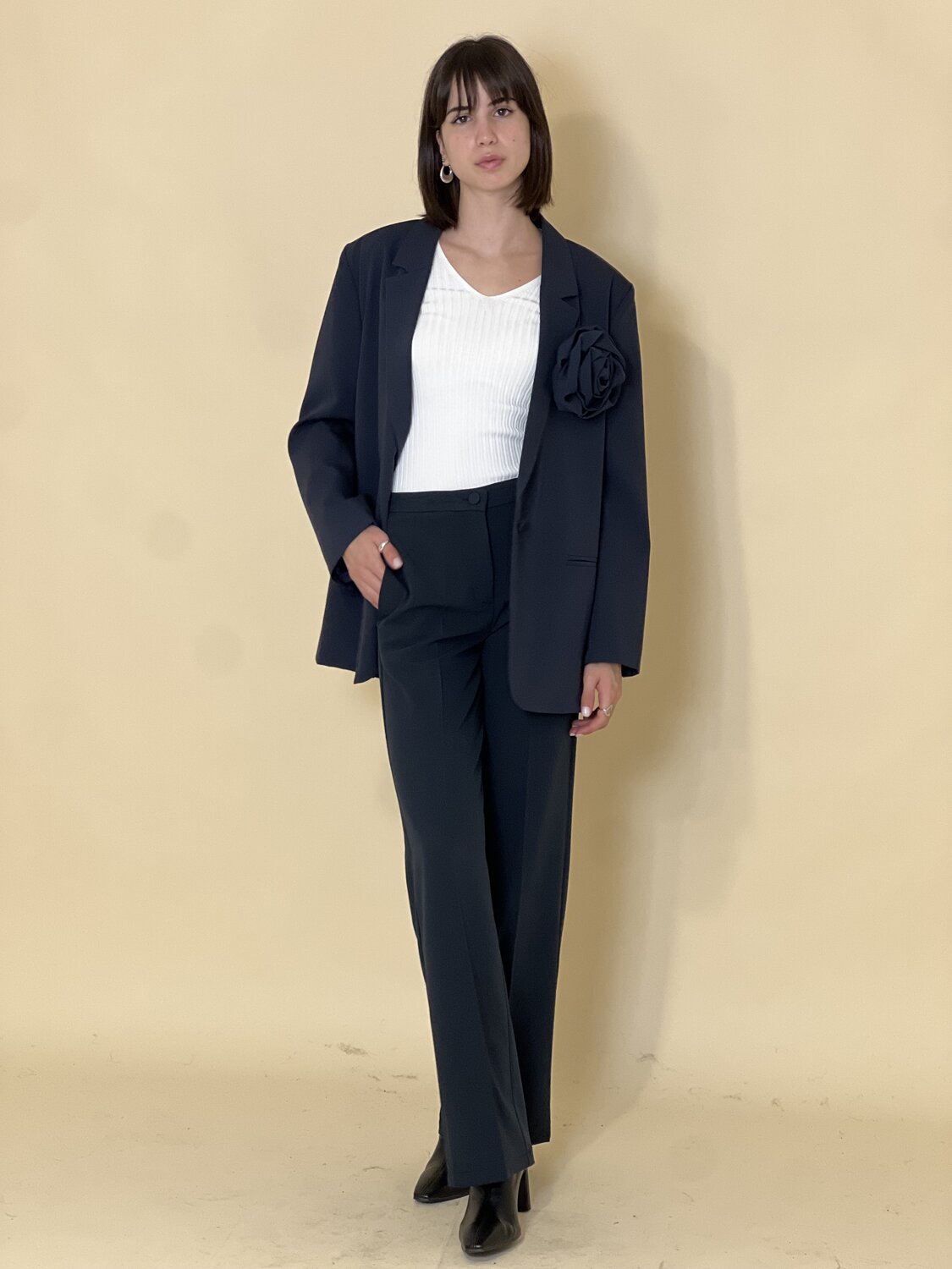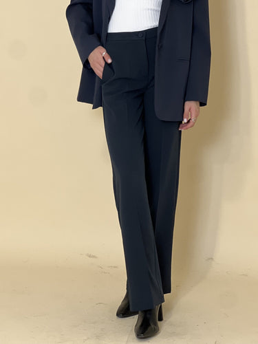 Pantalone dritto blu notte di Vicolo. Chiusura con bottone tono su tono e zip. Tasche a filo. Vestibilità regolare. Disponibile nel colore blu notte.