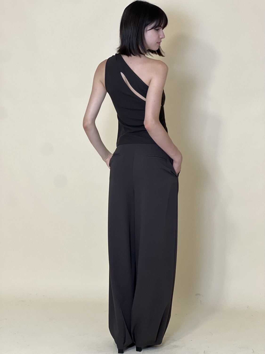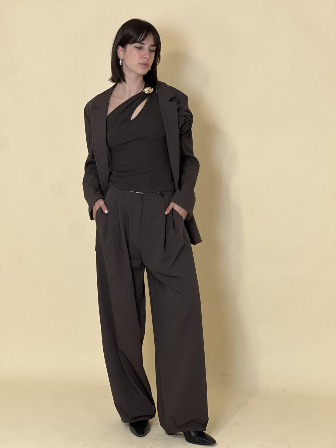 Pantaloni balloon con pences moro di Vicolo. Pantaloni palazzo con vita alta e vestibilità morbida. Dettaglio di ampie pieghe sul davanti e chiusura con bottone. Taglio dritto e fondo balloon. Disponibili nel colore moro.
