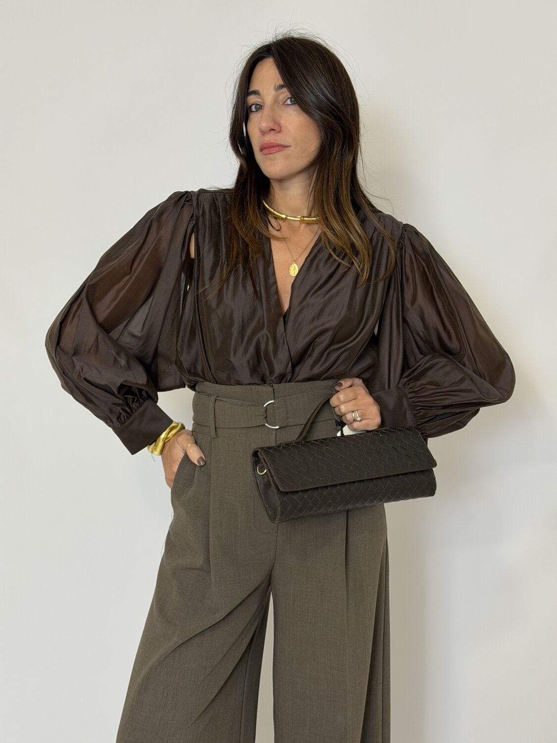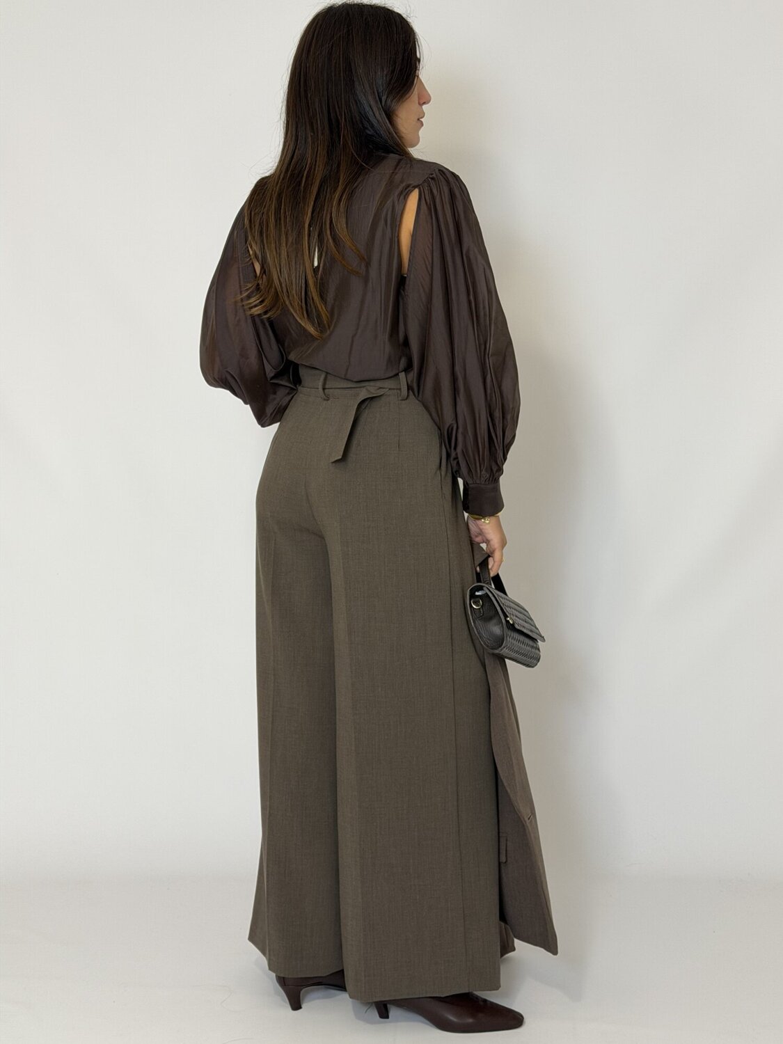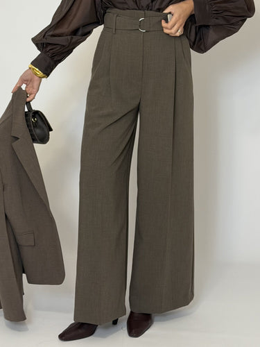 Pantaloni palazzo con pences e cintura marrone di Vicolo. Pantaloni a vita alta con vestibilità morbida e taglio palazzo. Pences profonde sul davanti e tasche oblique. Chiusura con gancio e zip. Risvolto in vita con fibbia metallica. Disponibili nel colore marrone.