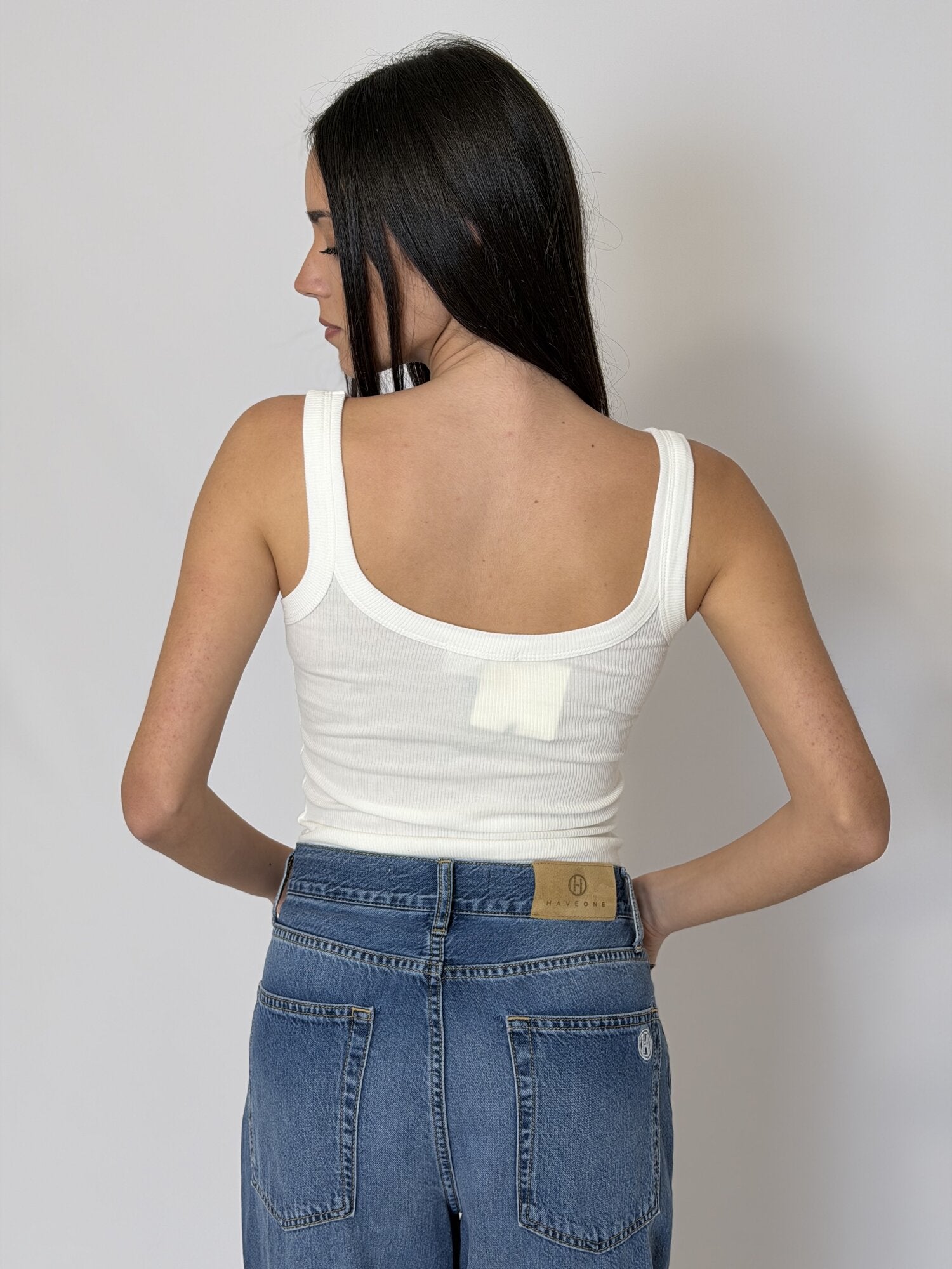 Body Costine panna di Vicolo. Bodi a costine con bretella sottile e scollo ampio. Vestibilità aderente. Taglia unica. Disponibile in moro, nero e bianco.