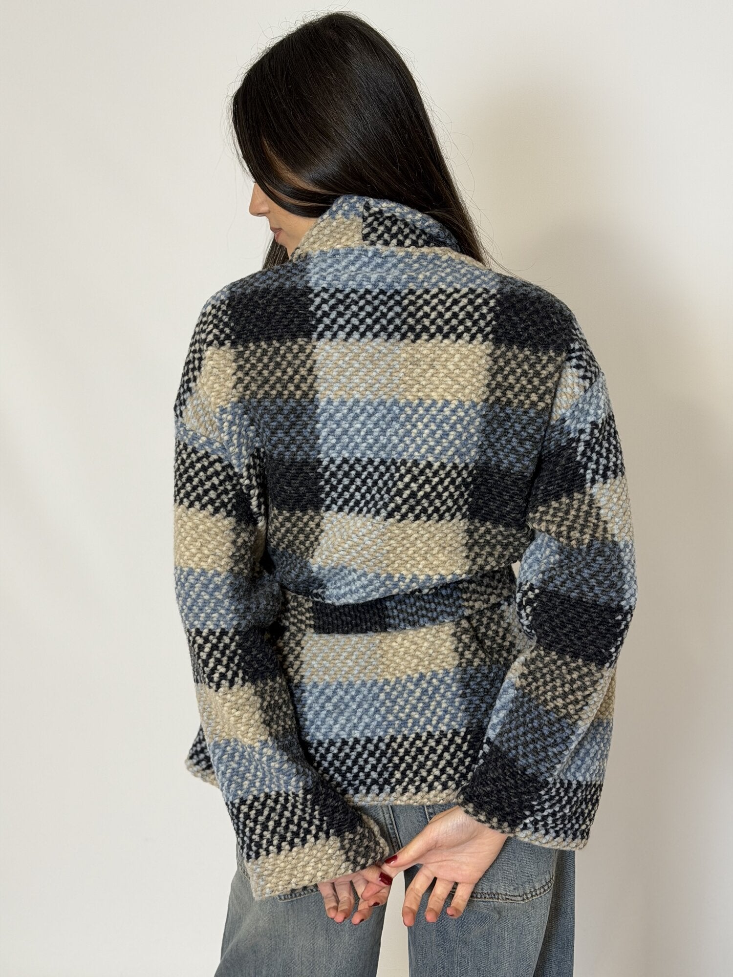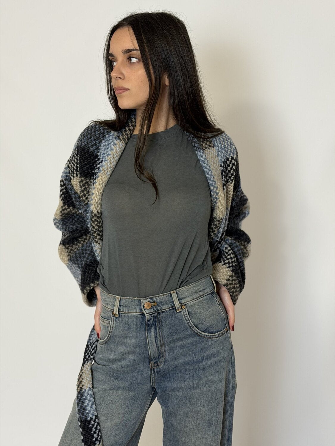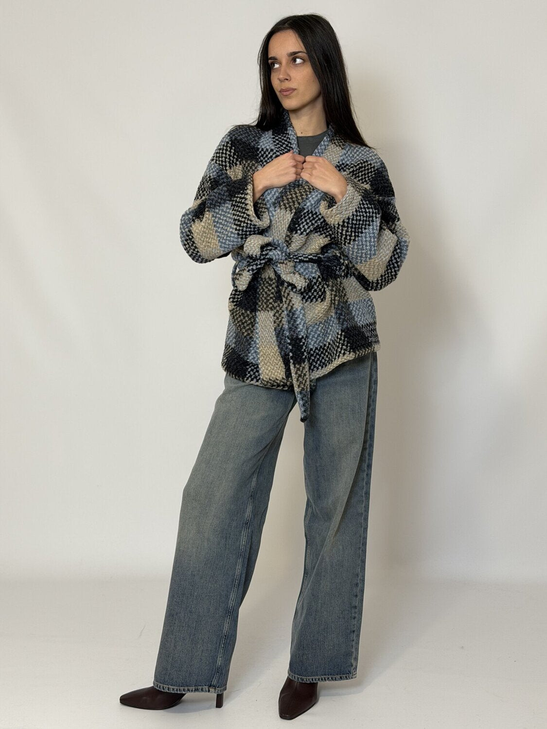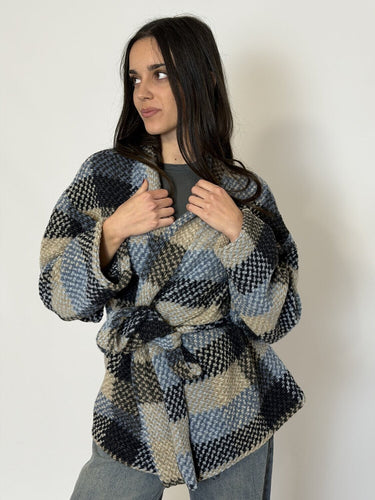 Cardigan Scacchi Cintura Azzurro - Vicolo