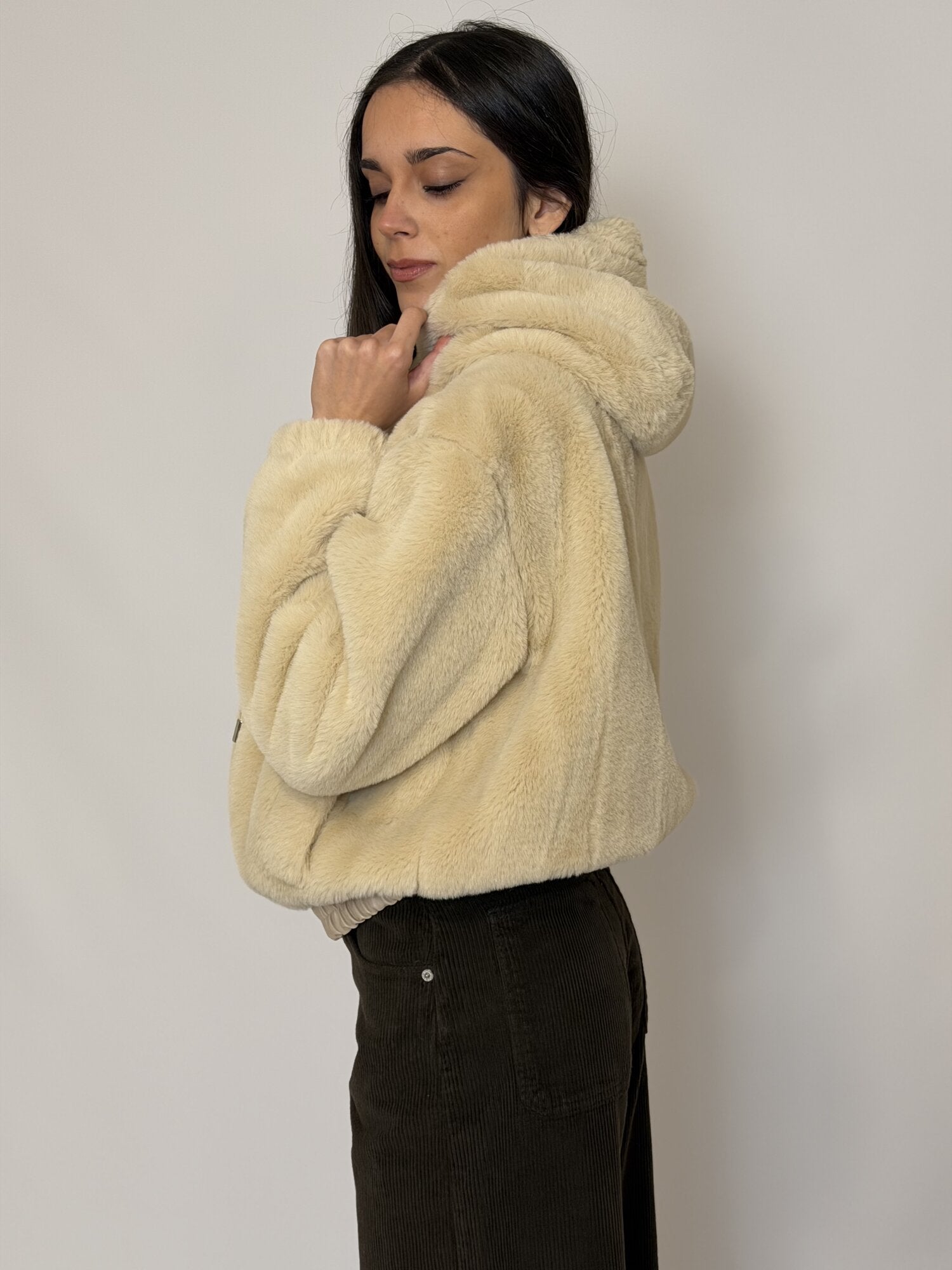 Ecopelliccia Cappuccio Beige Chiaro - Haveone