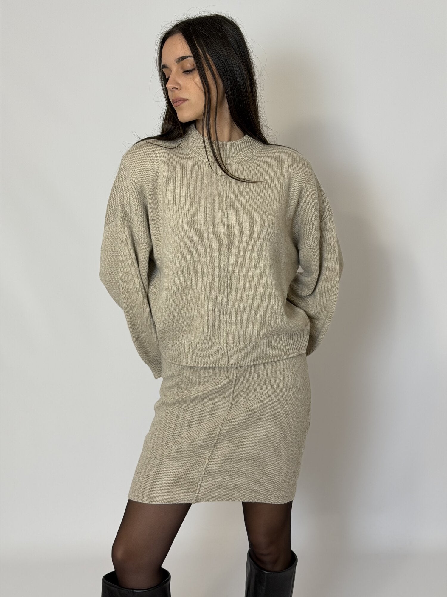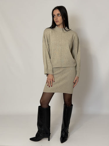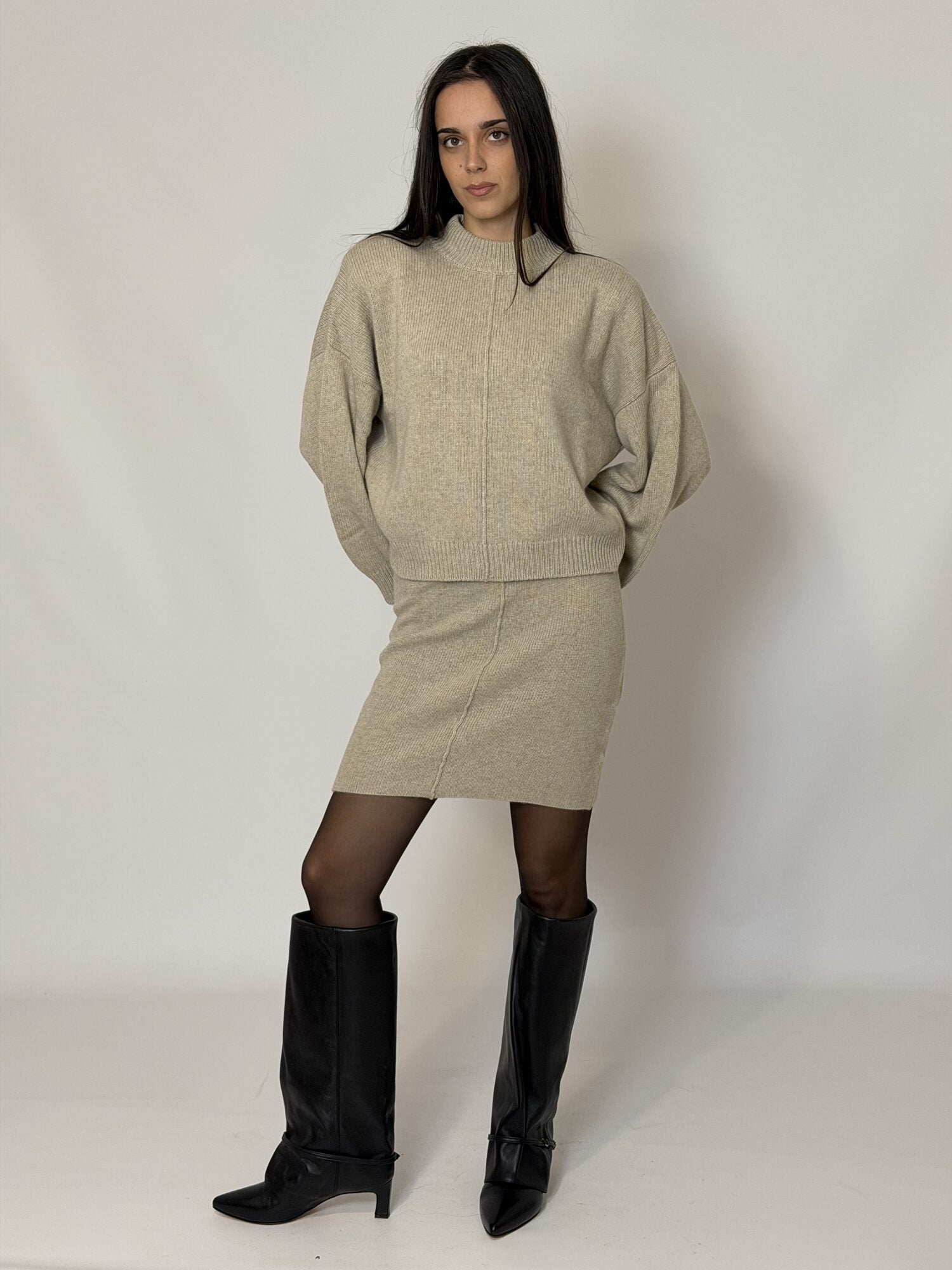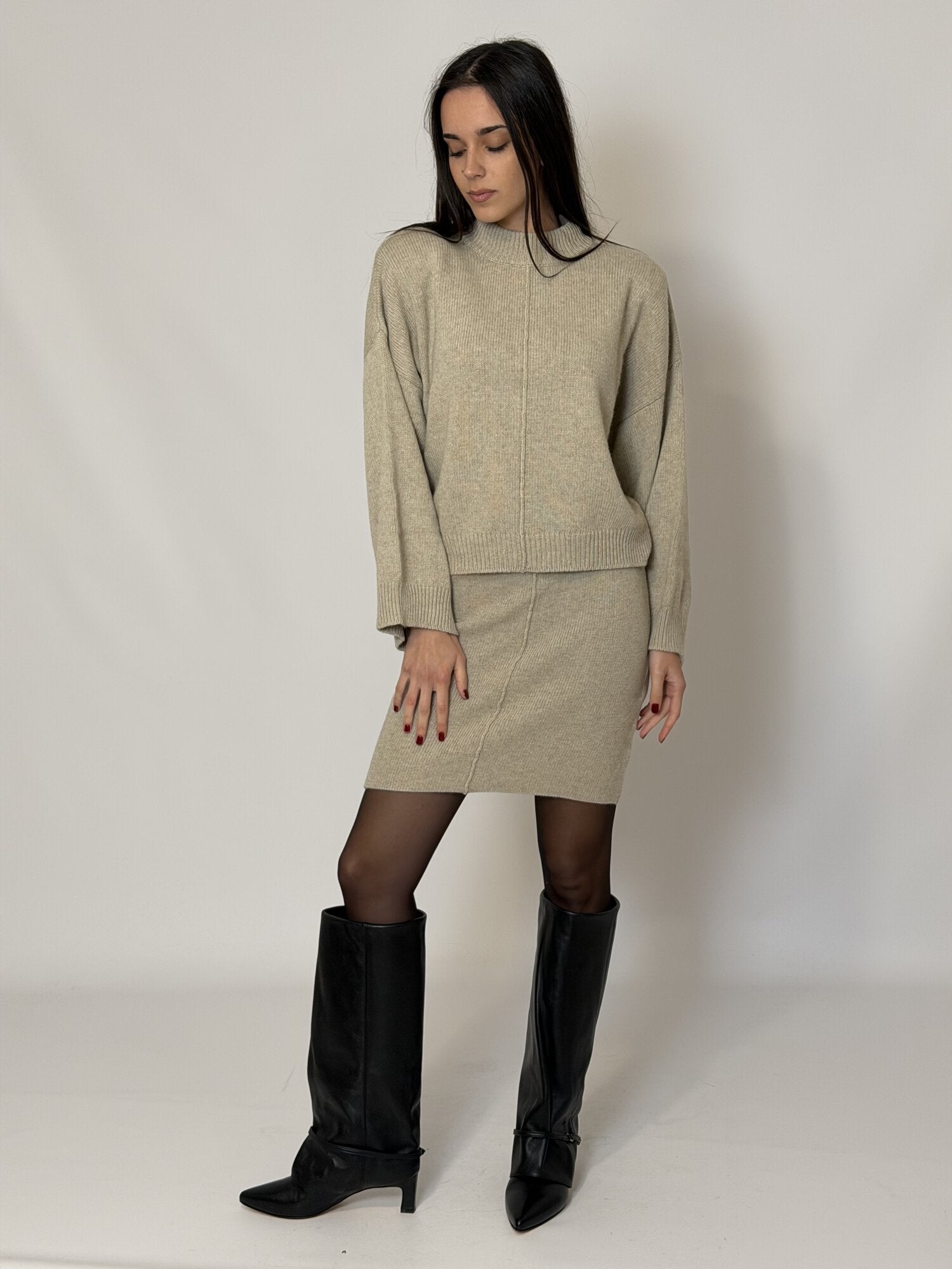 Gonna in maglia beige di Vicolo. Minigonna dritta in maglia beige con cuciture a vista di Vicolo. Minigonna realizzata in maglia. Vestibilità dritta/a matita e lunghezza corta. Presenta una cucitura a vista sul pannello frontale. Disponibile in beige e nero.