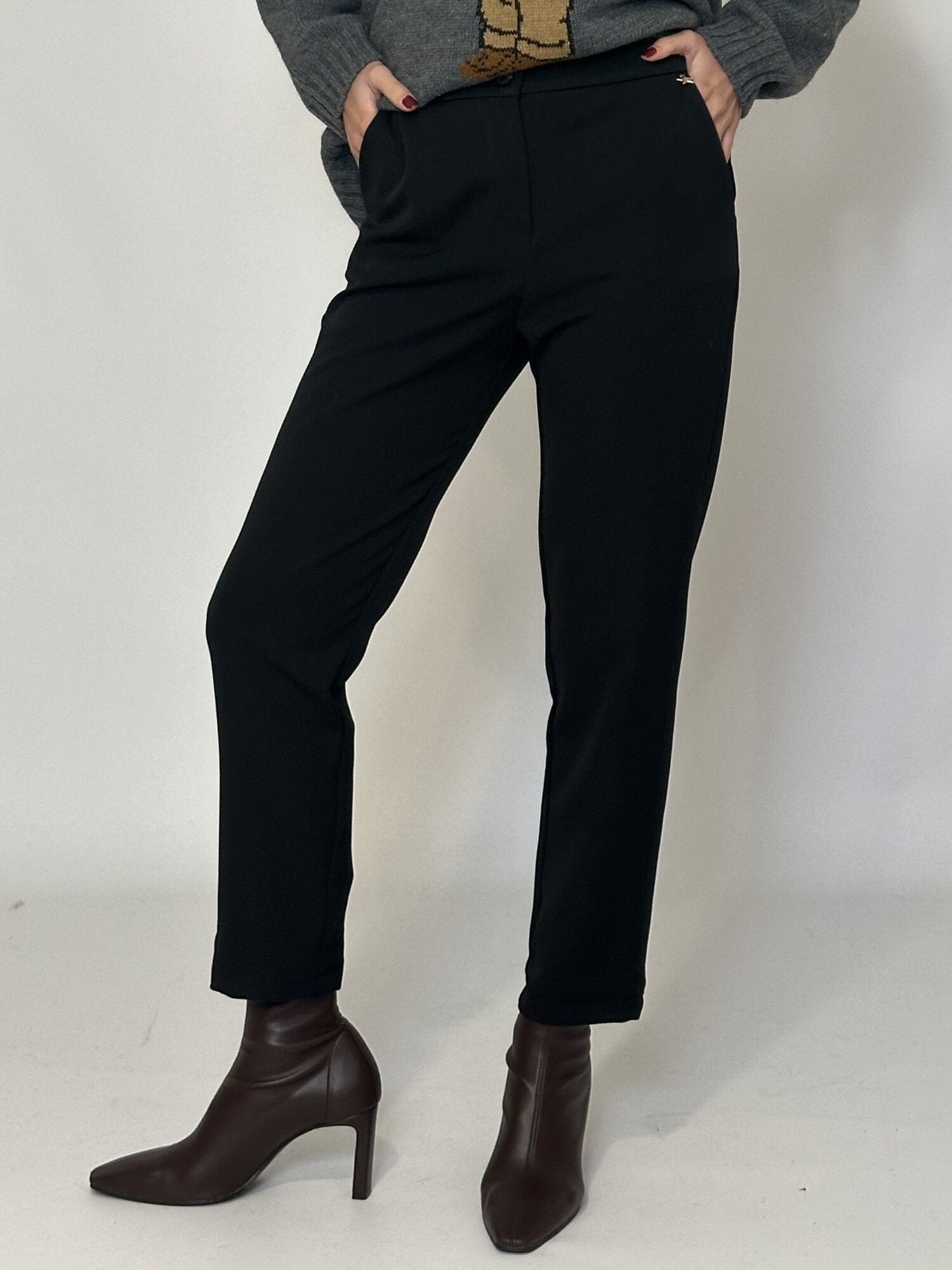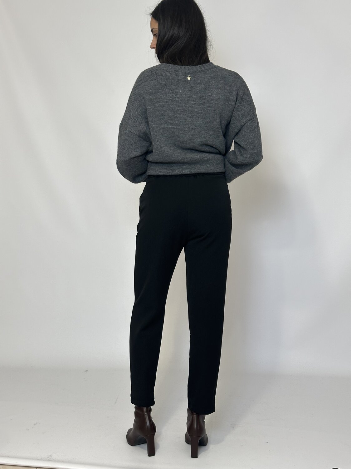 Pantaloni carrot a vita alta con elastico nero di Souvenir. Pantaloni con taglio a sigaretta/dritto e vestibilità aderente (slim fit). La vita è alta e presentano un taglio a sigaretta. Sono in tessuto in tinta unita nero. Tasche laterali e una chiusura con cerniera e bottone.