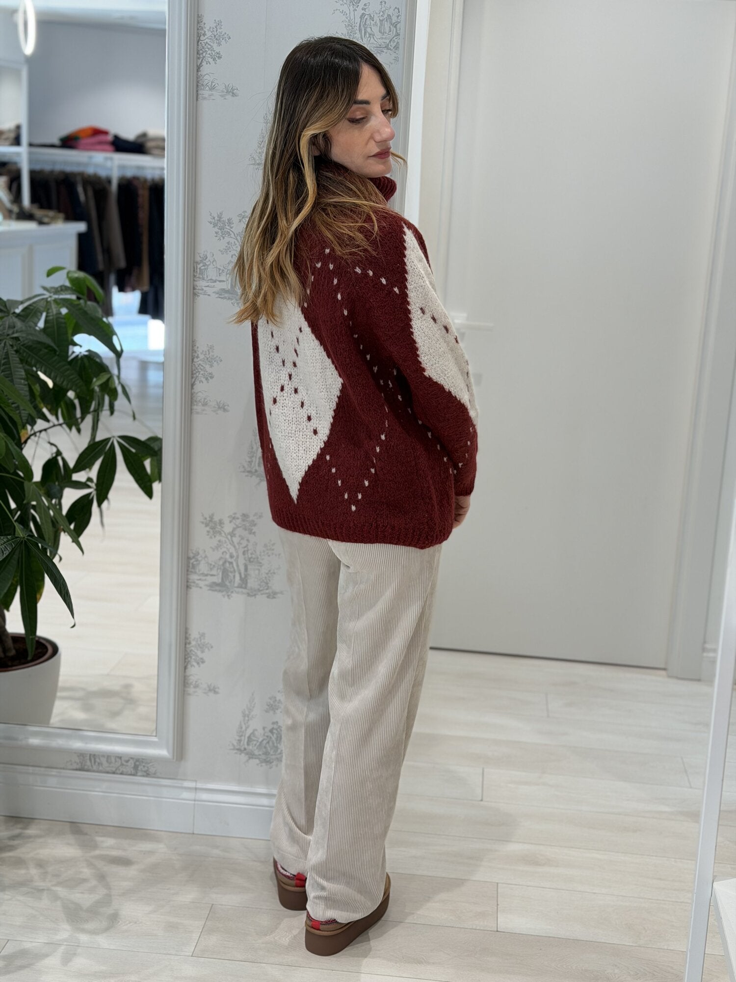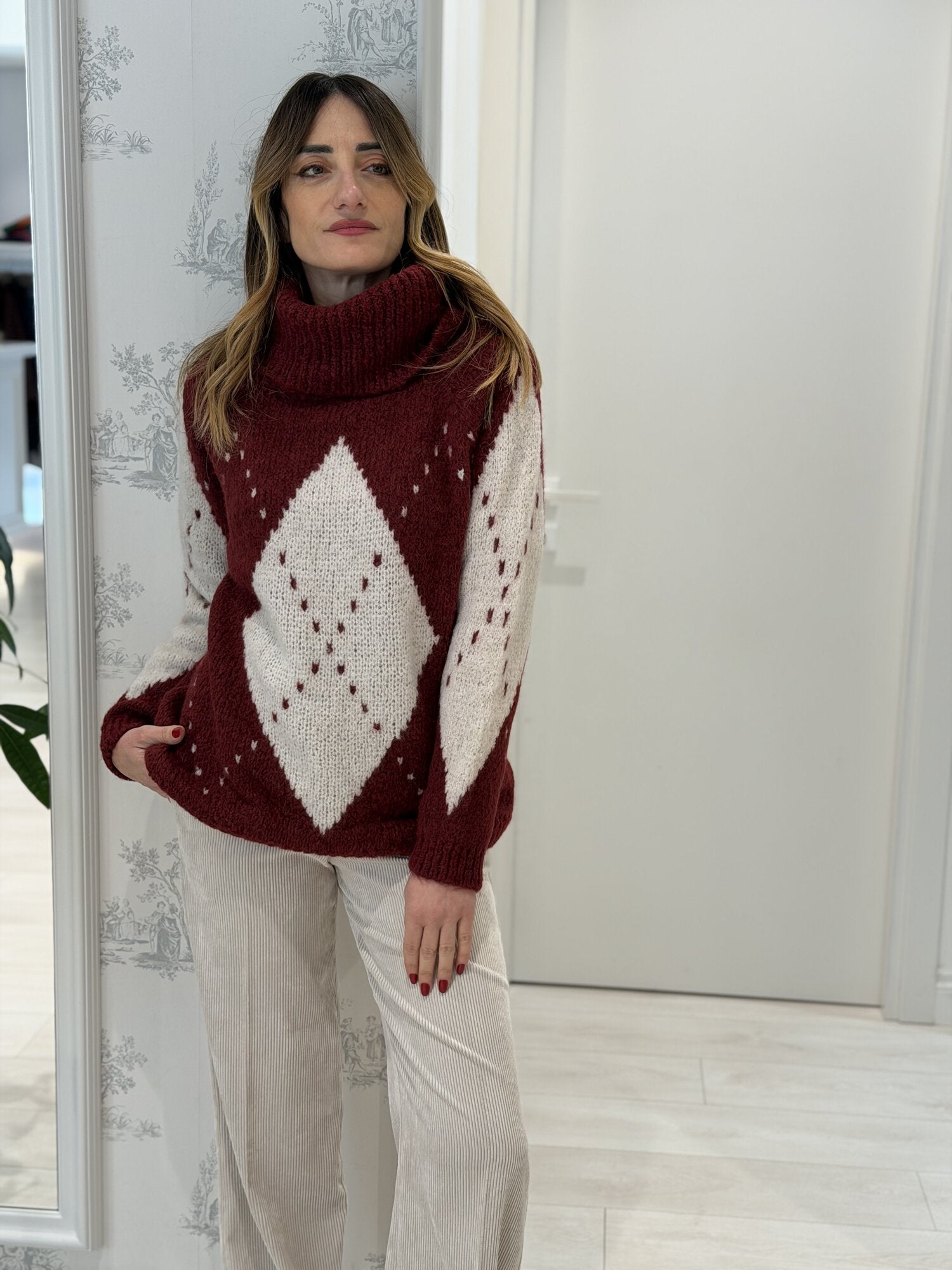 Pullover Argyle collo alto bordeaux - Vicolo