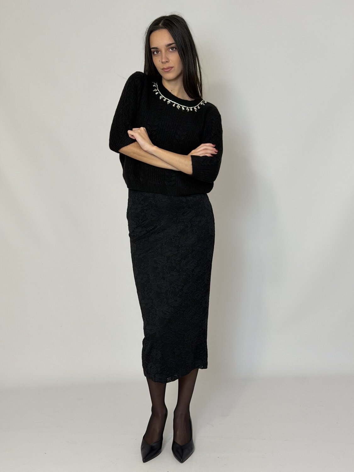 Gonna Pizzo Novice Nera - Emme Marella