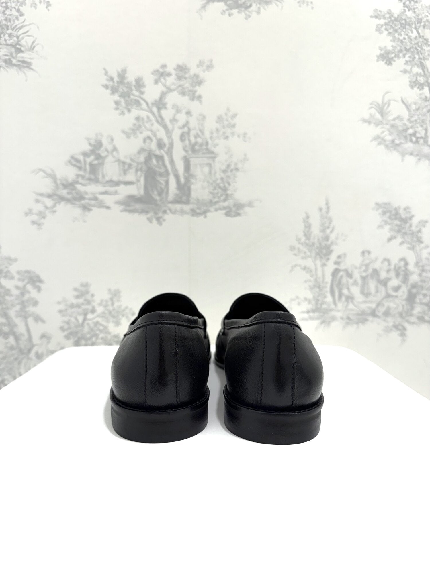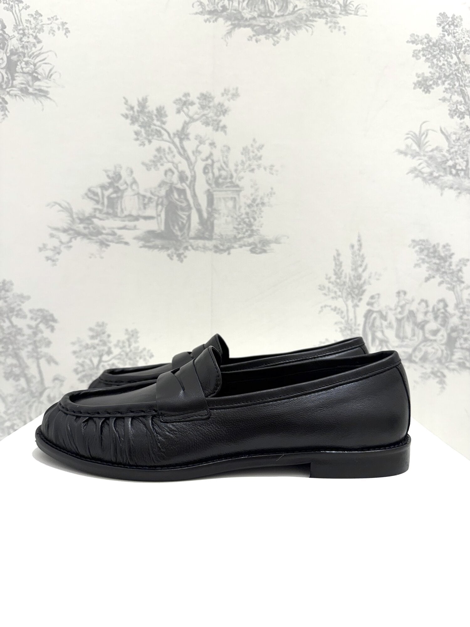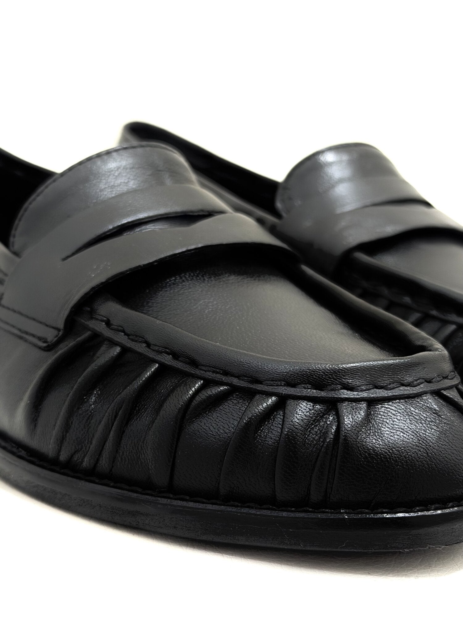 Mocassini bassi morbidi neri di Ovyé. Mocassini in pelle liscia nera con silhouette classica. Arricciatura sul davanti e mascherina tradizionale. Suola bassa e vestibilità confortevole. Disponibili nel colore nero.