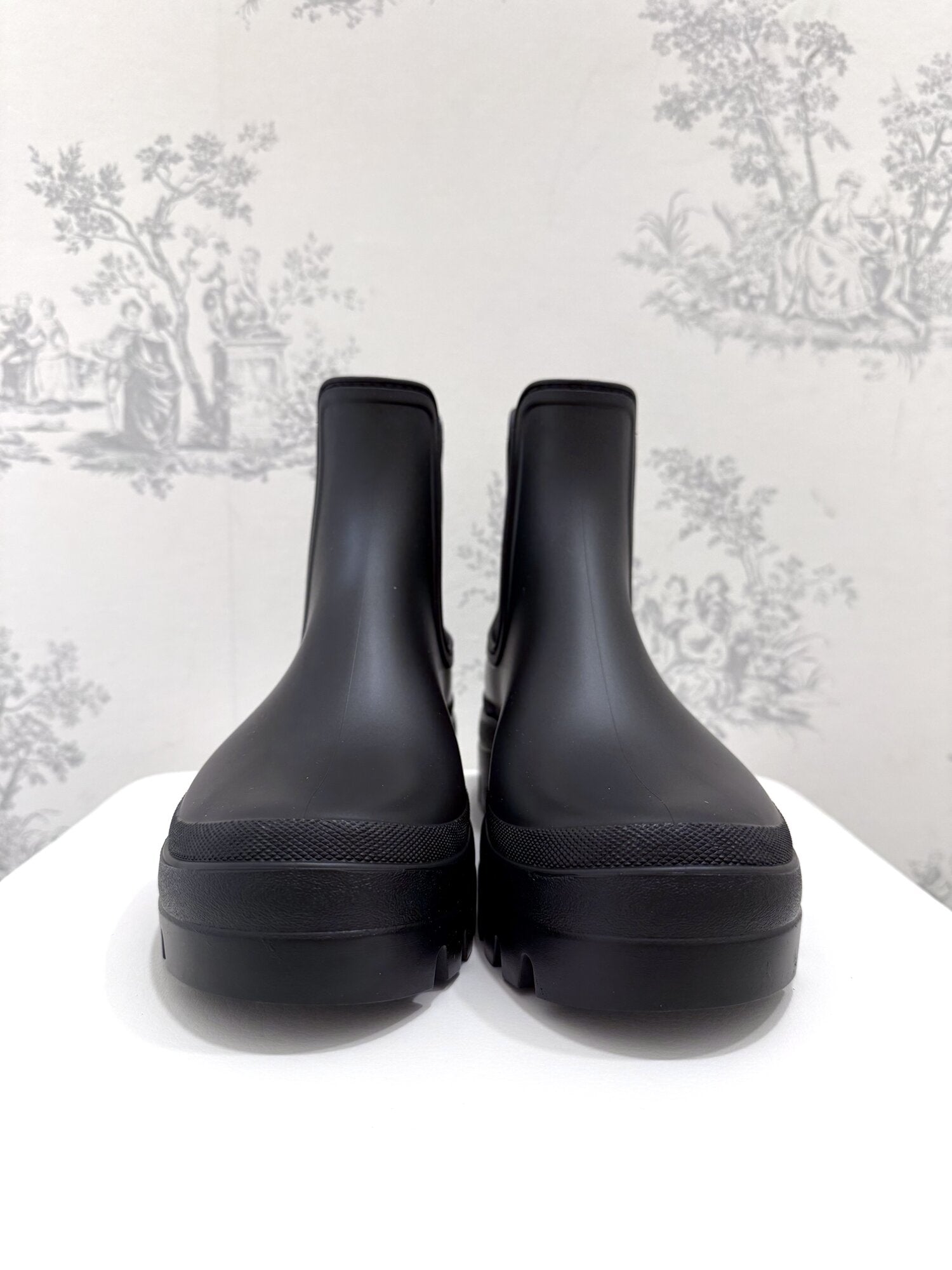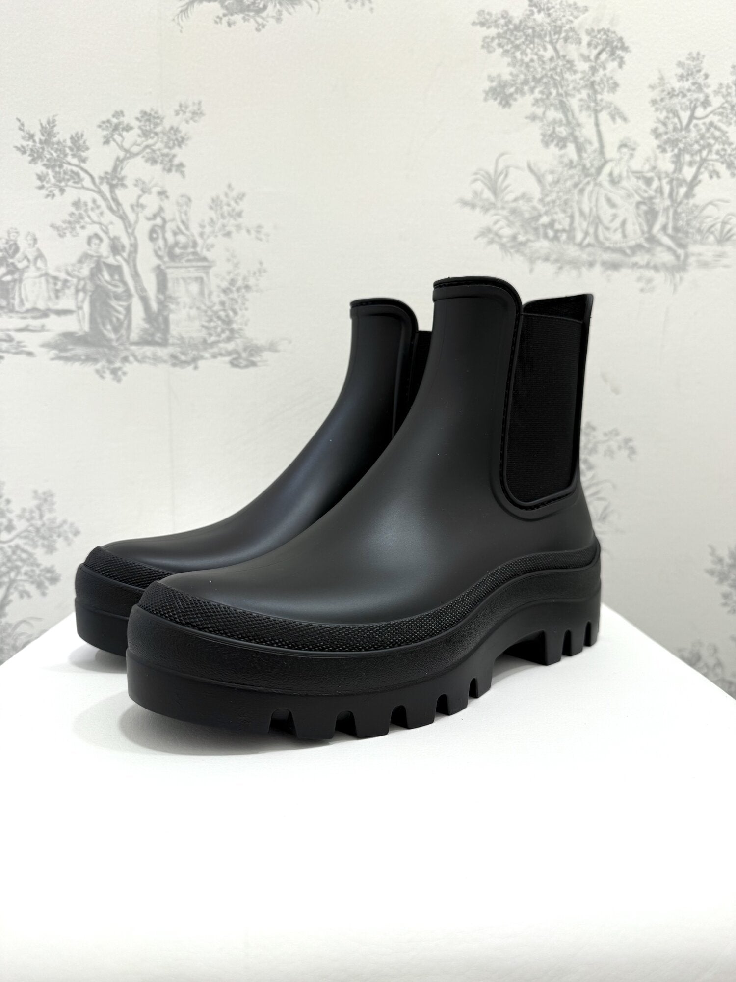 Chelsea da pioggia nero di Tanta Rainwear. Finitura opaca. Elastico sui lati, non impermeabile. Soletta interna comoda e rimovibile. Fodera in tessuto. Pannelli laterali elasticizzati e suola spessa. Disponibile in nero.