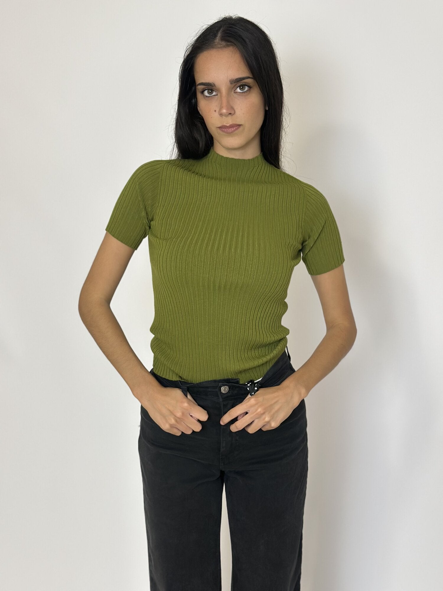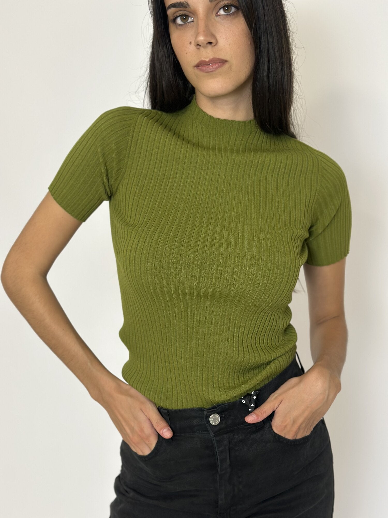 Tshirt scollo lupetto costine Oliva - Vicolo