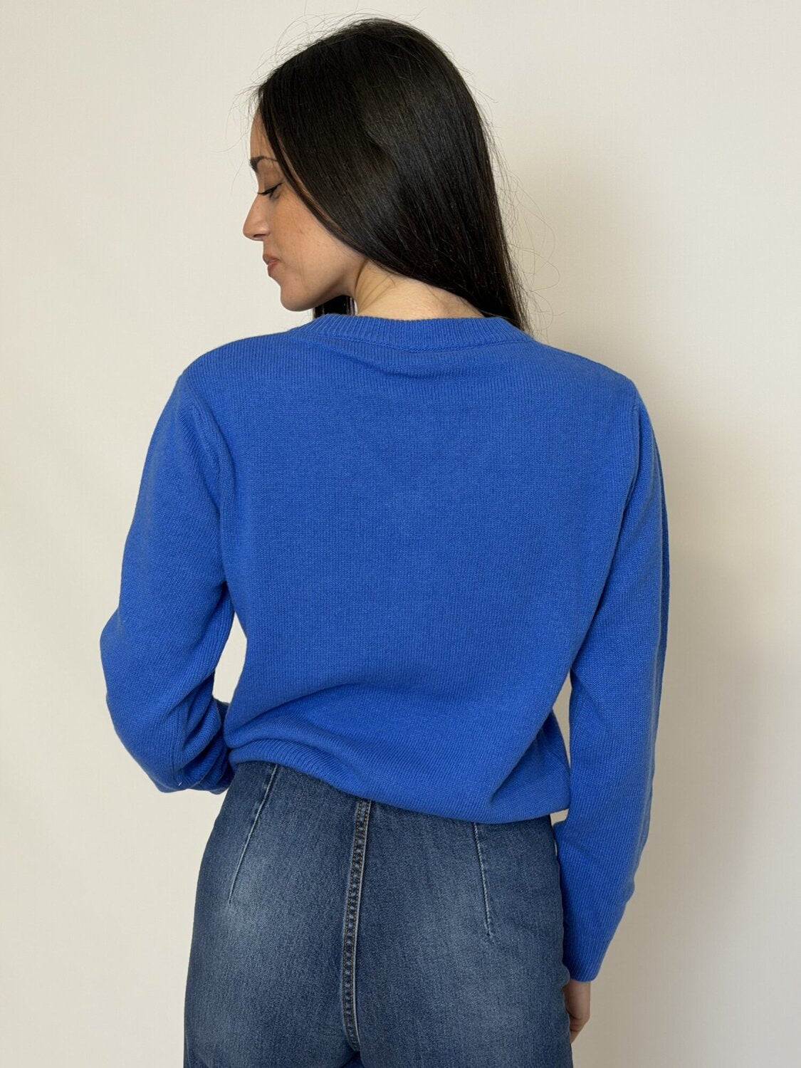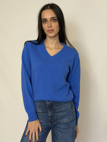 Pull Scollo v Blu di Tensione In. Pullover a maniche lunghe con scollo a V, modello slim. Taglia unica. Disponibile in blu, viola, ciclamino.
