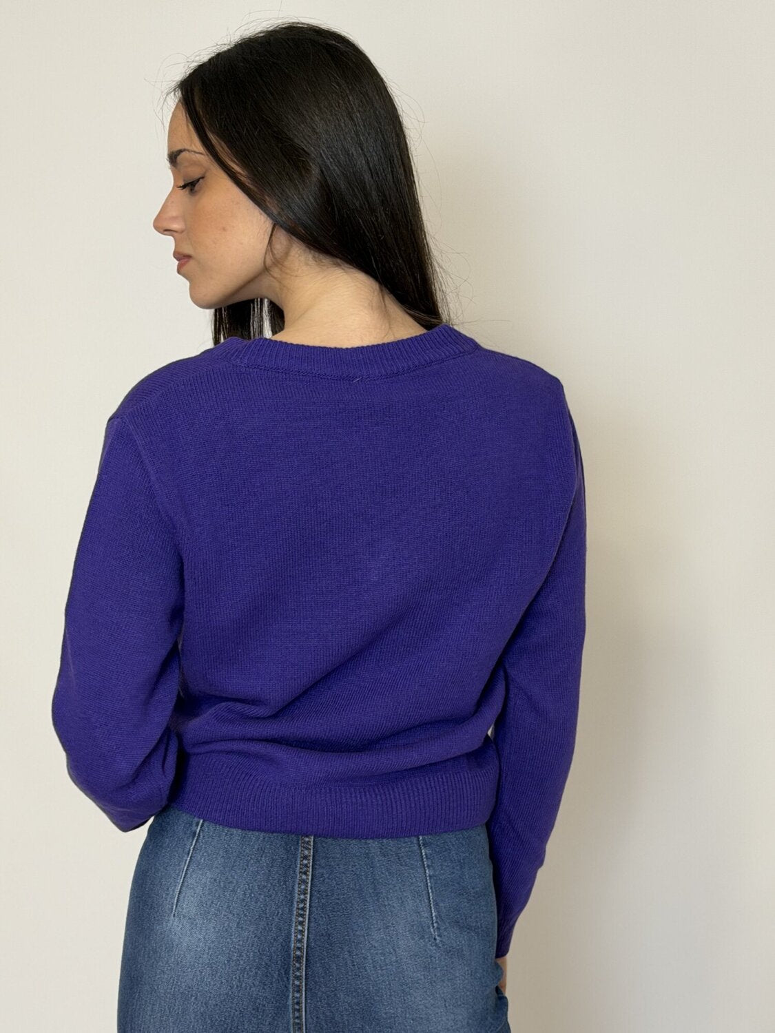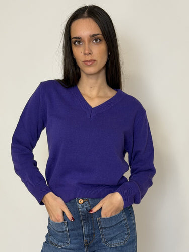 Pull Scollo v Viola di Tensione In. Pullover a maniche lunghe con scollo a V, modello slim. Taglia unica. Disponibile in blu, viola, ciclamino.