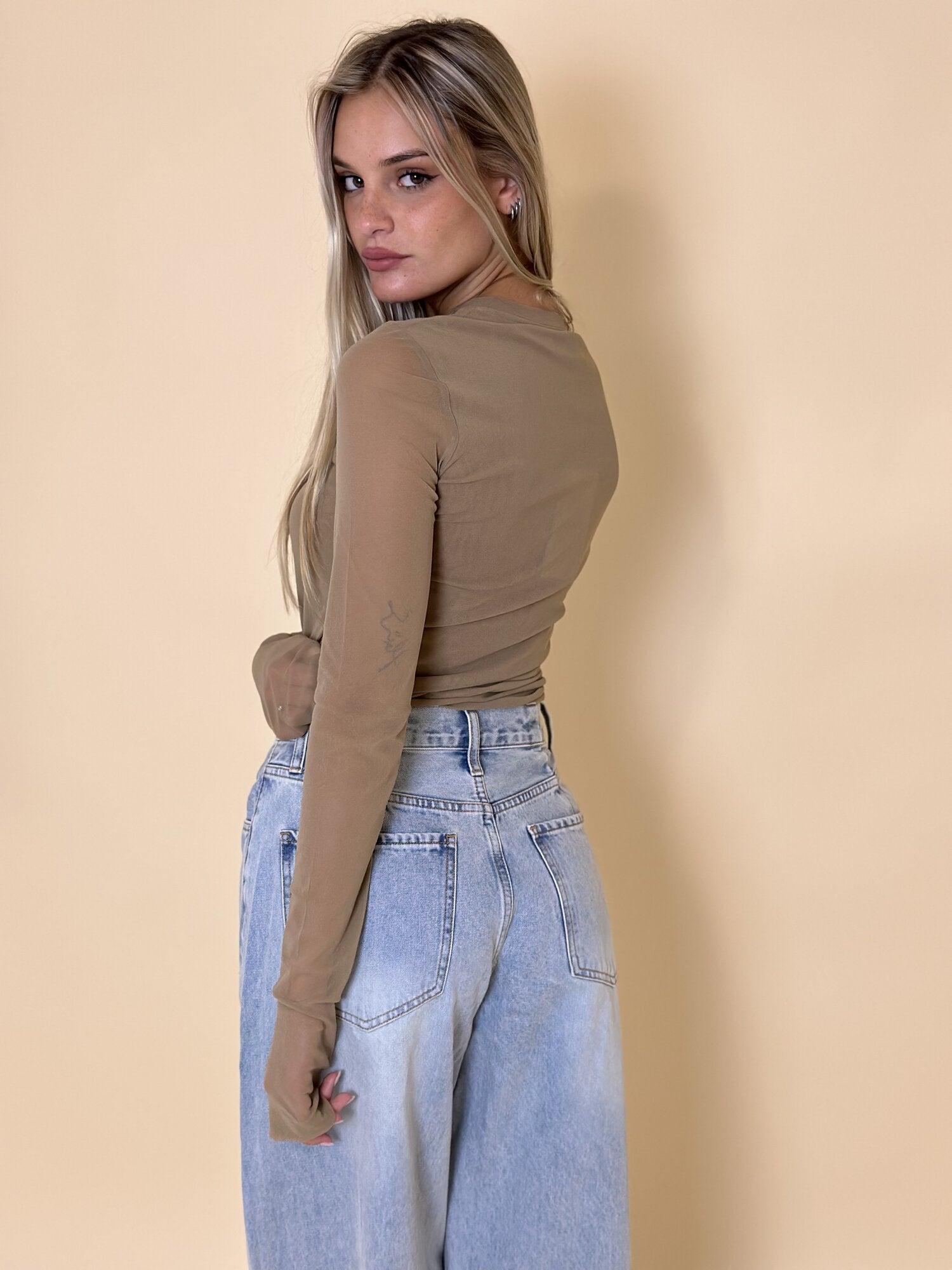 Tshirt a maniche lunghe tulle cammello - Meimei J
