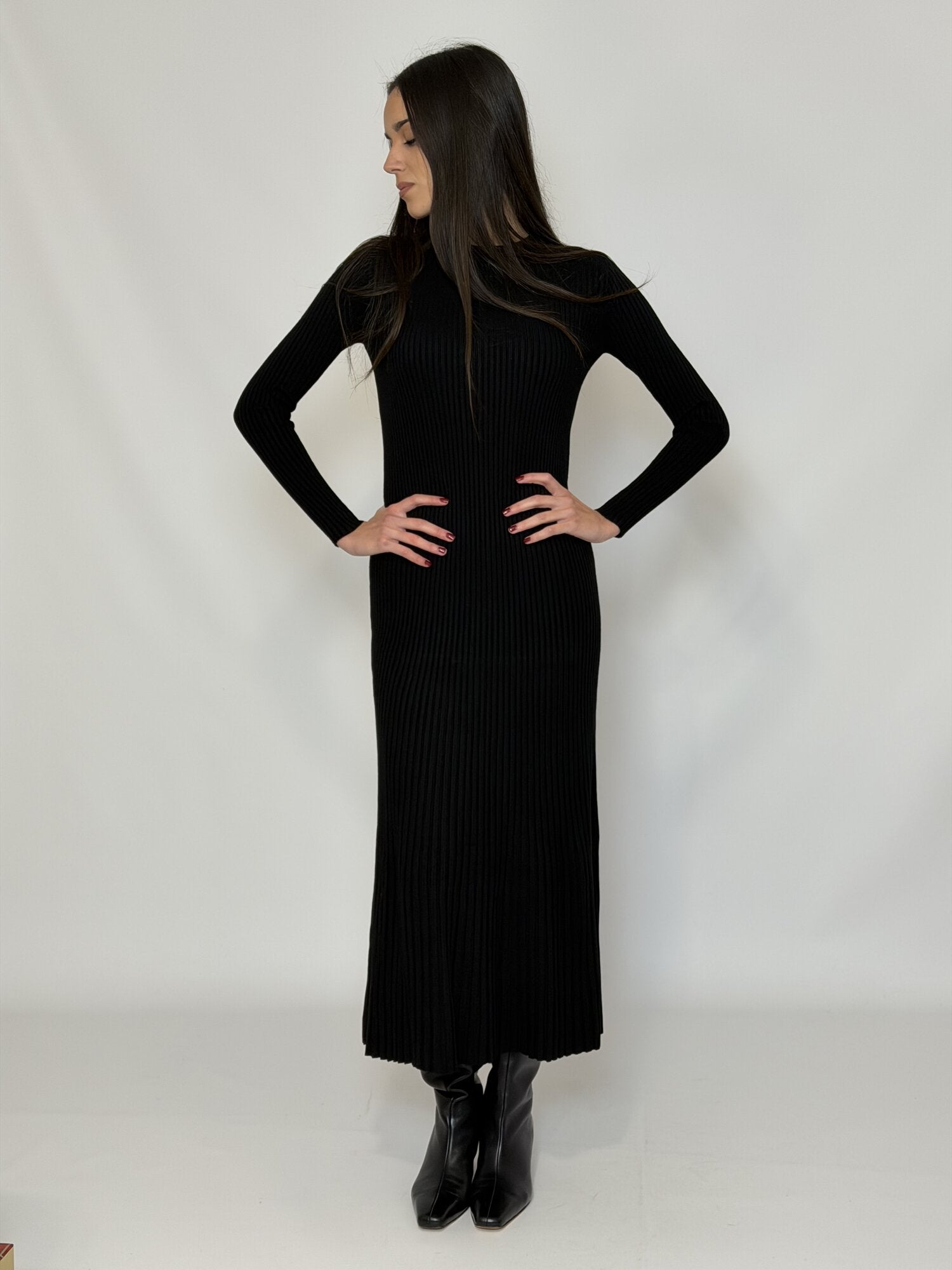 Abito Lungo Costine Nero - Vicolo